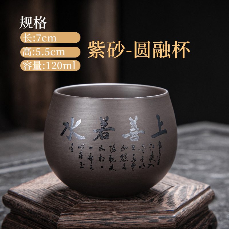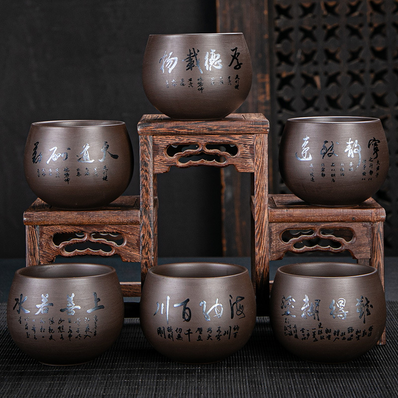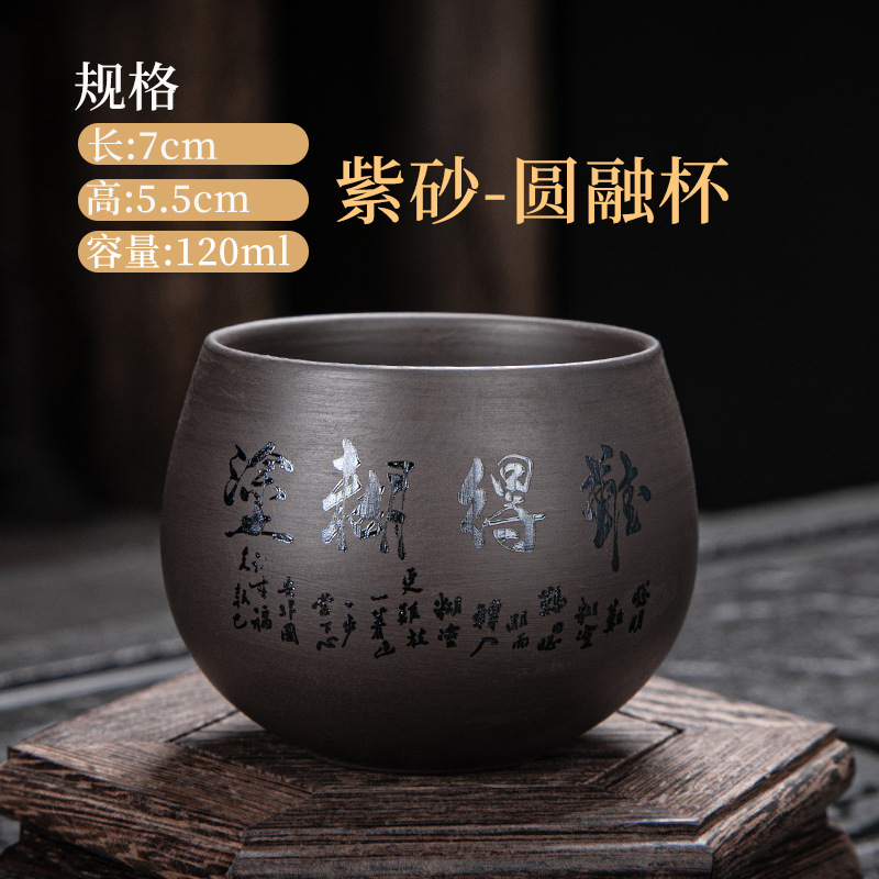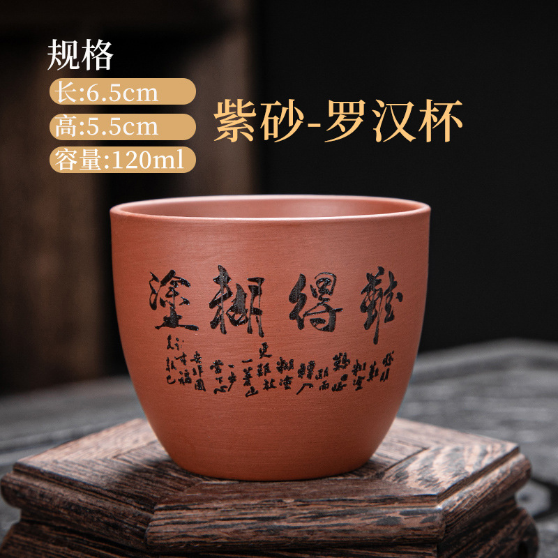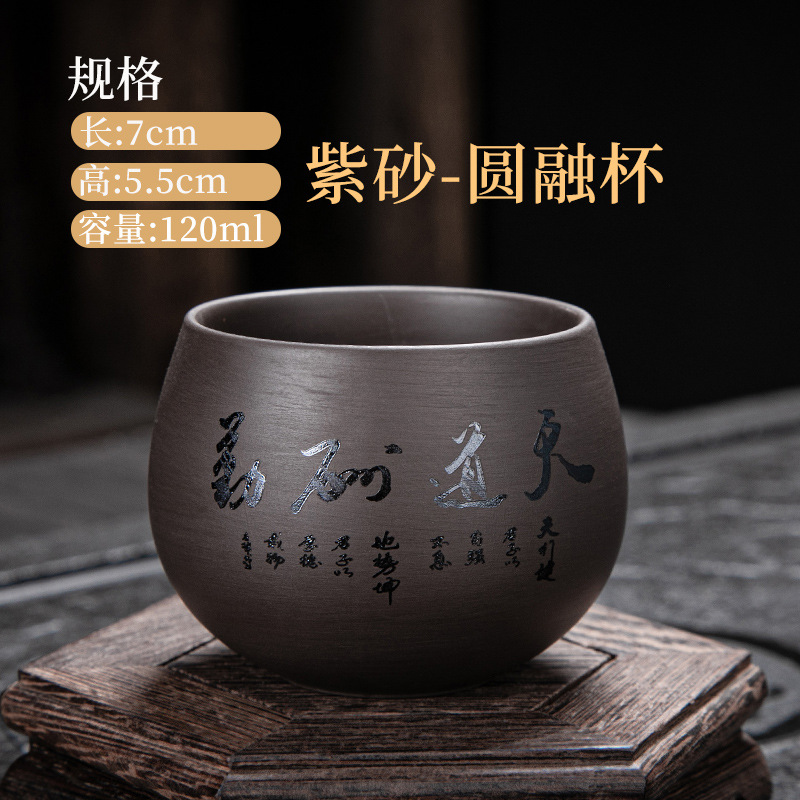 紫砂茶杯家用茶盏品茗杯单杯大号主人杯功夫茶具茶碗刻字百姓杯