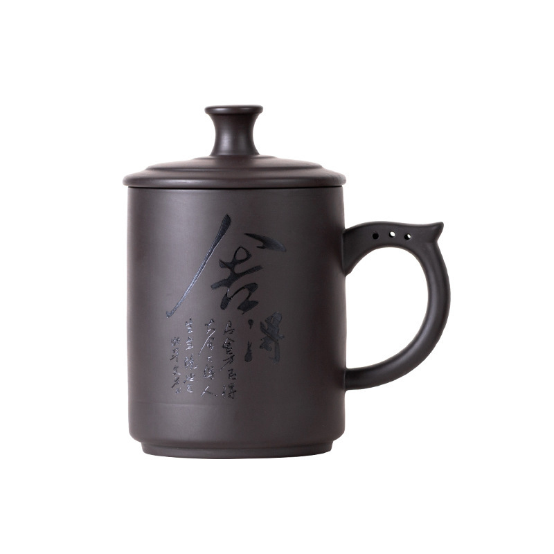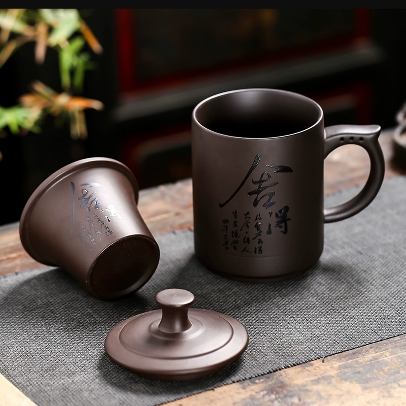 原矿紫砂办公杯带盖过滤内胆陶瓷办公室水杯过滤泡茶带盖杯子刻字