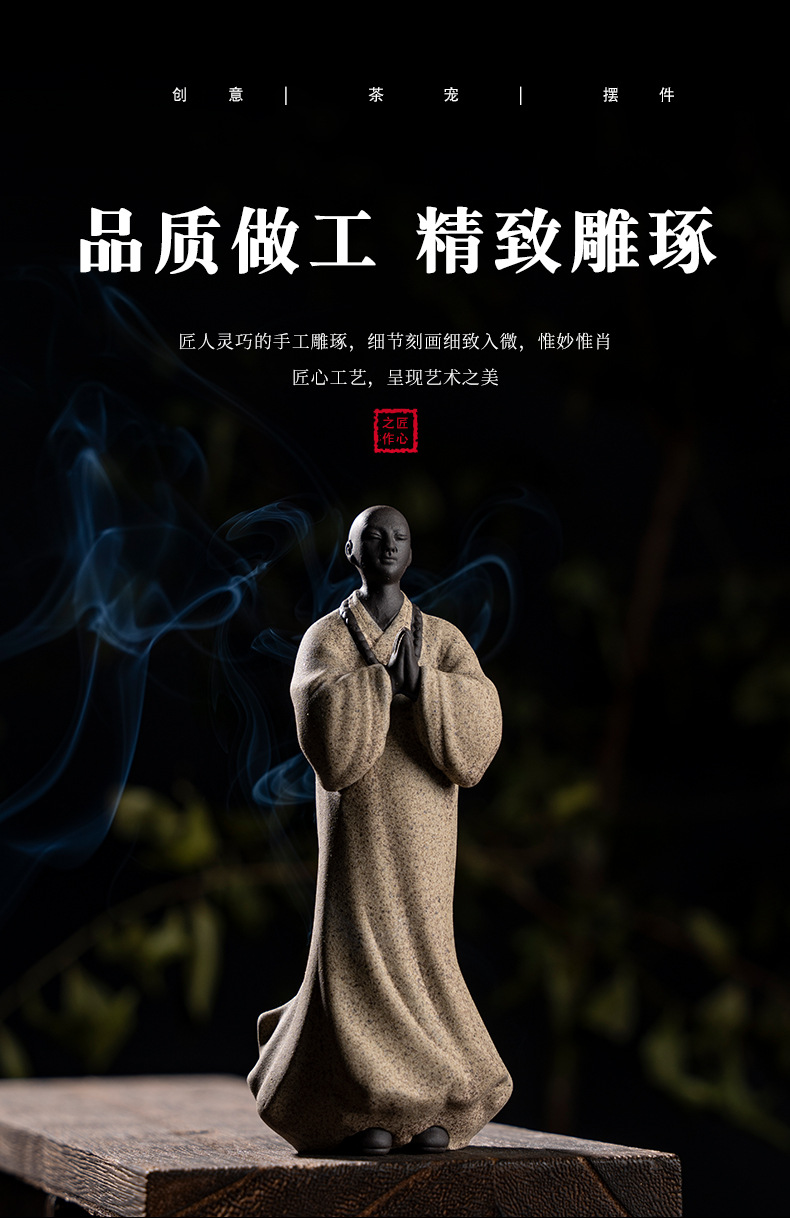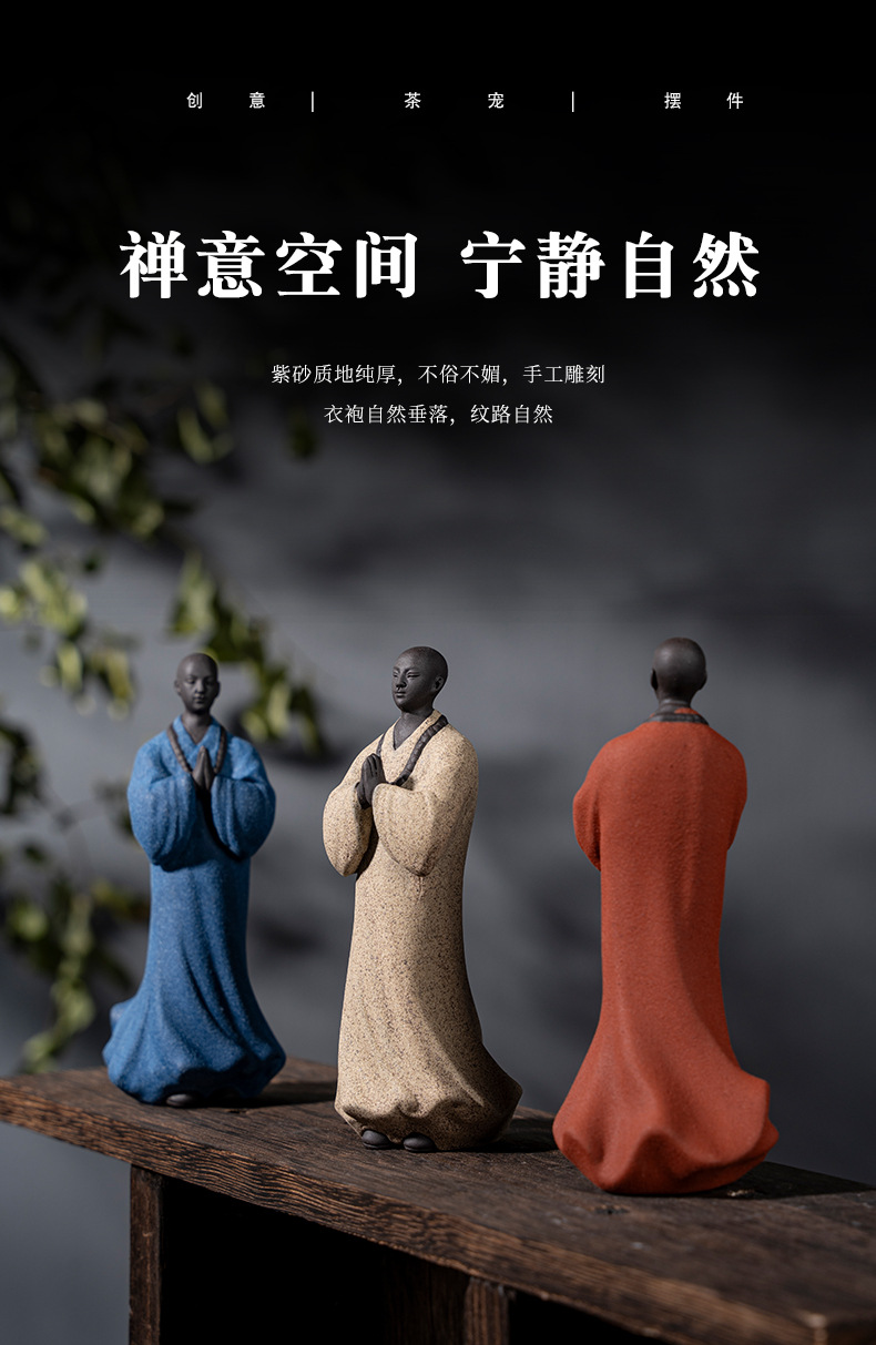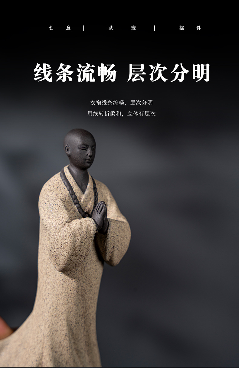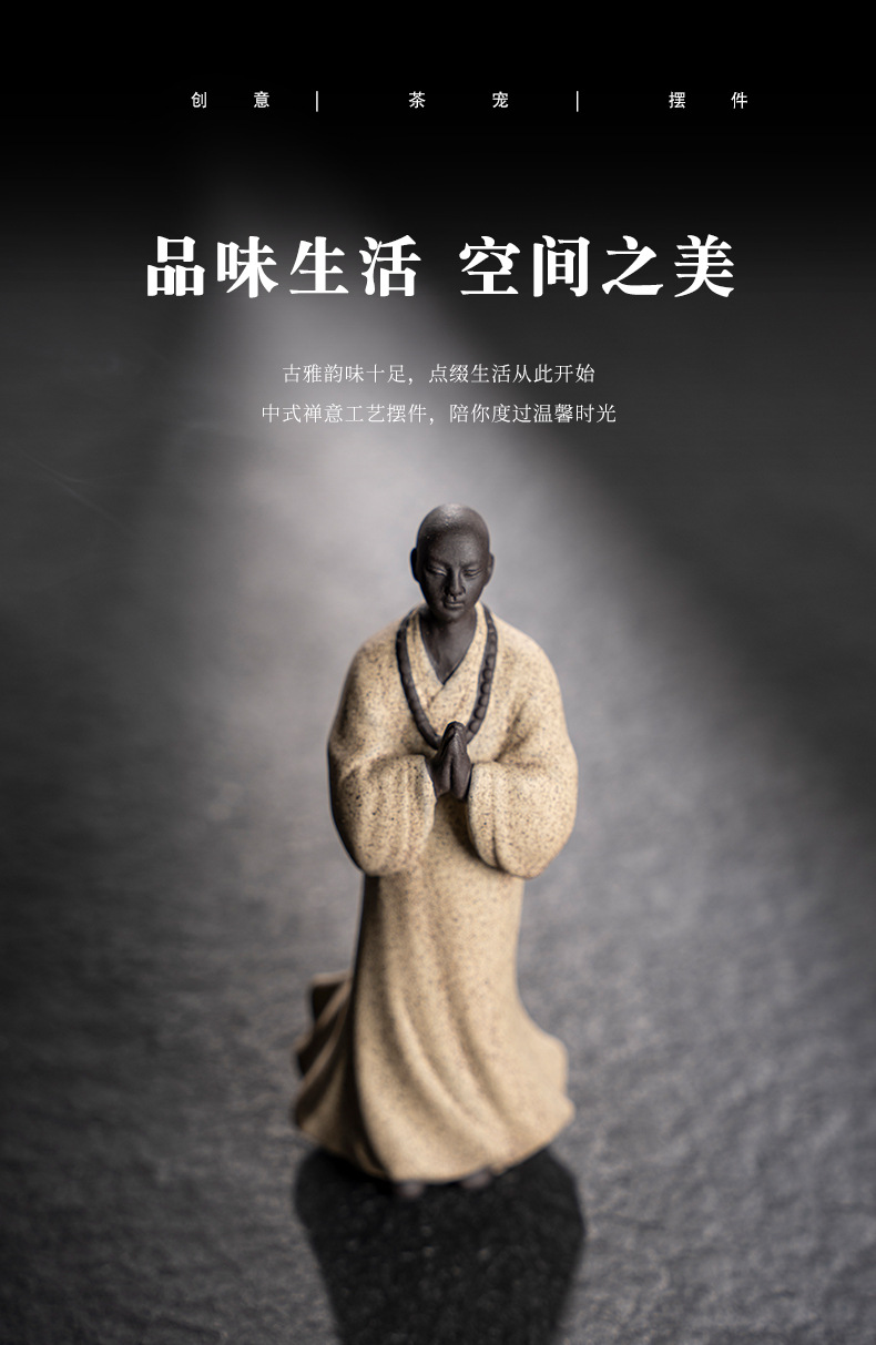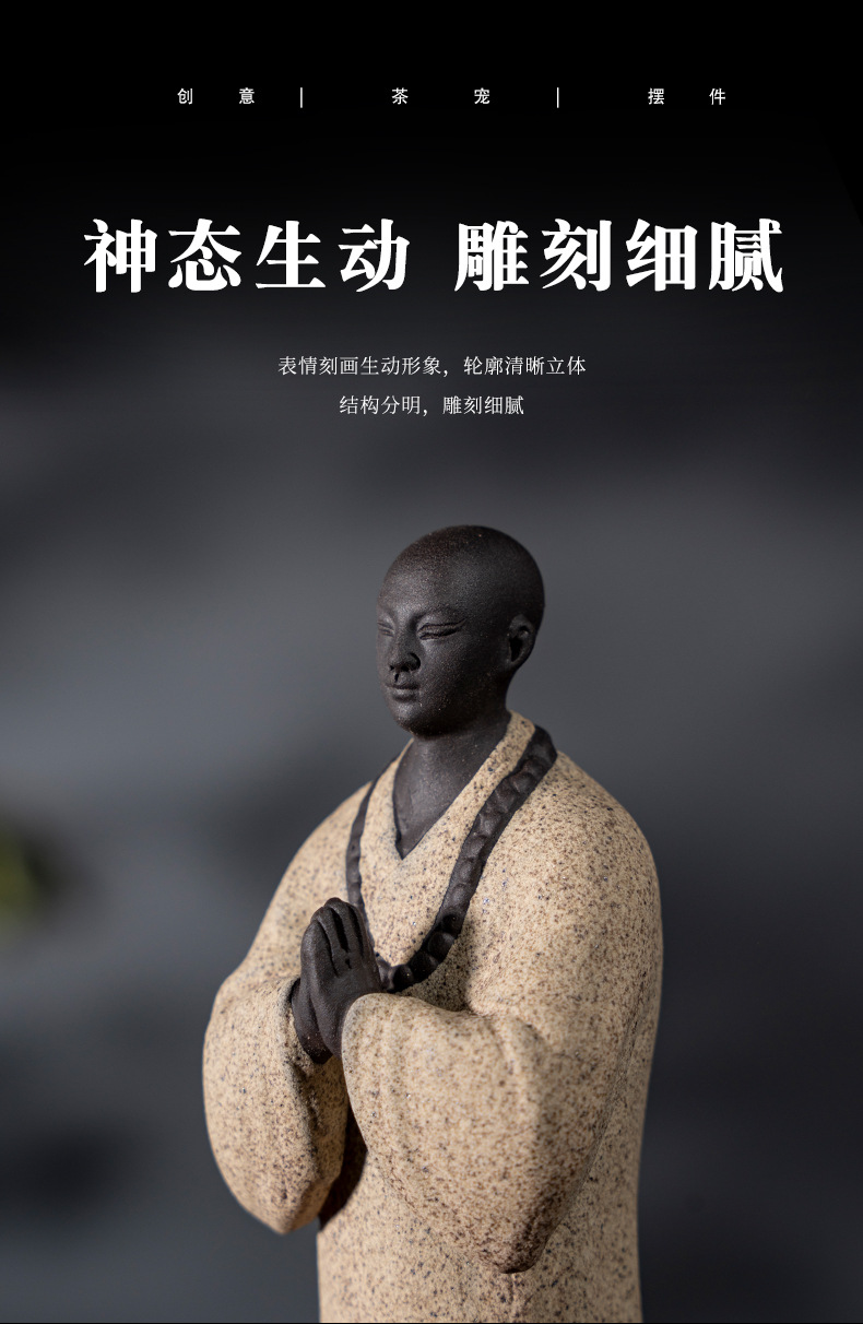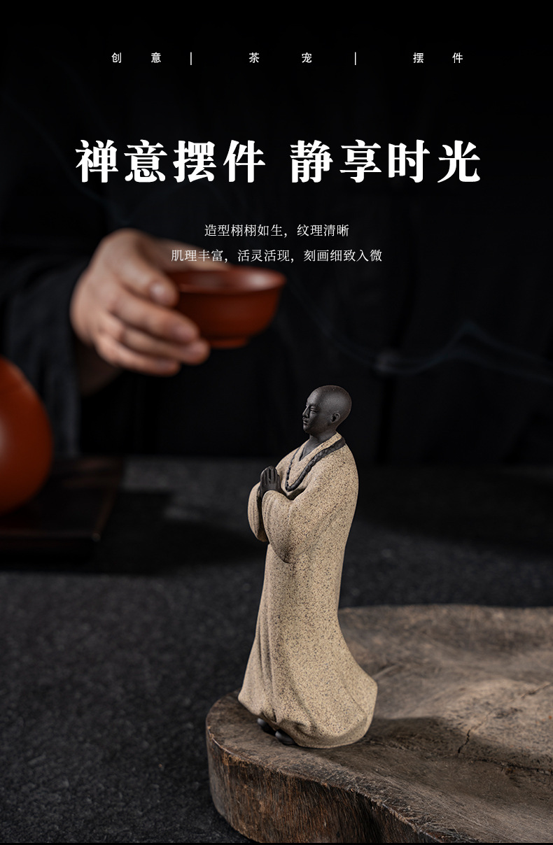禅意手工艺品紫砂精品茶宠小和尚人物摆件创意茶空间造景装饰摆设