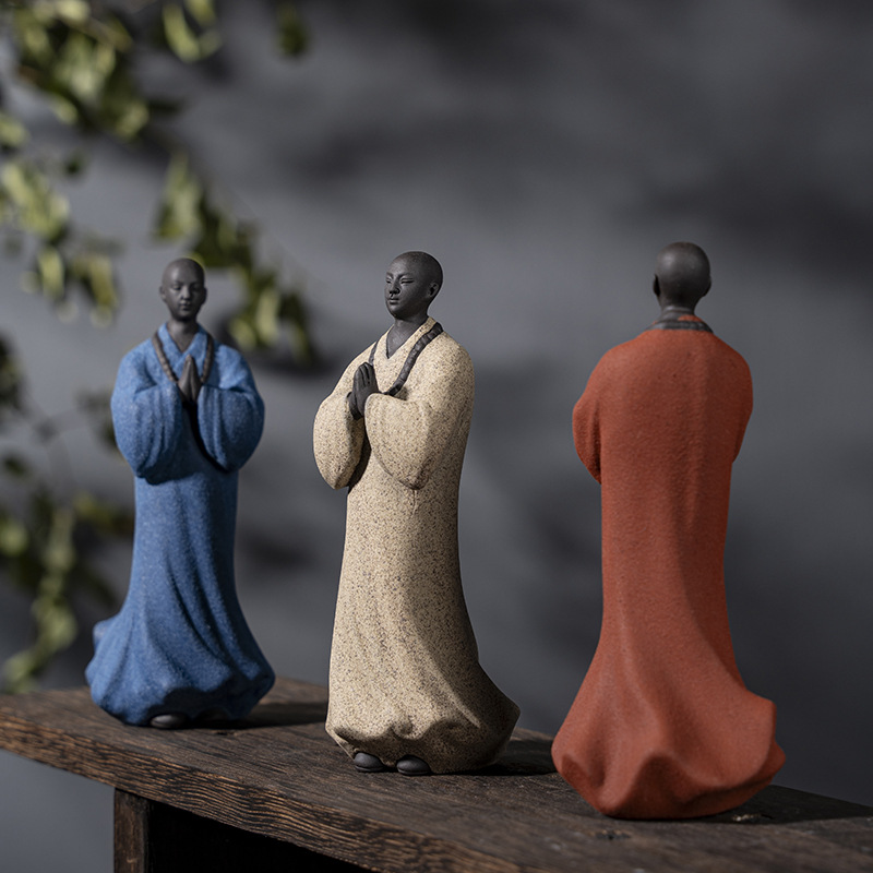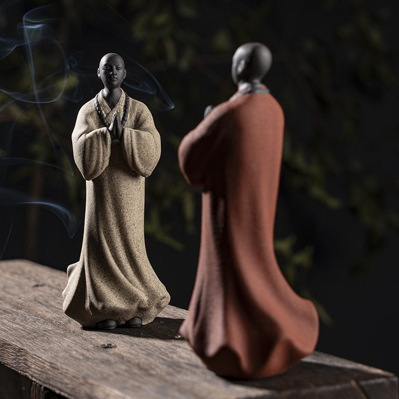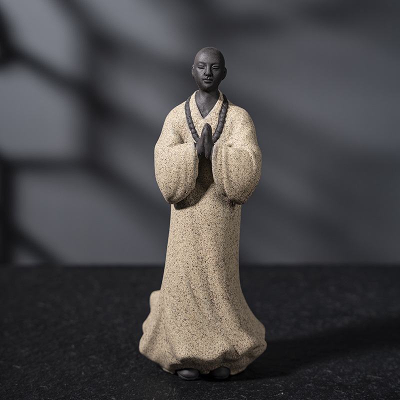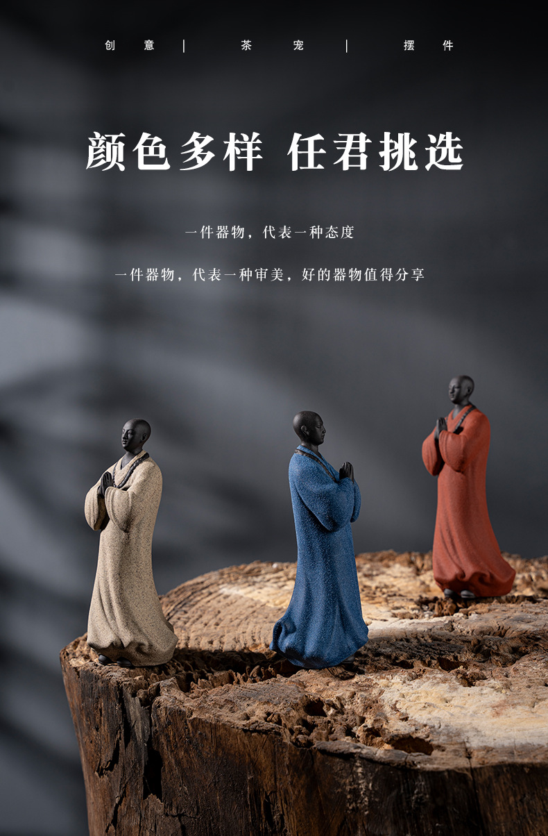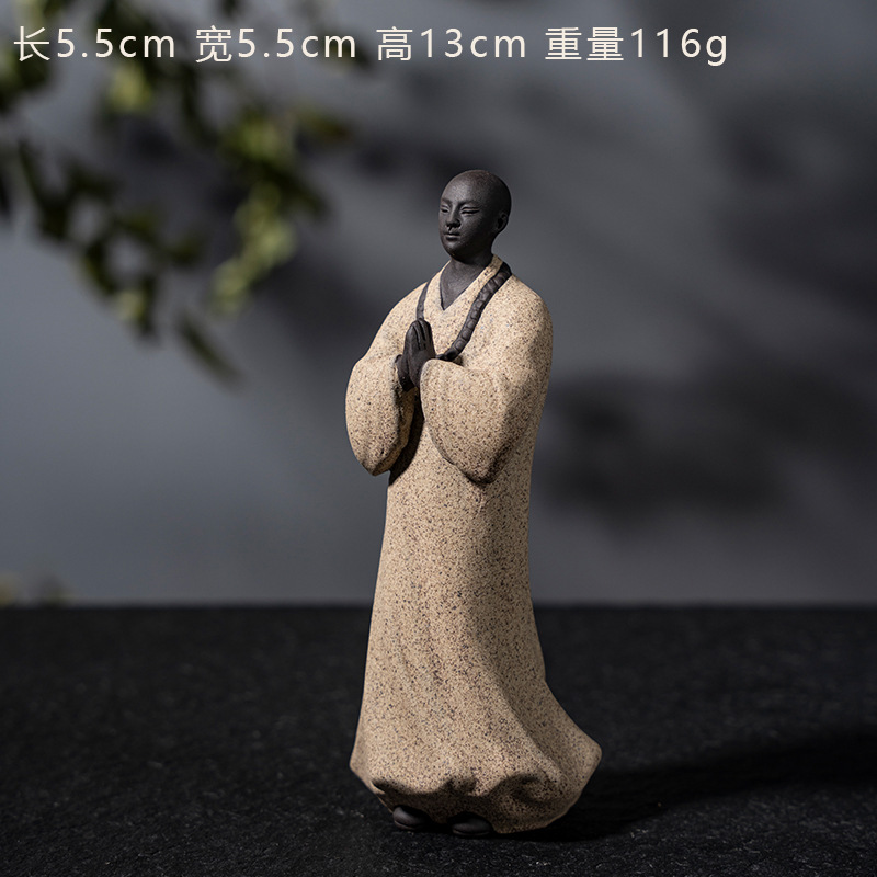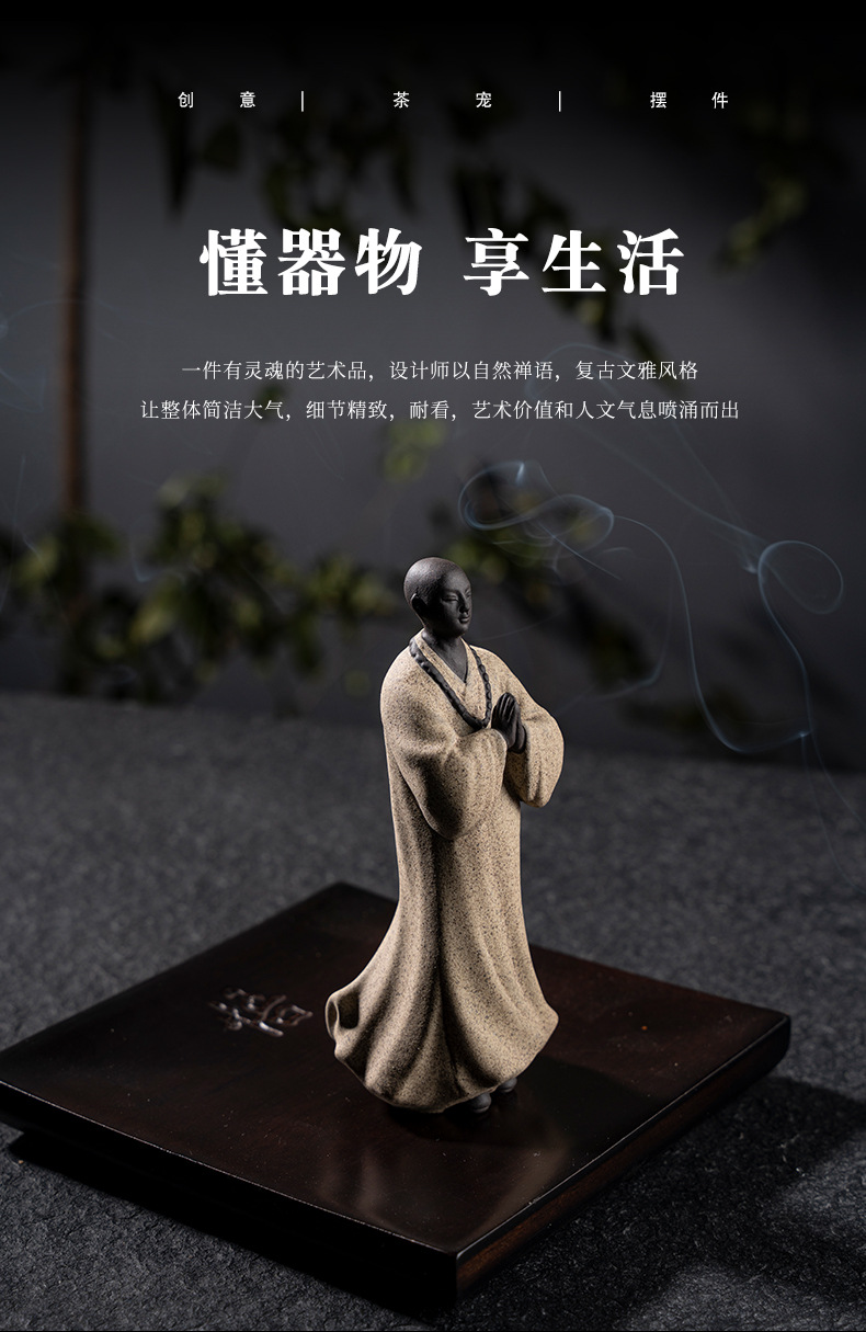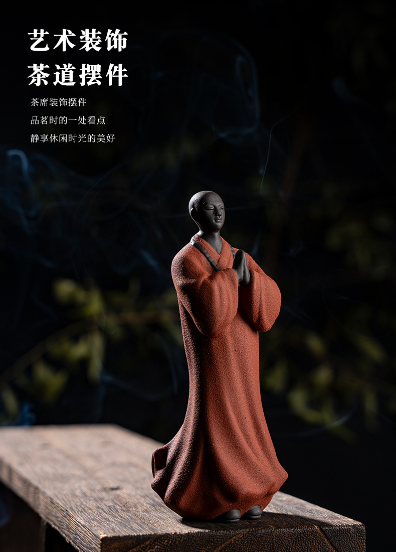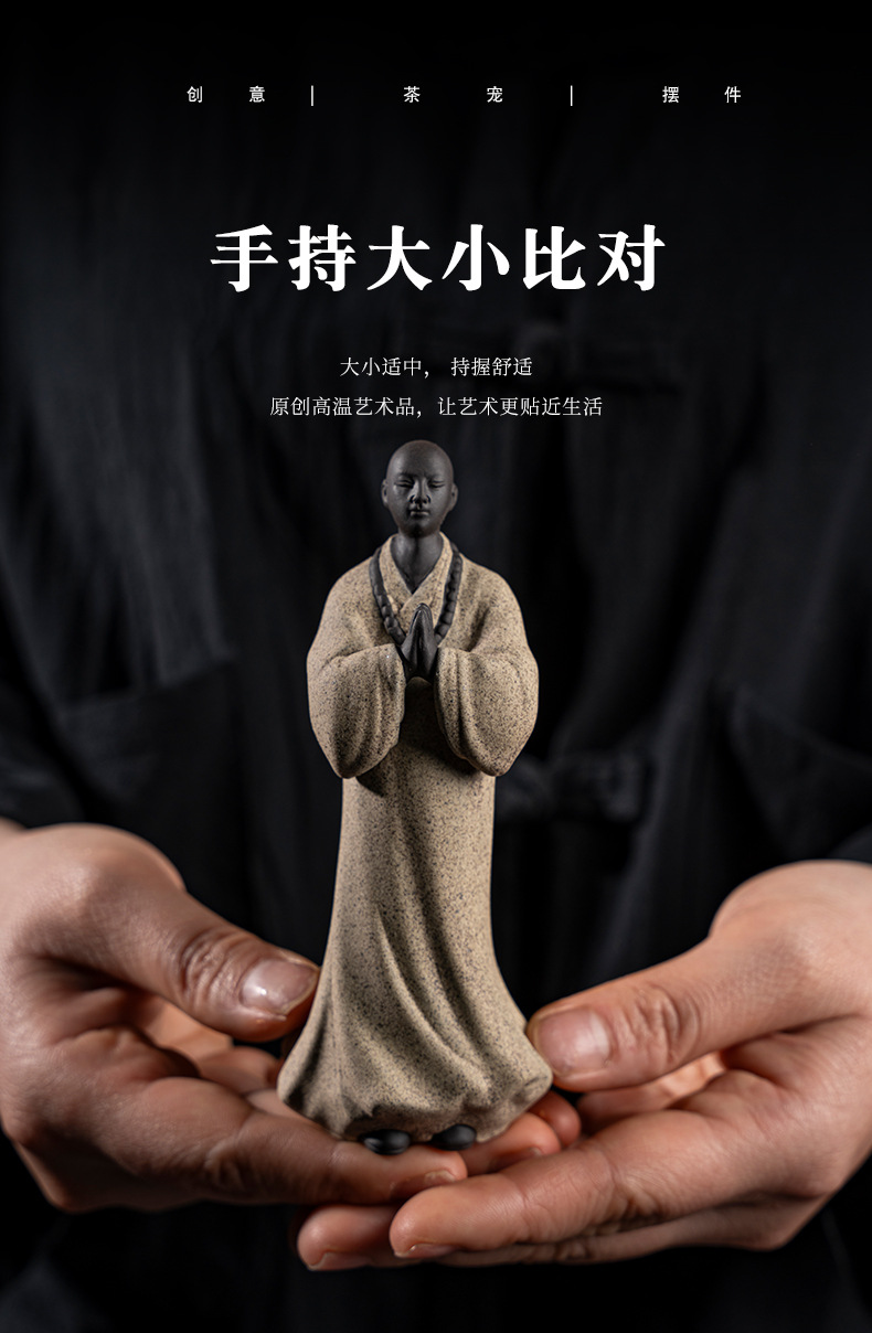 禅意手工艺品紫砂精品茶宠小和尚人物摆件创意茶空间造景装饰摆设