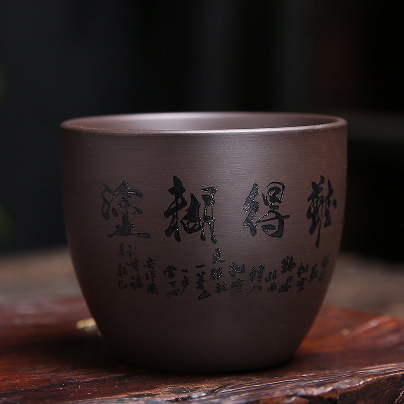 原矿紫砂茶杯品名杯紫砂礼品礼盒装主人杯大号单杯个性LOGO陶瓷茶