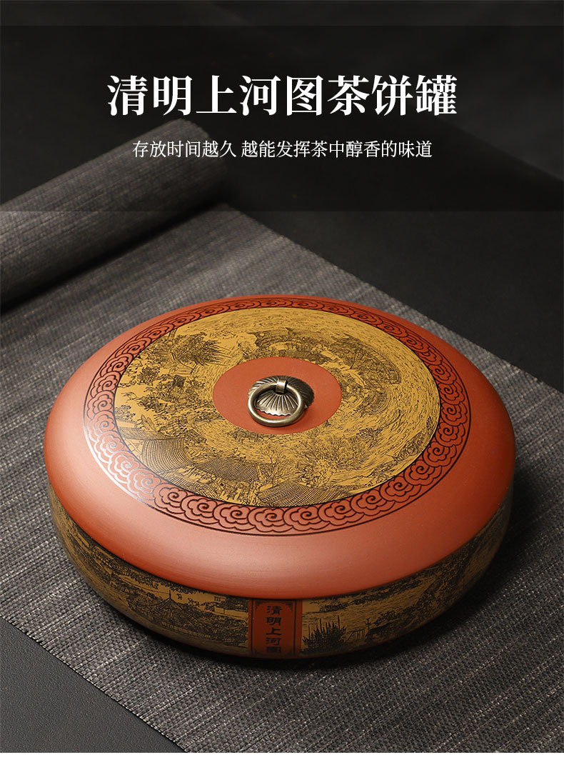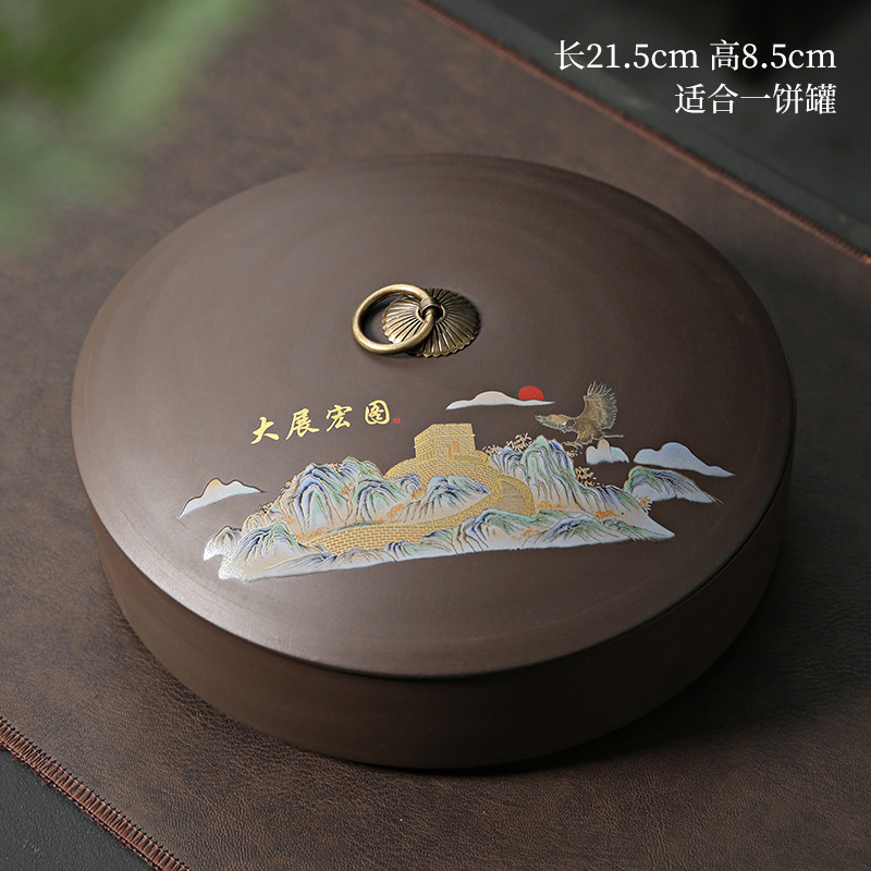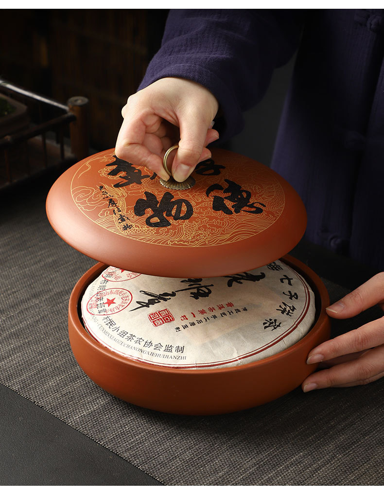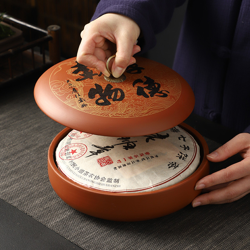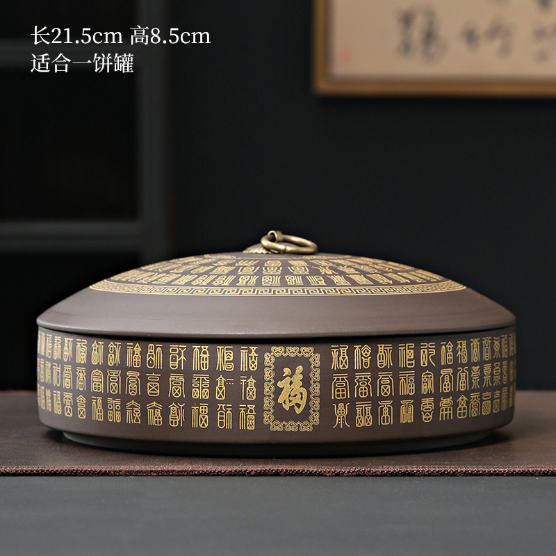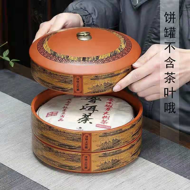 紫砂茶叶罐陶瓷家用大号茶饼罐 357克普洱茶饼包装盒储茶罐醒茶罐
