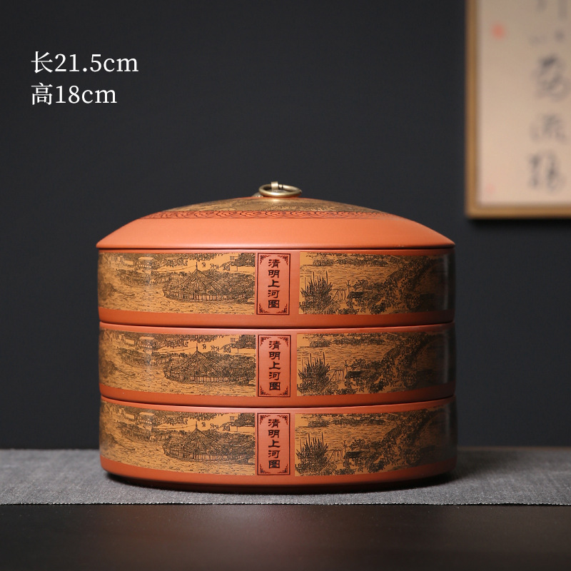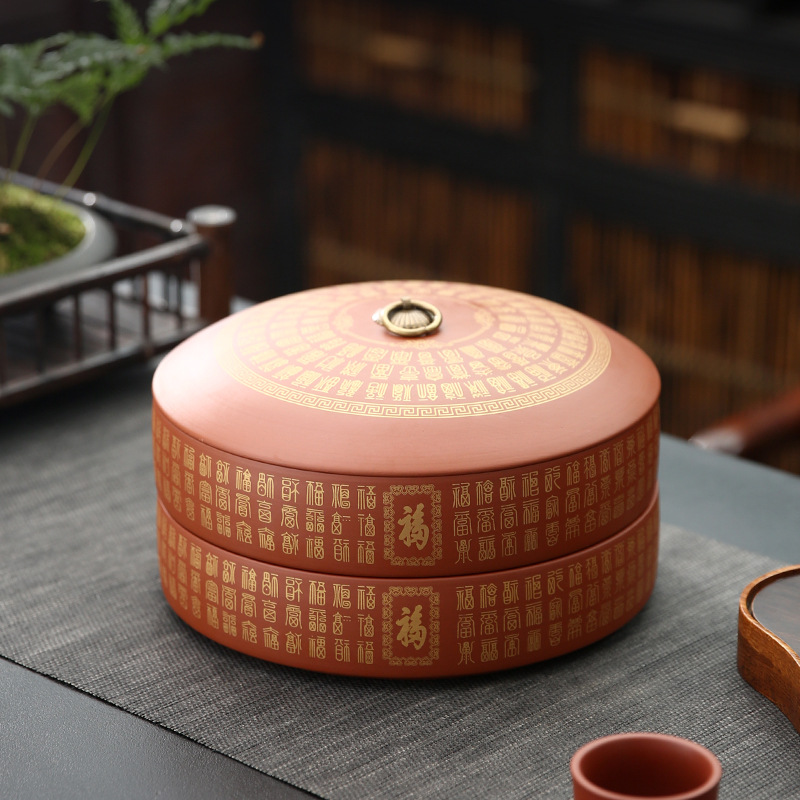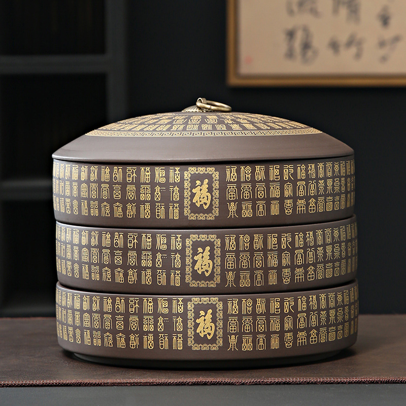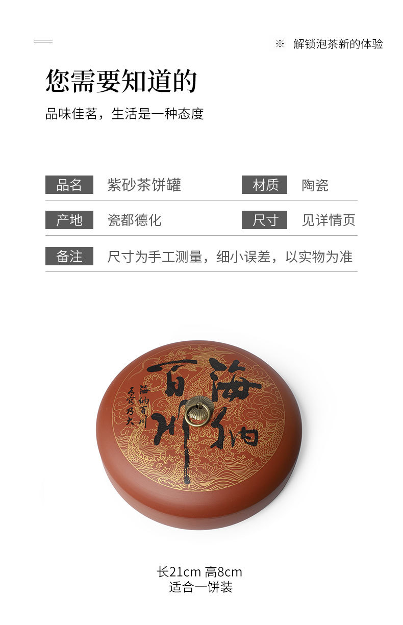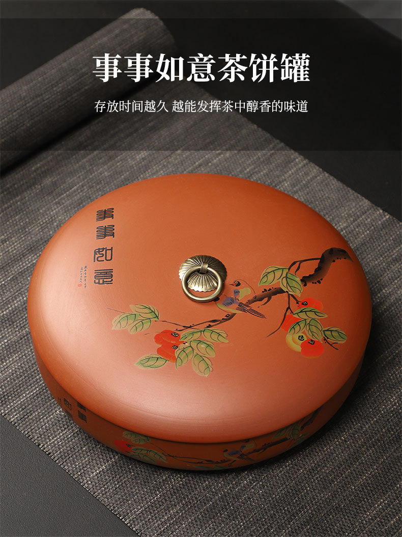 紫砂茶叶罐陶瓷家用大号茶饼罐 357克普洱茶饼包装盒储茶罐醒茶罐