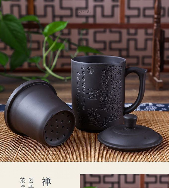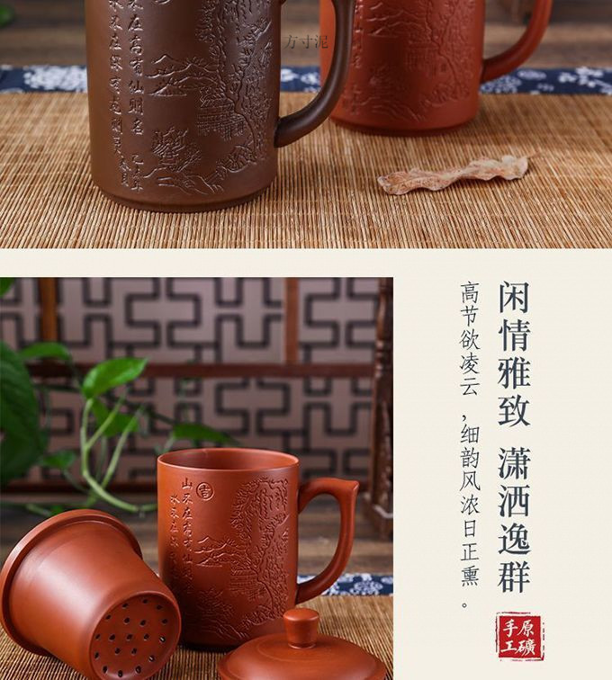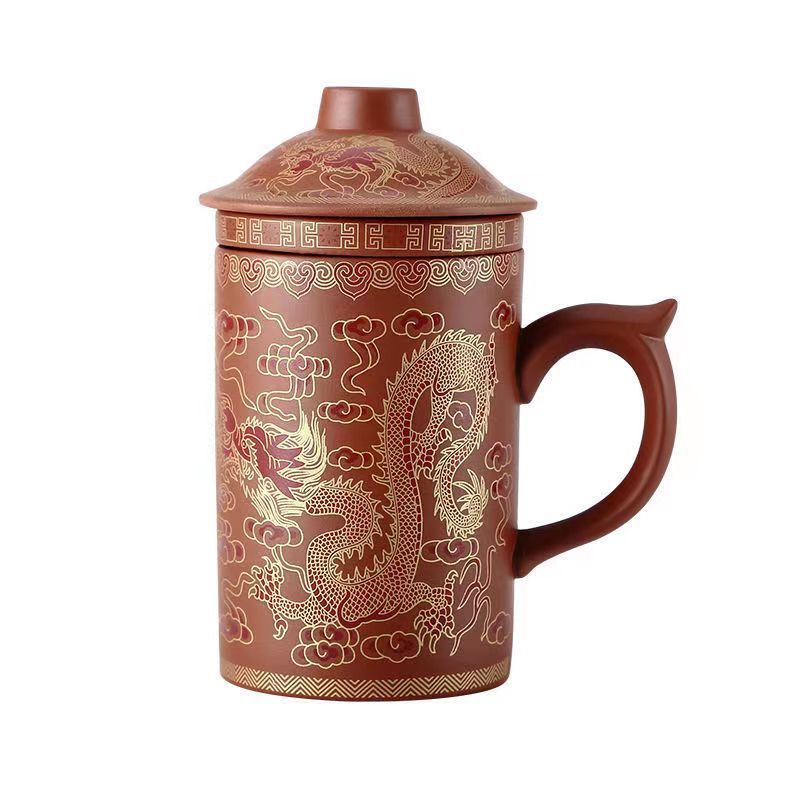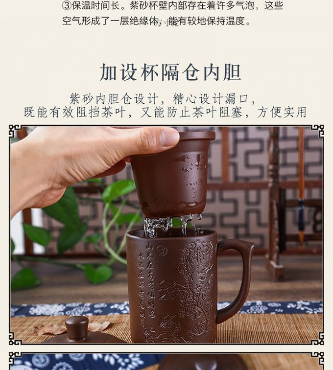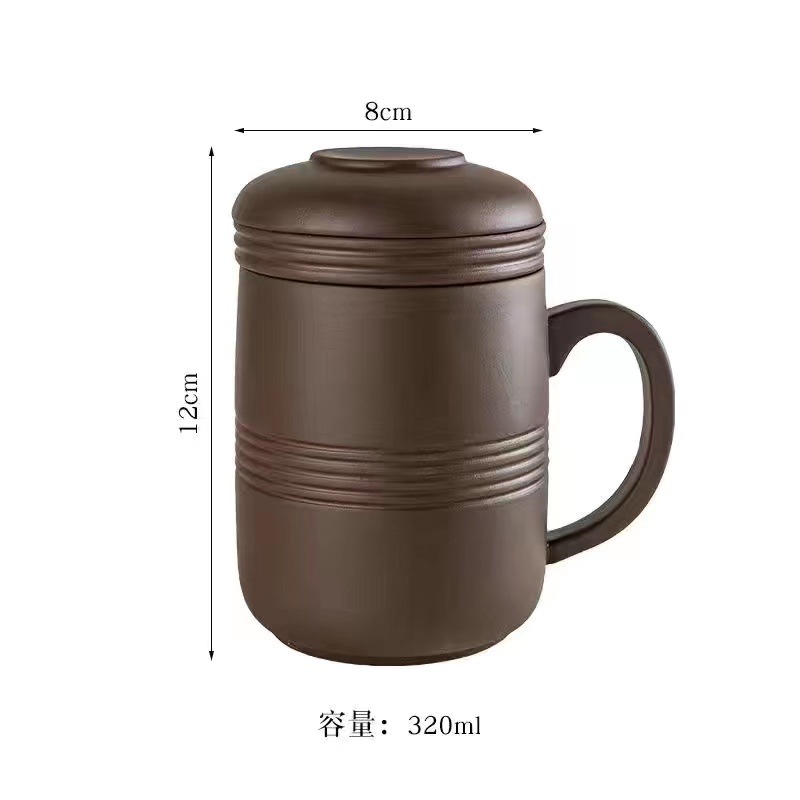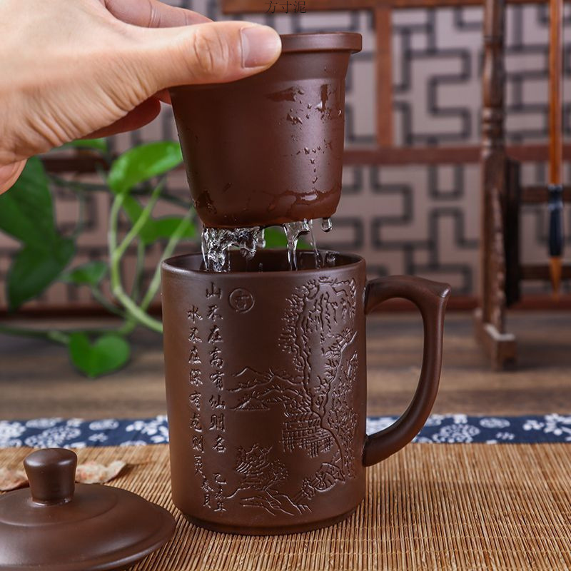 紫砂杯茶杯陶瓷杯内胆过滤杯大杯子大容量泡茶杯主人杯带盖办公杯