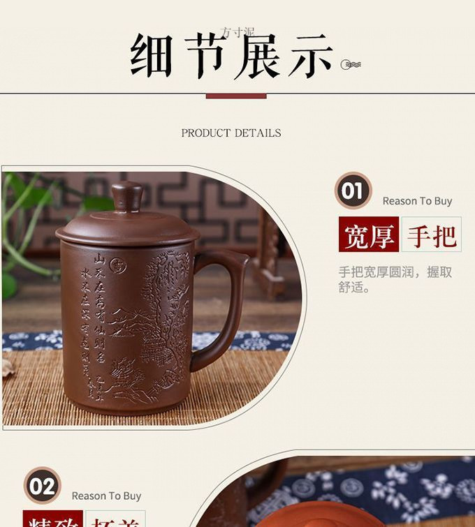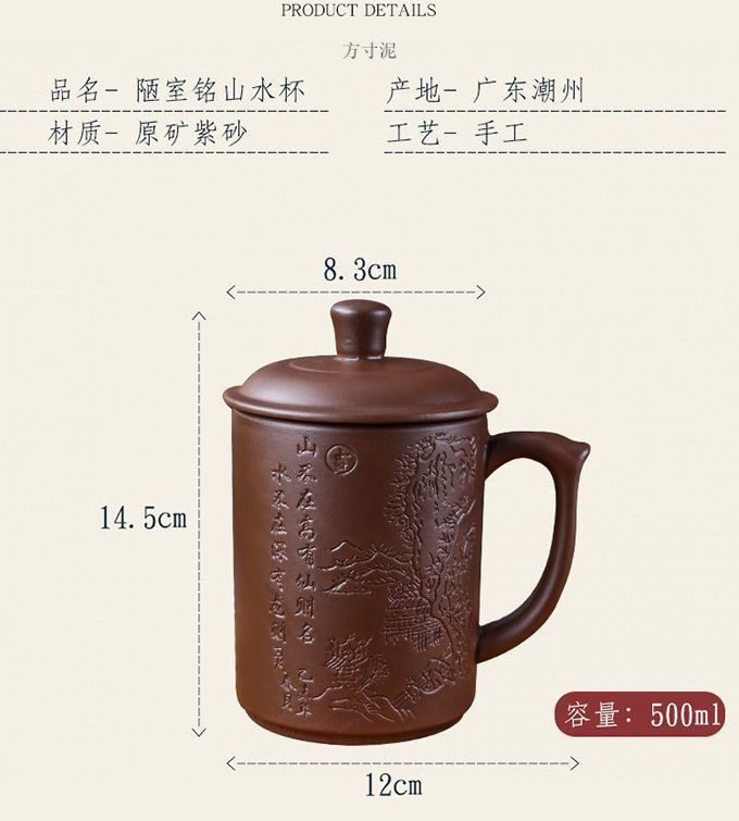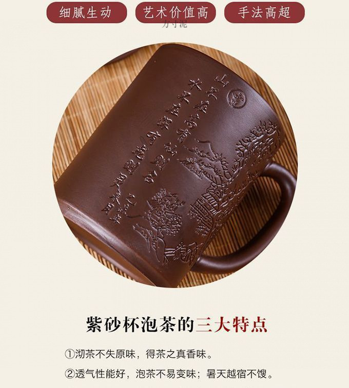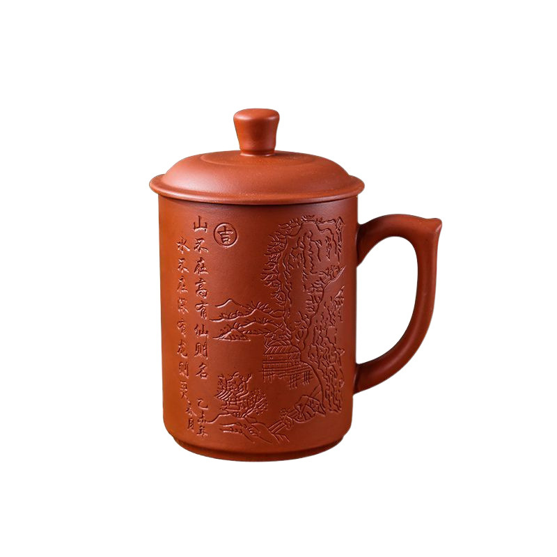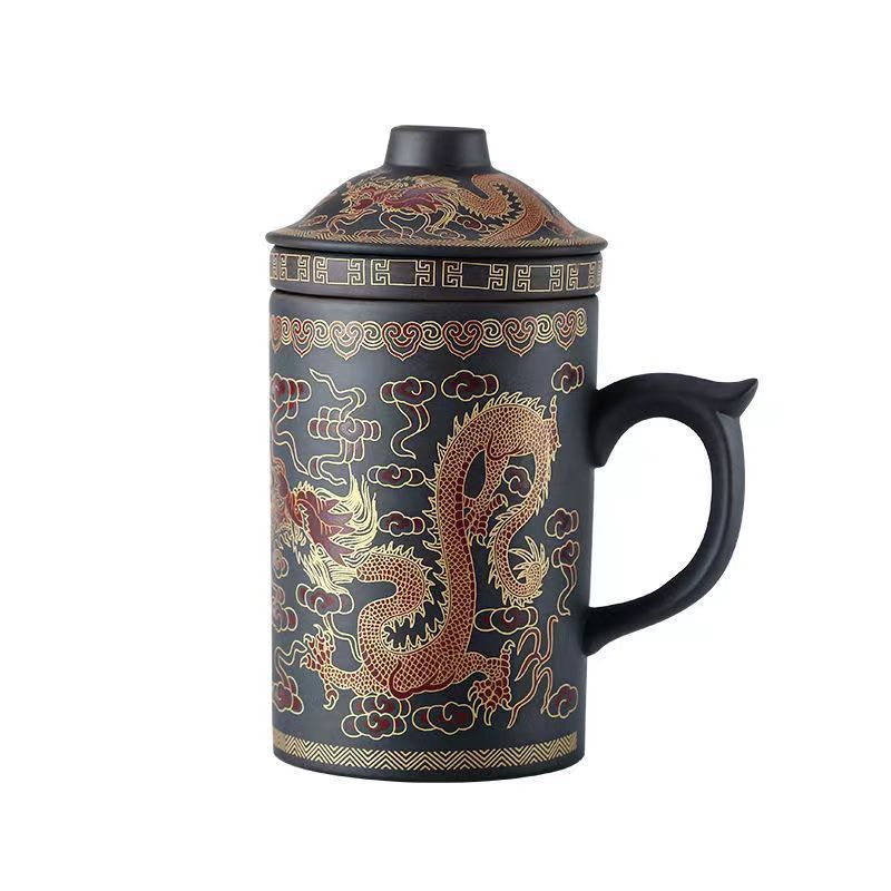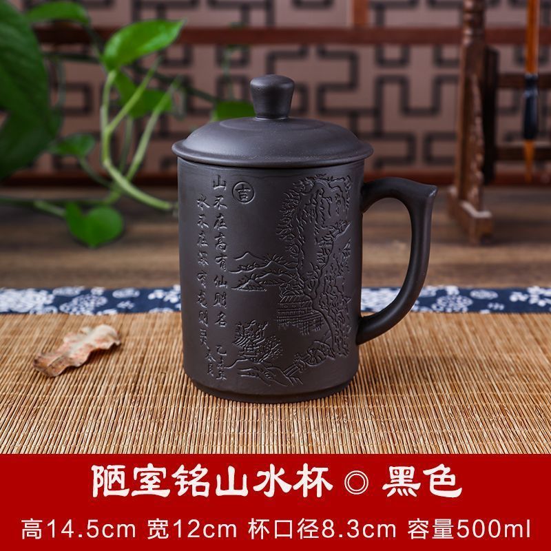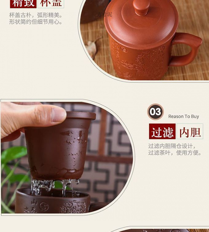 紫砂杯茶杯陶瓷杯内胆过滤杯大杯子大容量泡茶杯主人杯带盖办公杯