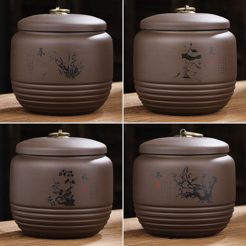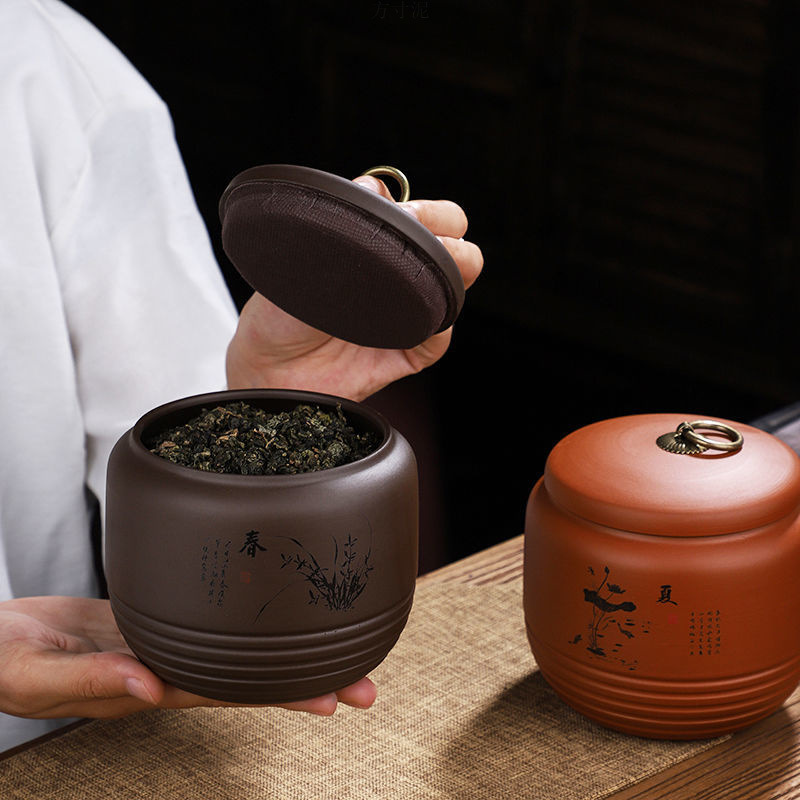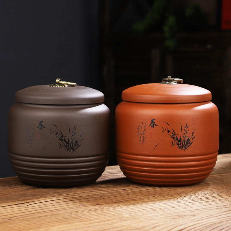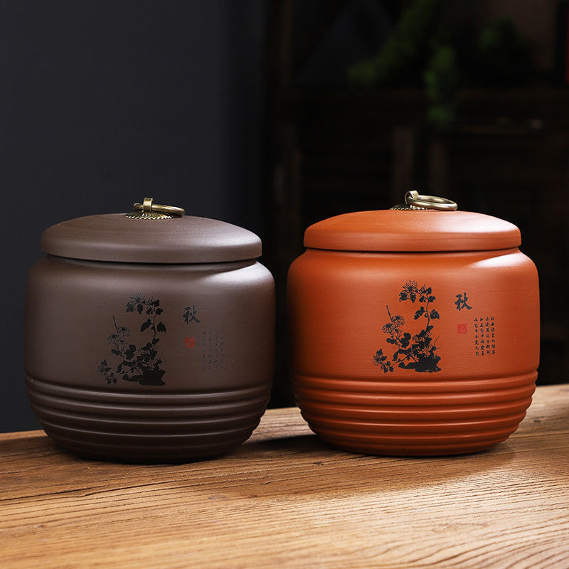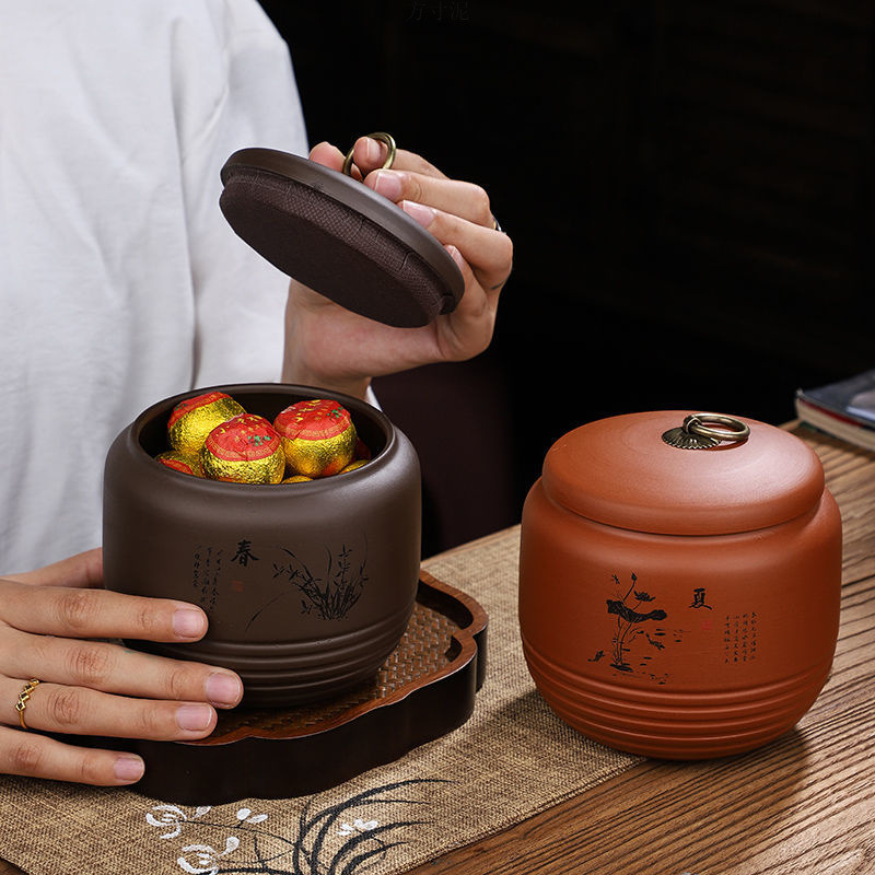 大号紫砂茶叶罐密封醒茶罐小号家用茶罐干果储存罐半斤装外贸批发
