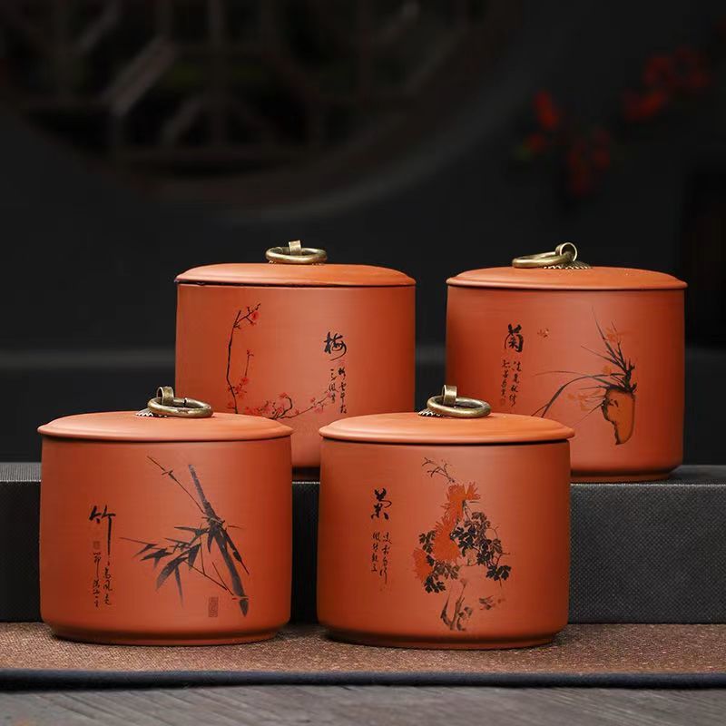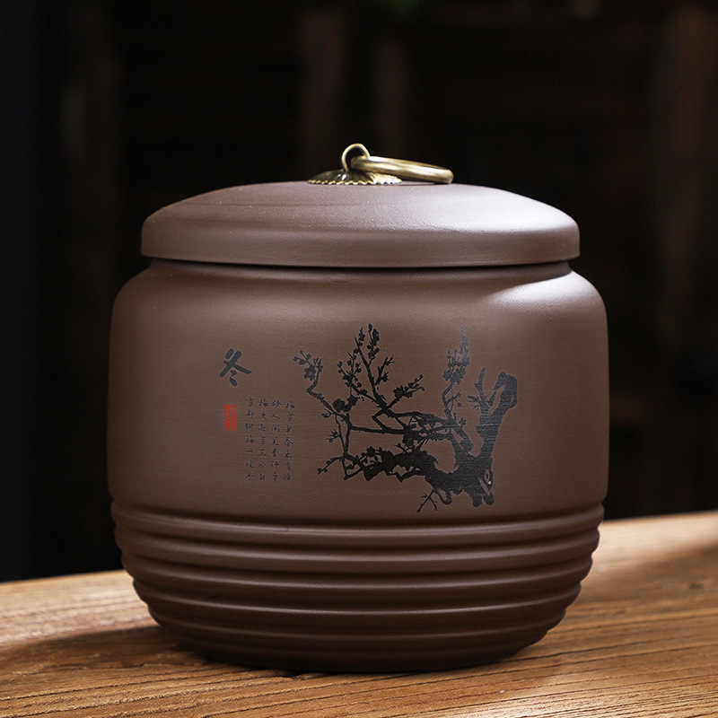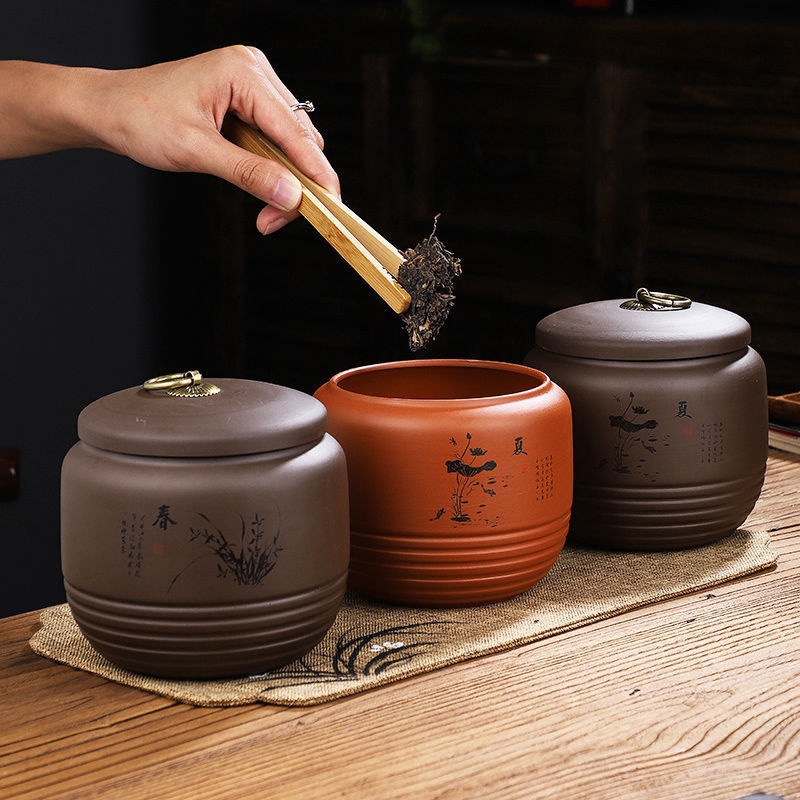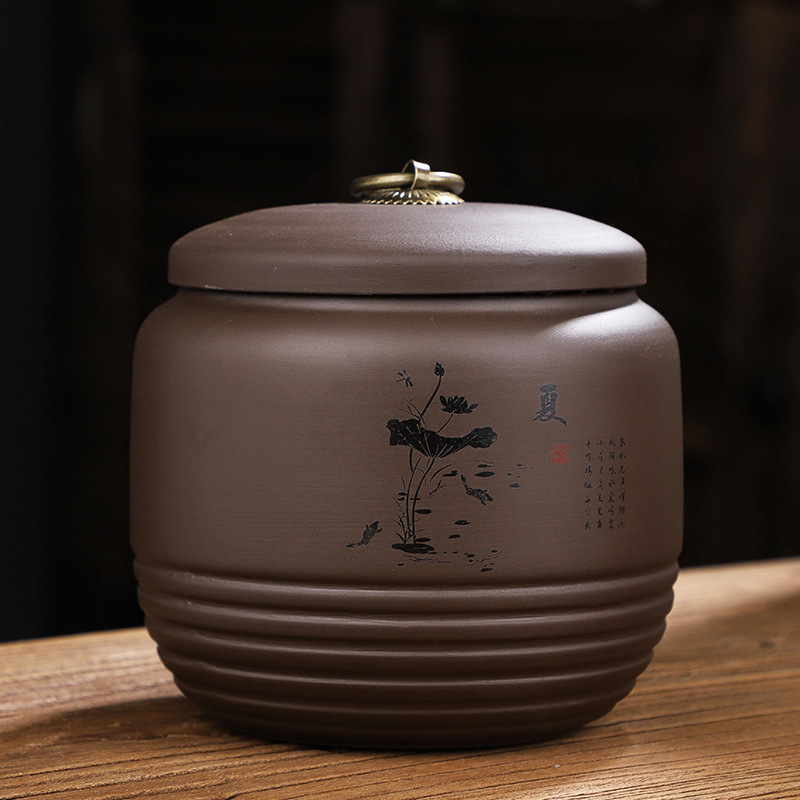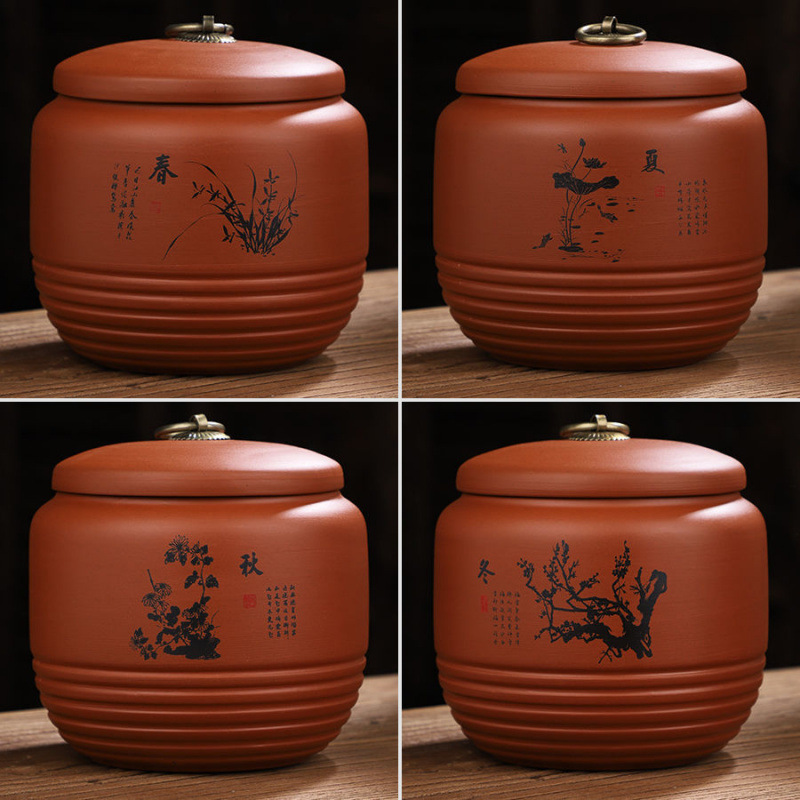 大号紫砂茶叶罐密封醒茶罐小号家用茶罐干果储存罐半斤装外贸批发