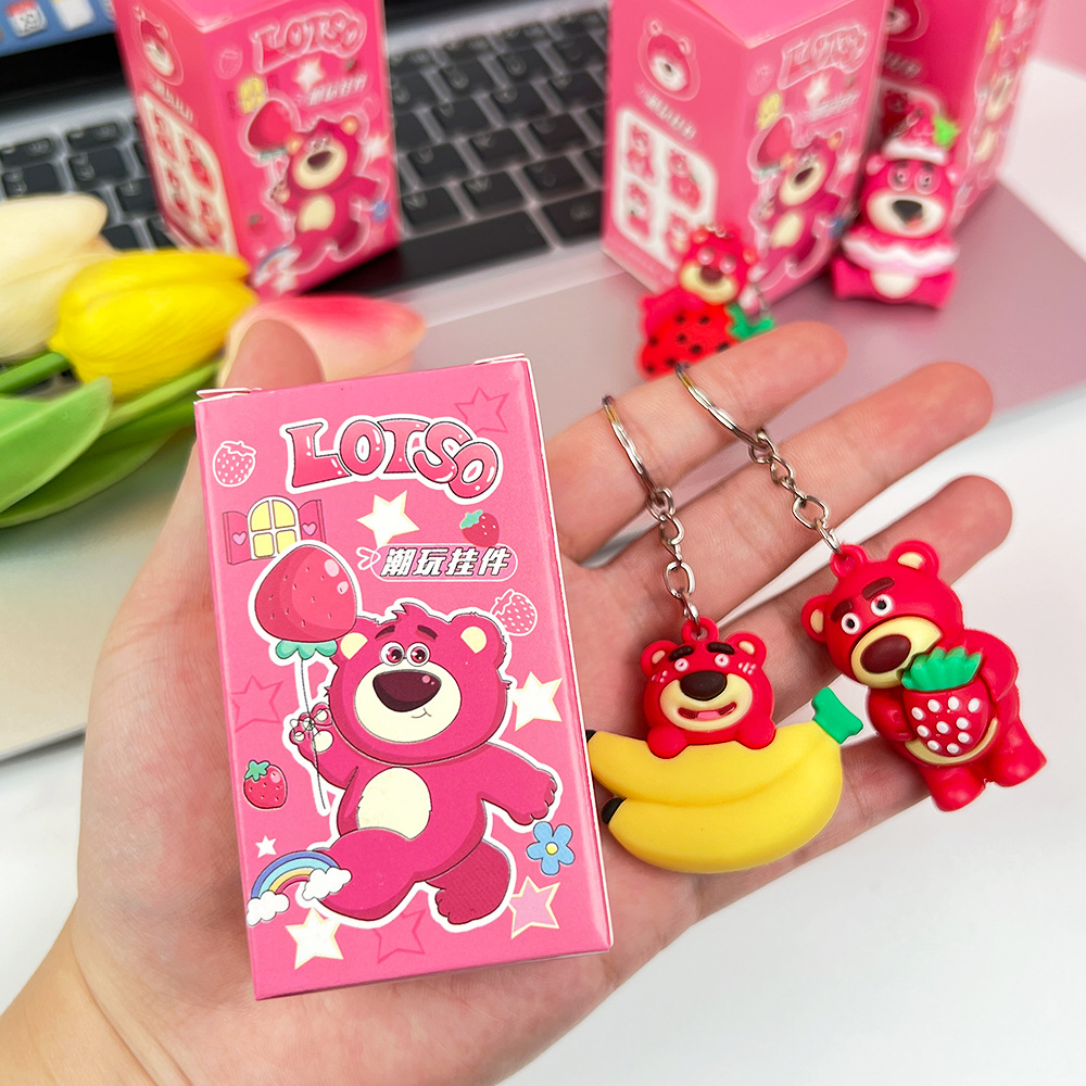 儿童礼物草莓熊盲盒钥匙扣挂件批发卡通公仔盲盒钥匙扣小学生玩具