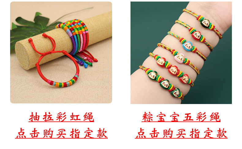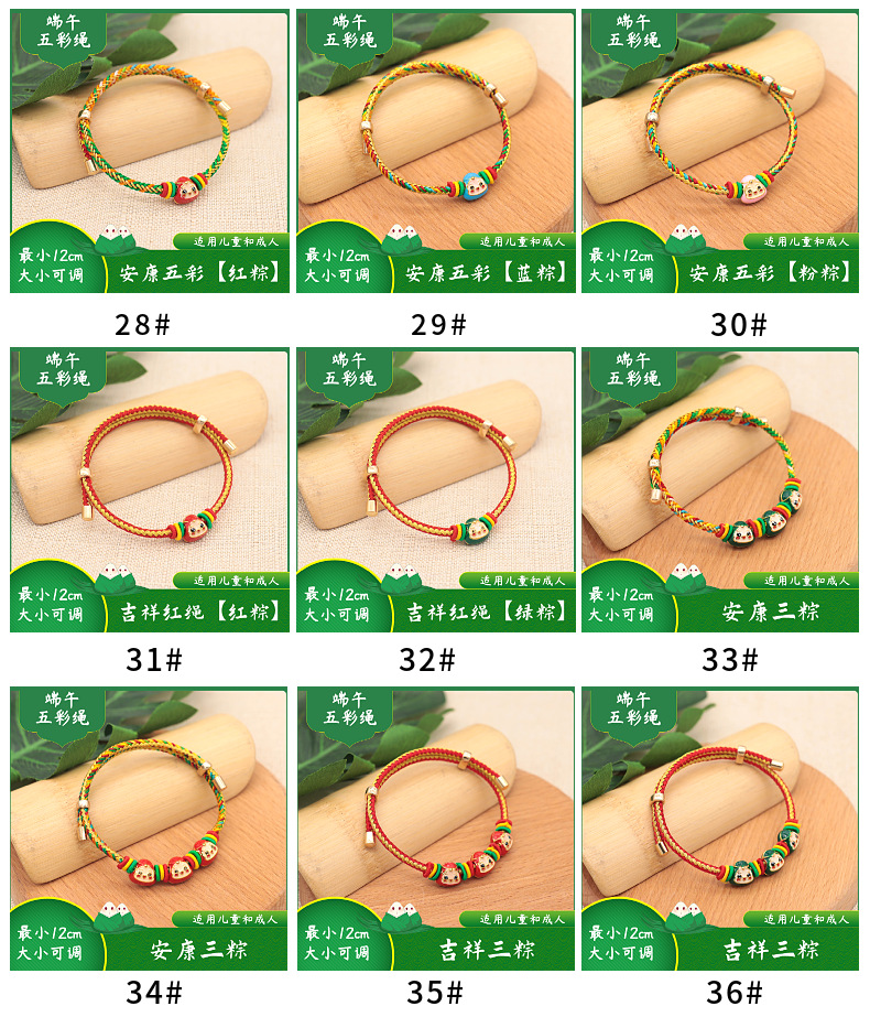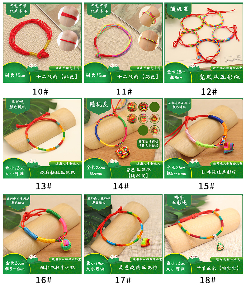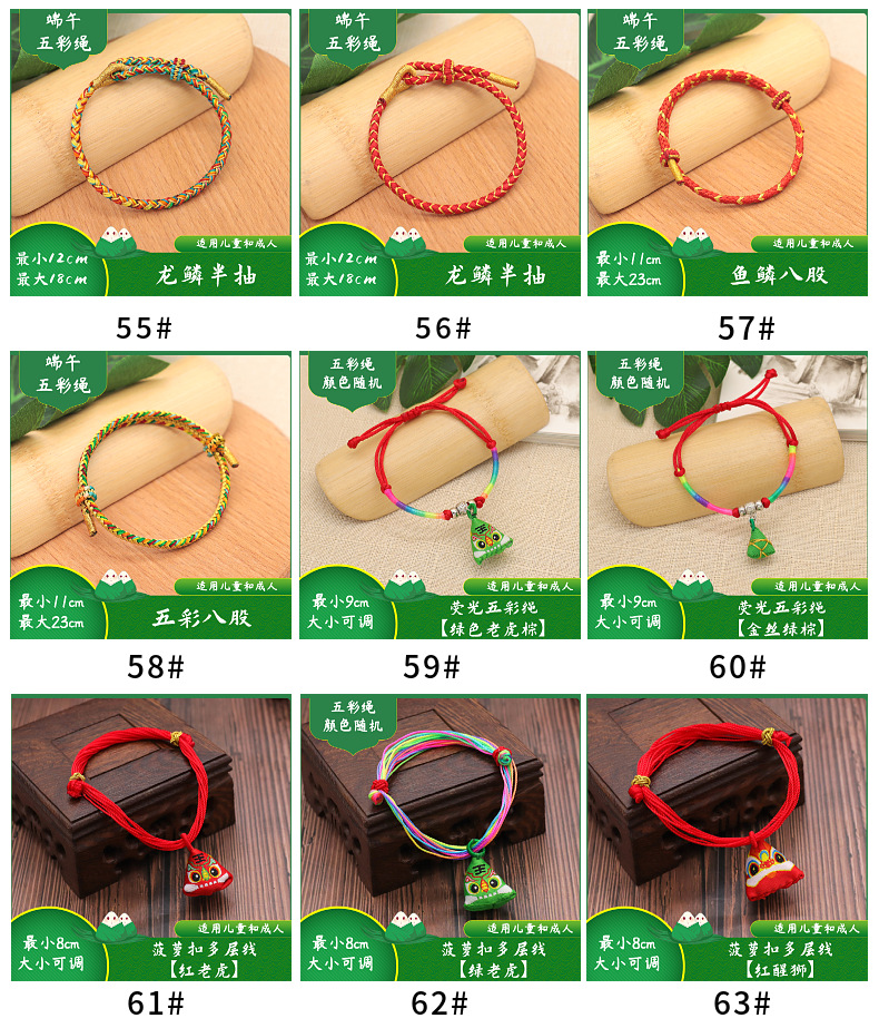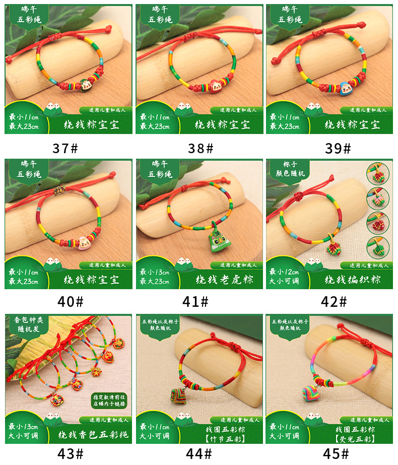 端午节五彩绳手链批发儿童成人手工编织小粽子老虎香包民族风手绳