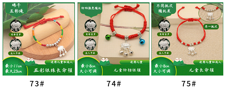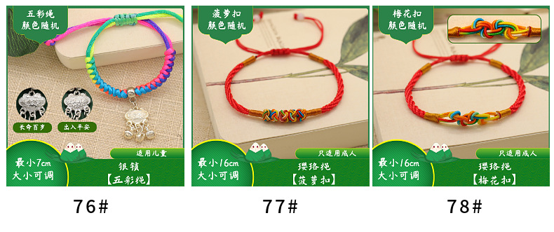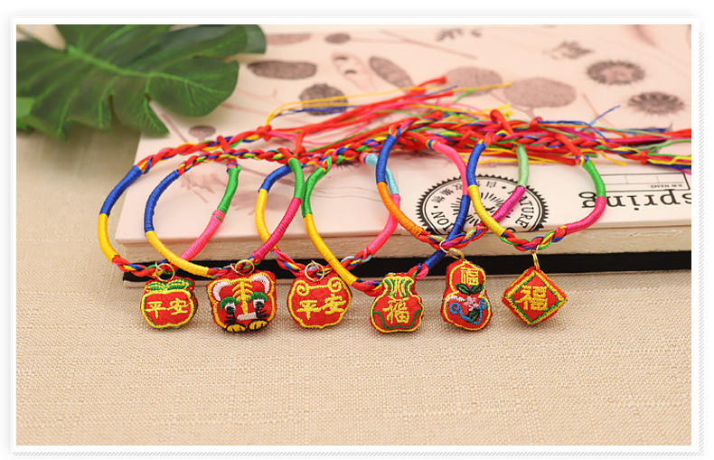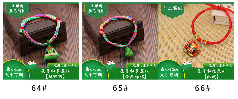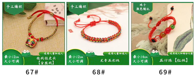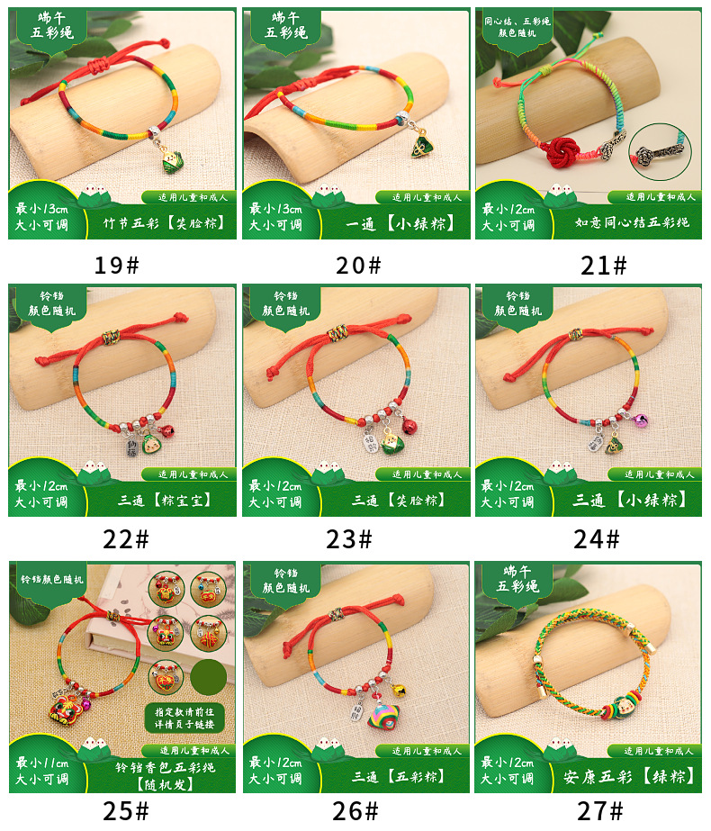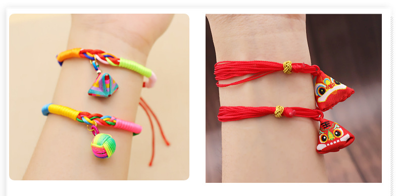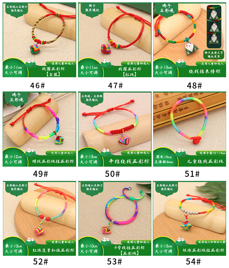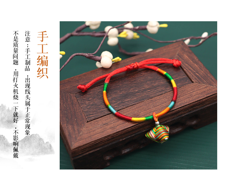 端午节五彩绳手链批发儿童成人手工编织小粽子老虎香包民族风手绳