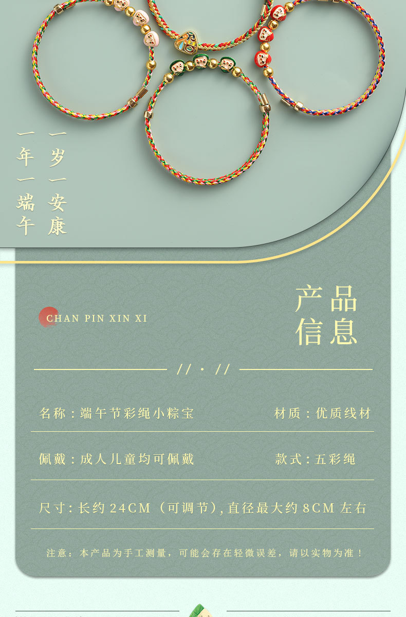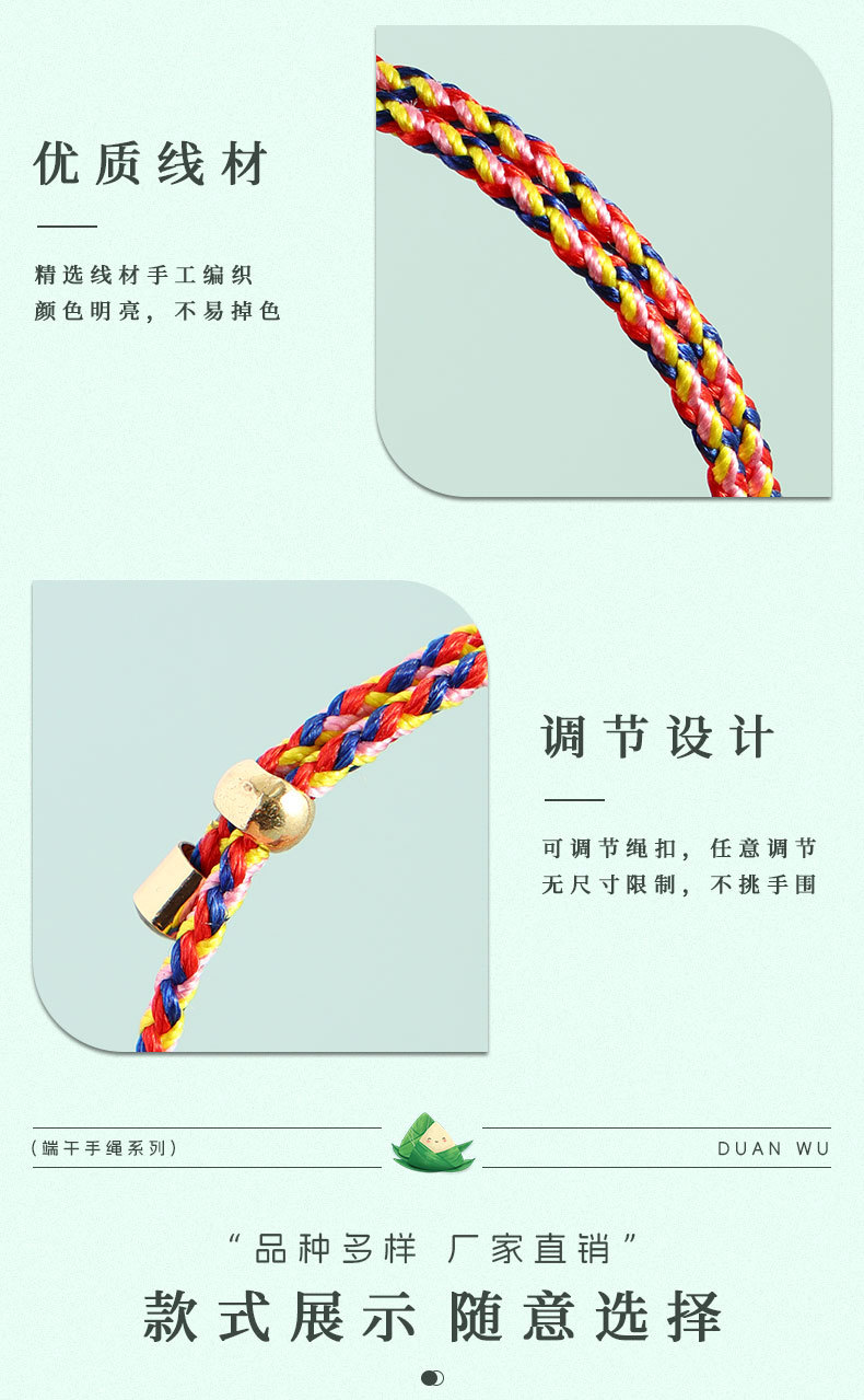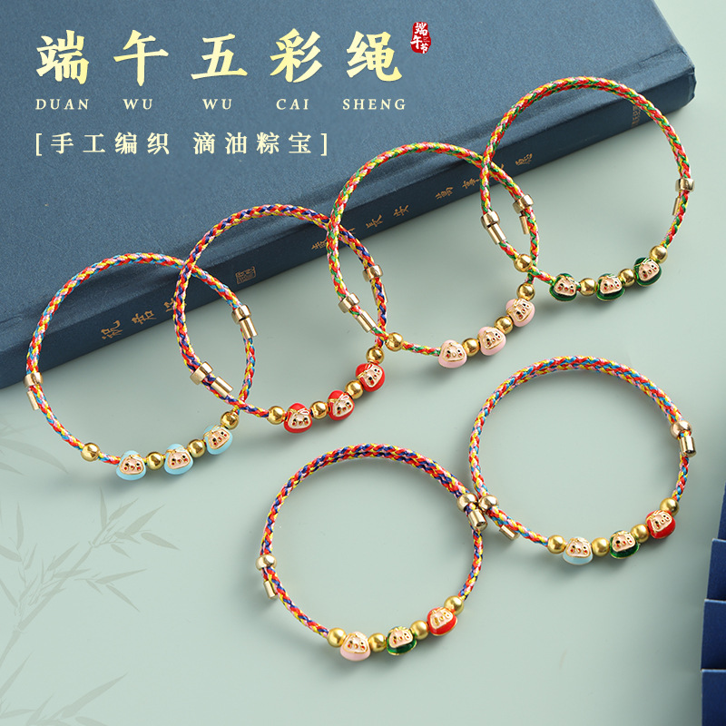 端午节新款五彩绳手链成品手工编织粽子儿童宝宝五色手绳饰品批发