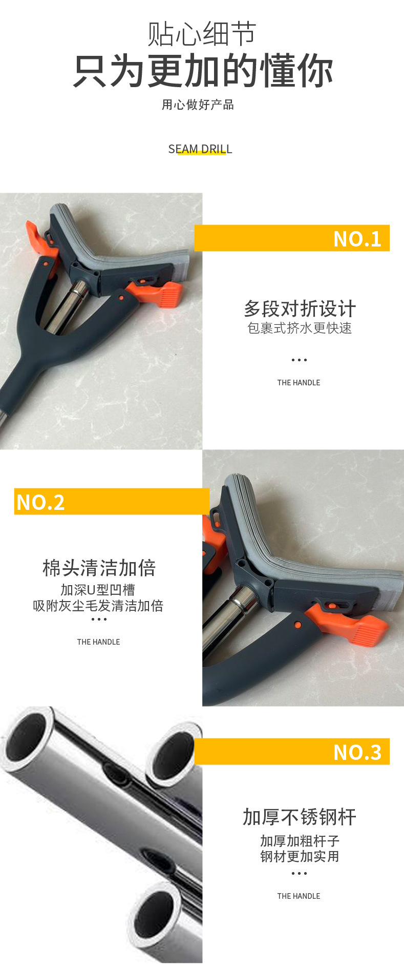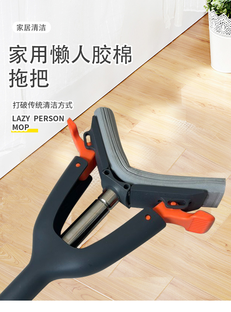海绵拖把免手洗滚轮式胶棉拖把加厚对折挤水拖把家用懒人胶棉拖把
