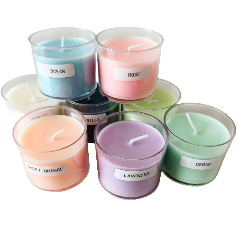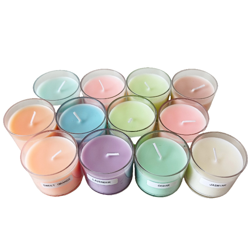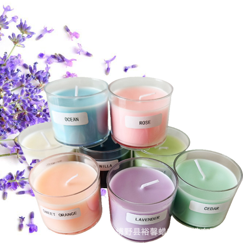气氛布置用品香薰蜡烛茶蜡透明塑胶壳蜡烛杯多种尺寸颜色香味可选