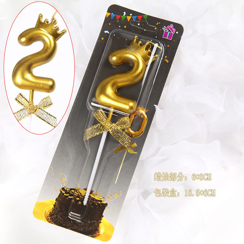 ins金色数字蜡烛皇冠蝴蝶结生日蛋糕0-9蜡烛周岁生日派对插件装扮
