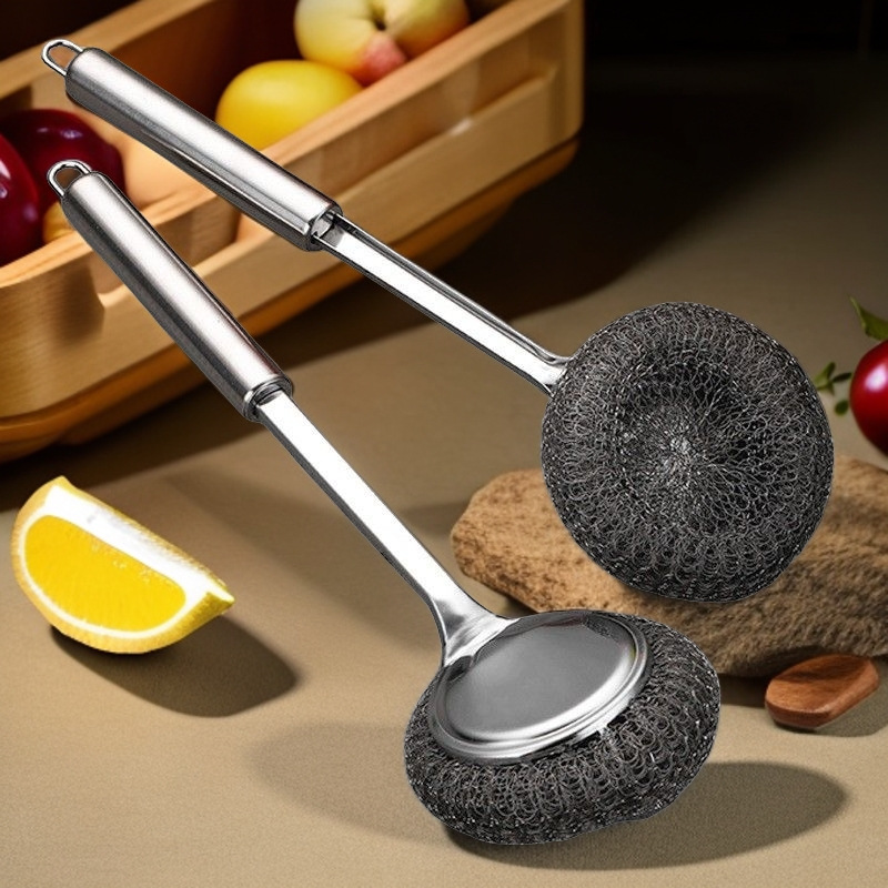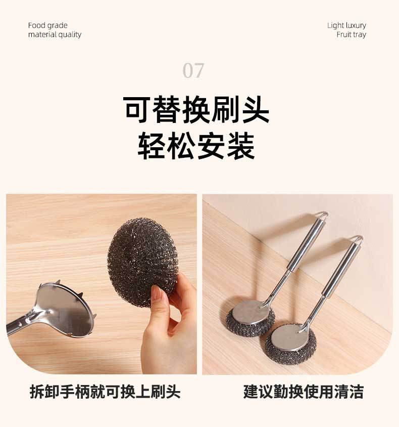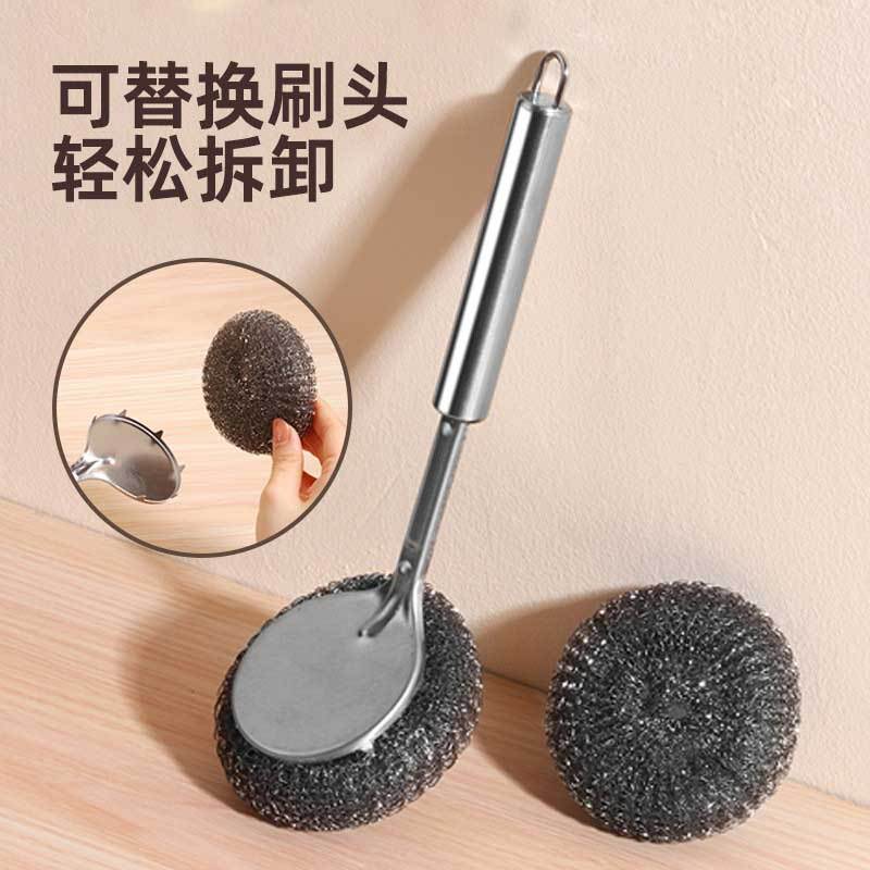 长柄不锈钢锅刷清洁刷钢丝球刷头厨房神器可挂式家用不锈钢洗锅刷