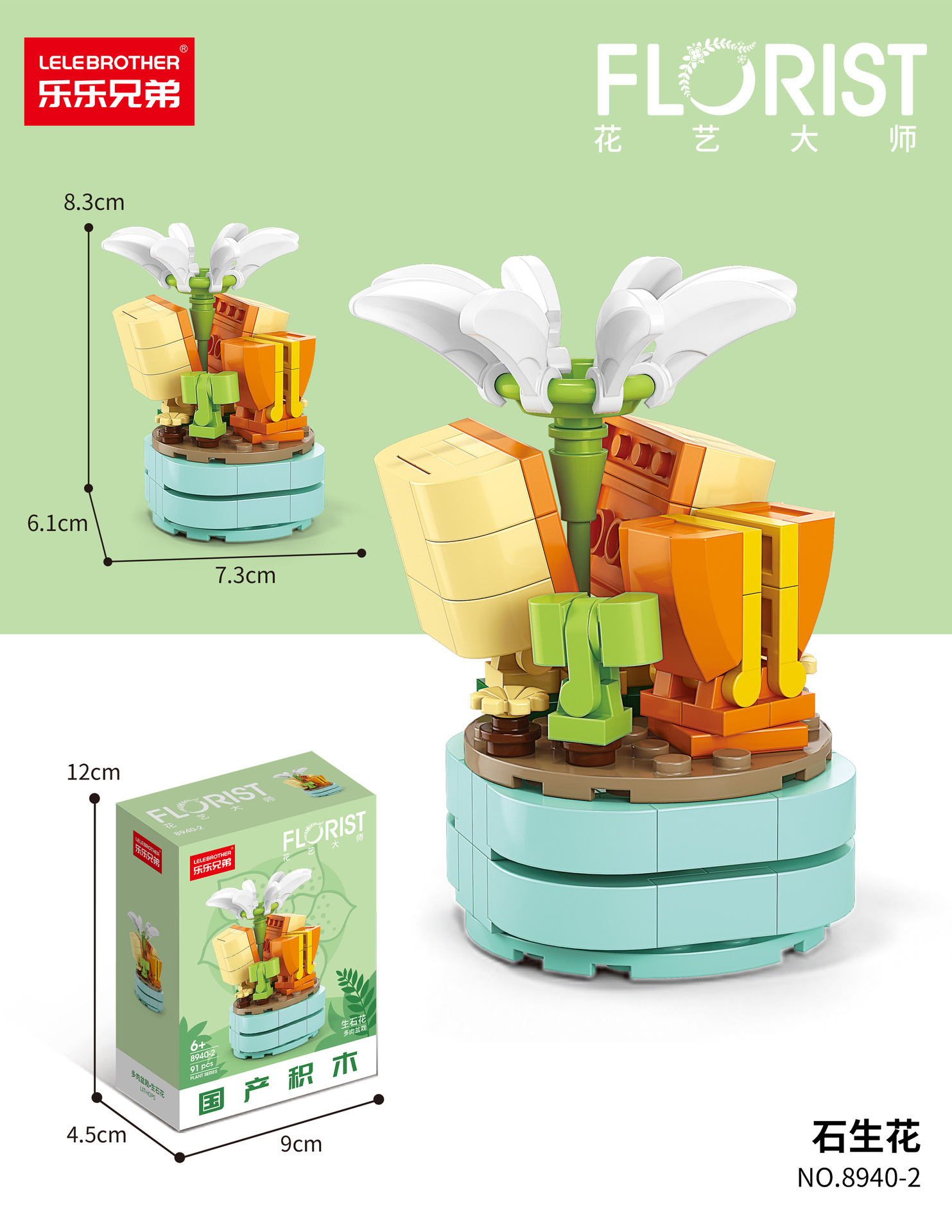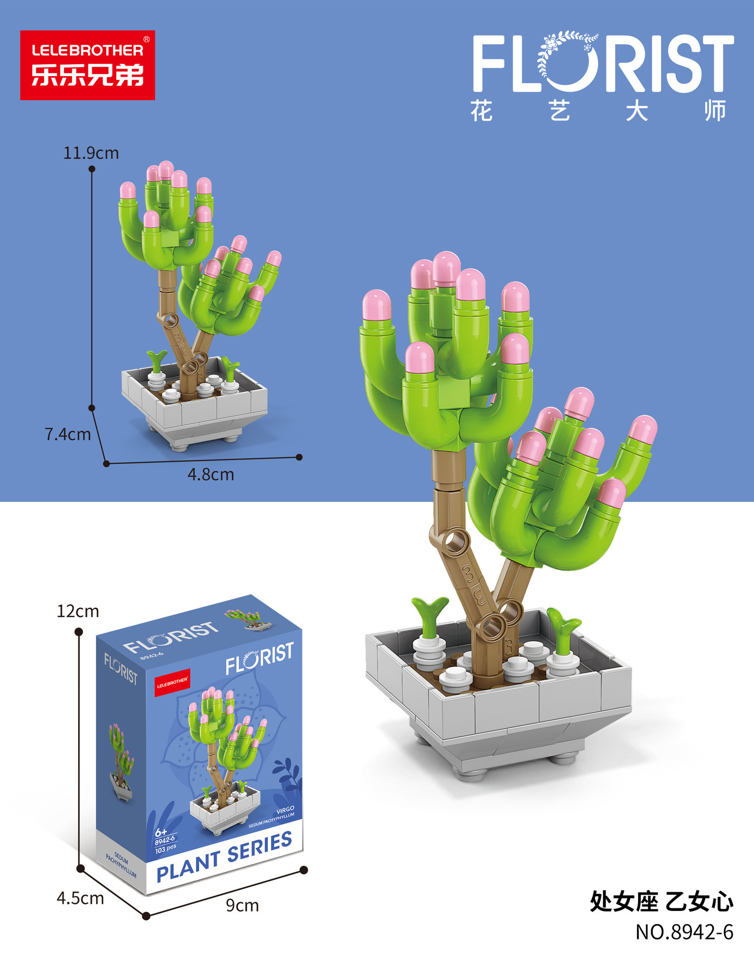 兼容乐高积木多肉手工花盆栽小颗粒儿童益智拼装桌面摆件模型礼物