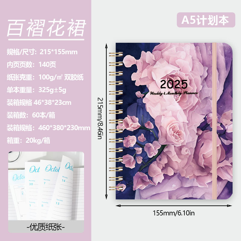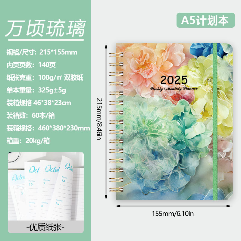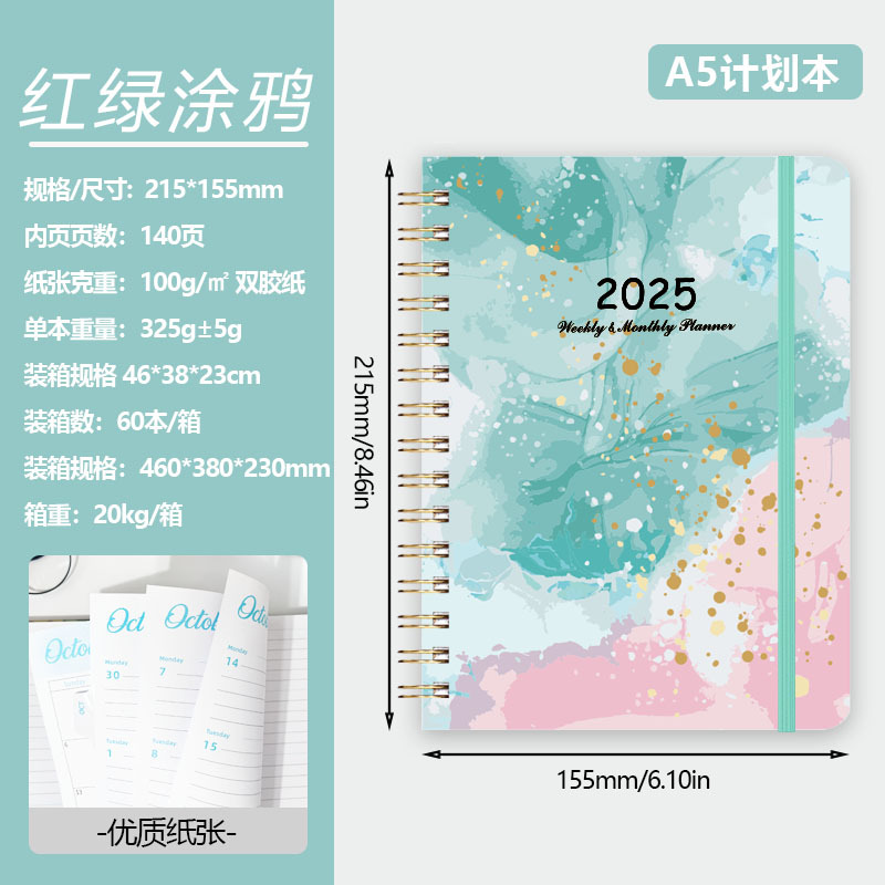 2025 notebook daily planner a5 coil notebook schedule book cross-border planner english version customization