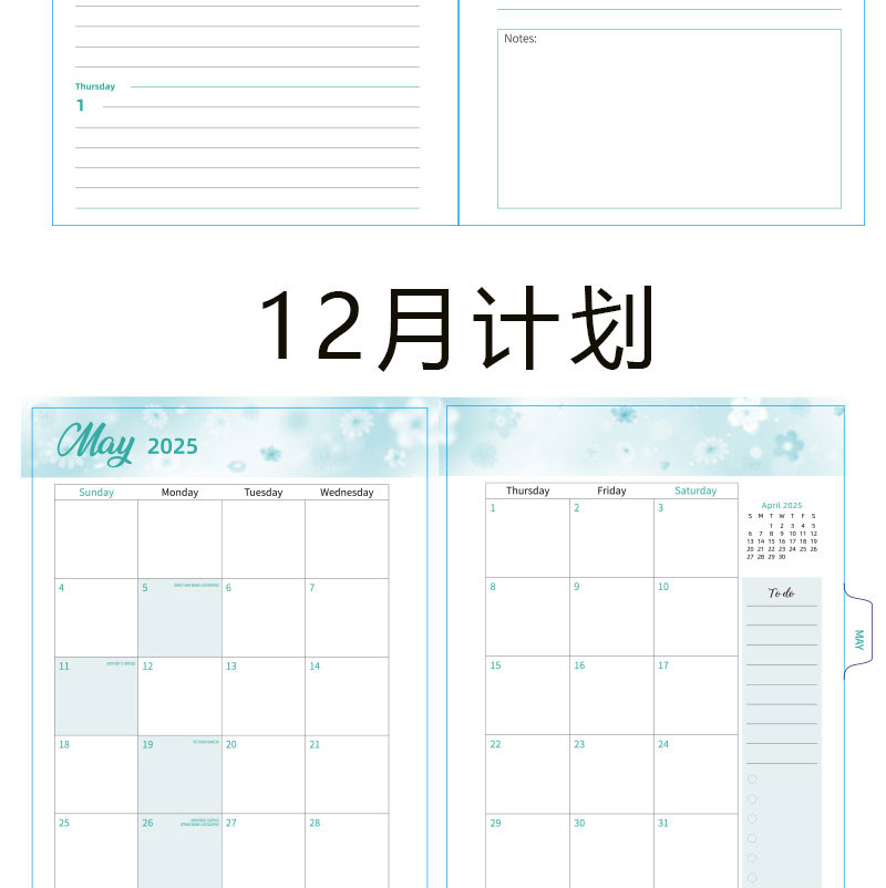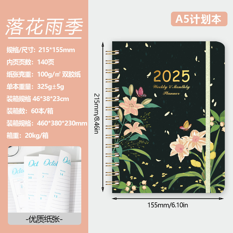 跨境2025周计划本日程本A5线圈笔记本日历本定制外贸本日程本批发