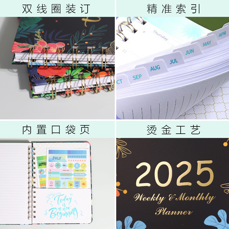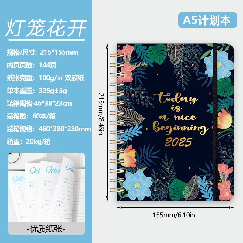 2025亚马逊日程本每日计划本A5笔记本跨境周记本绑带外贸线圈本子