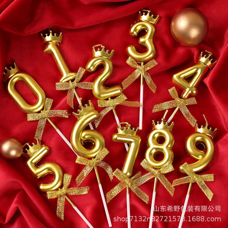 皇冠蝴蝶结数字蜡烛香槟金金银粉生日蛋糕0-9蜡烛插件甜品台装扮