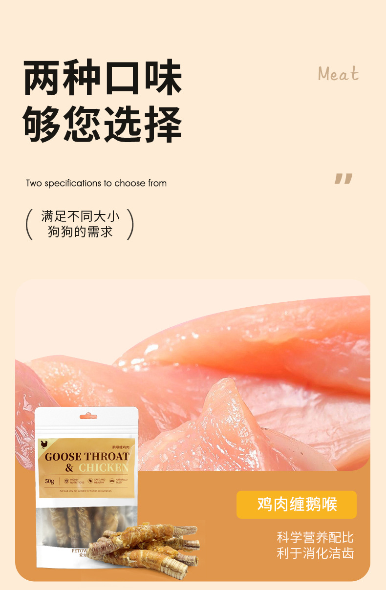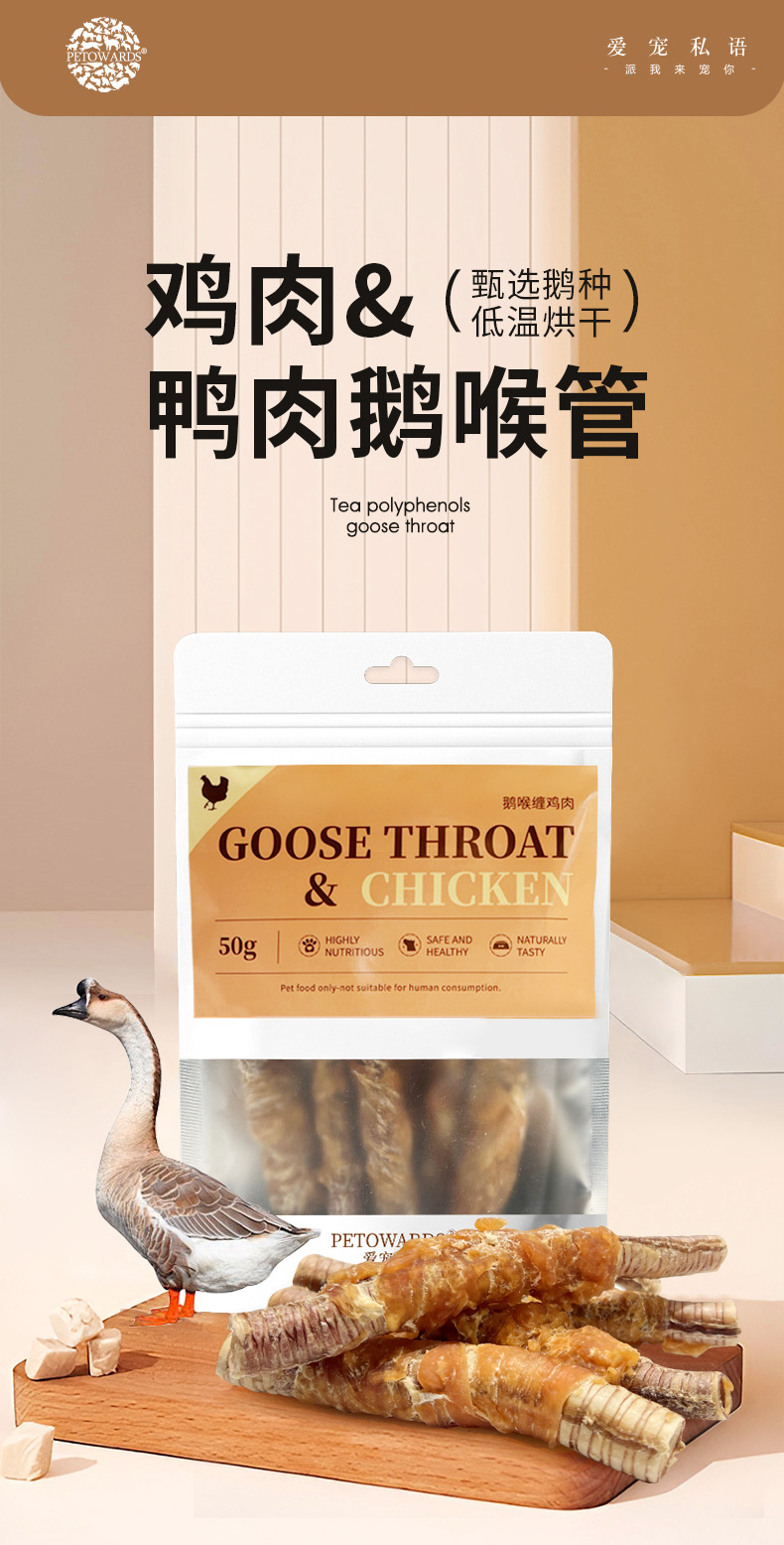 PETOWARDS爱宠私语狗零食鹅喉管低温烘干肉干训犬奖励宠物零食
