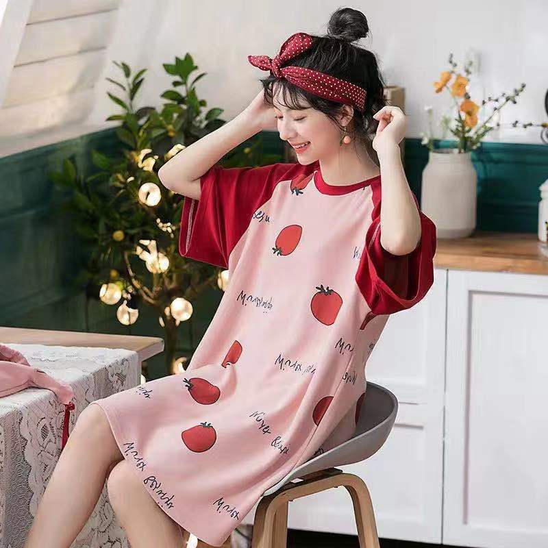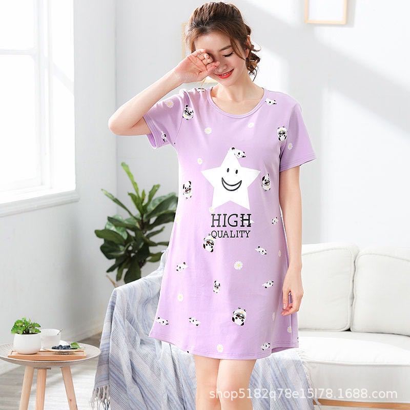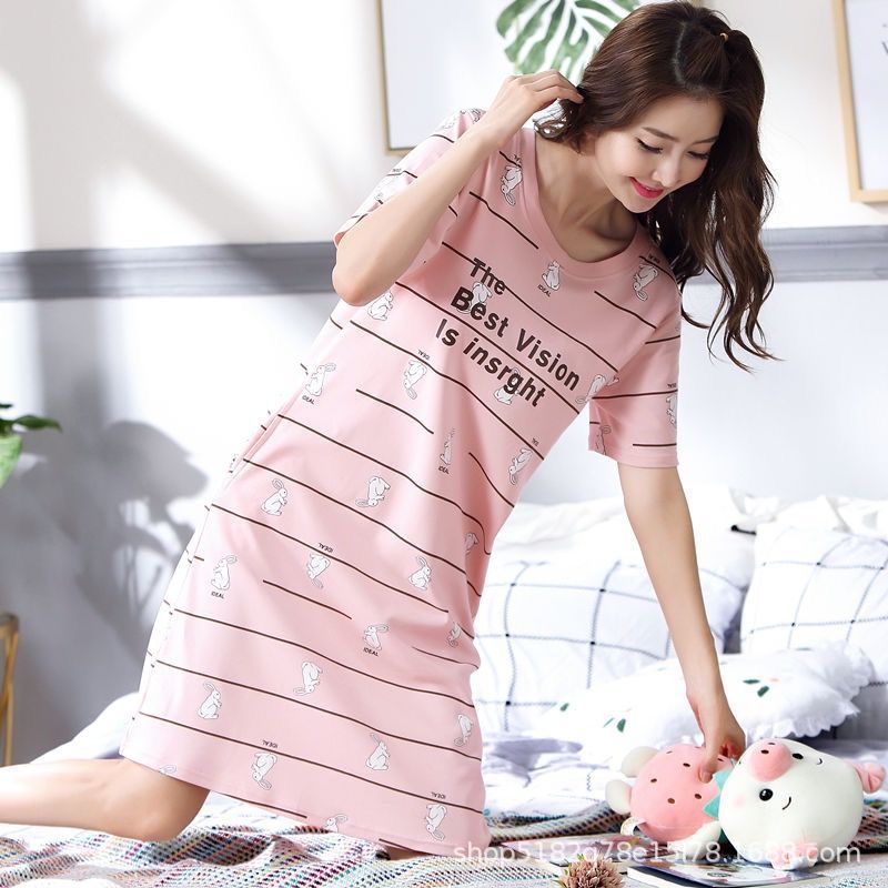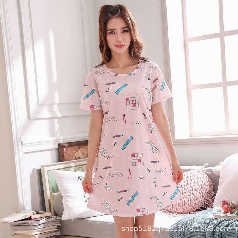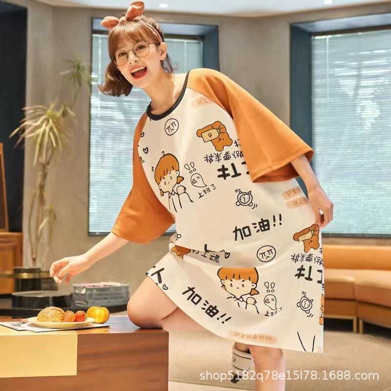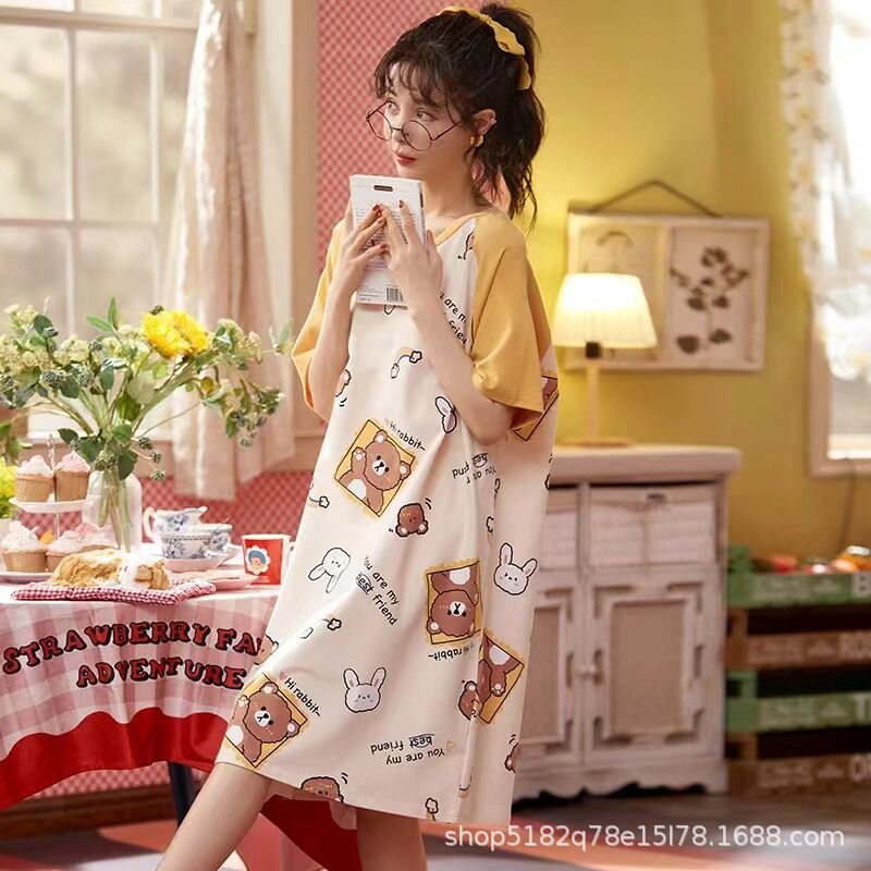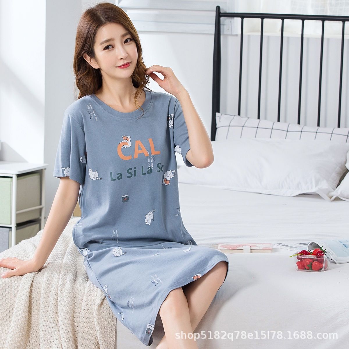睡裙女夏季可爱睡衣韩版短袖睡裙女中长款大码睡裙女士夏天家居服