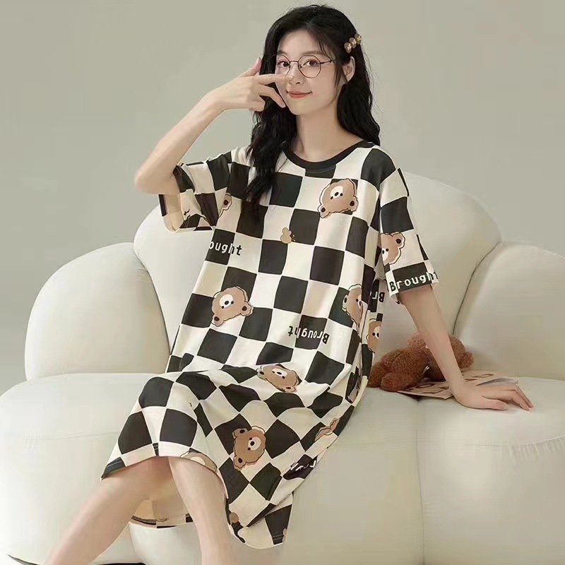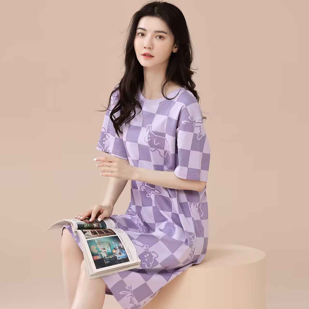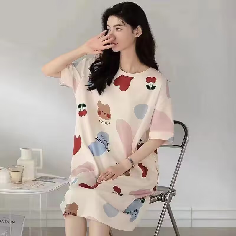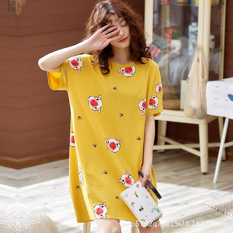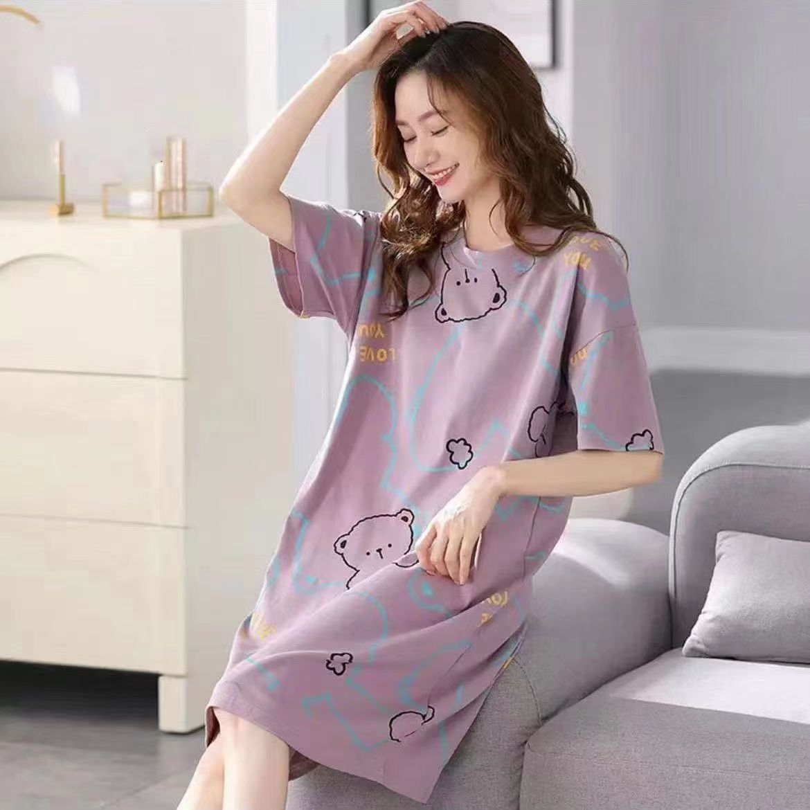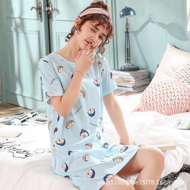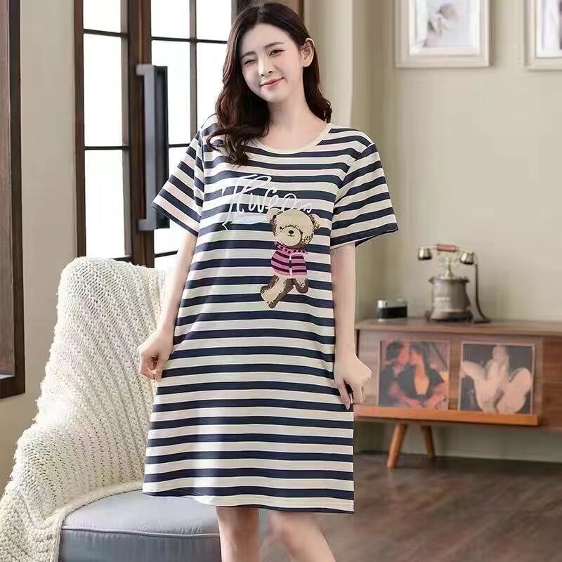 睡裙女夏季可爱睡衣韩版短袖睡裙女中长款大码睡裙女士夏天家居服