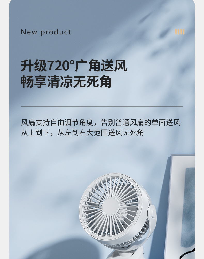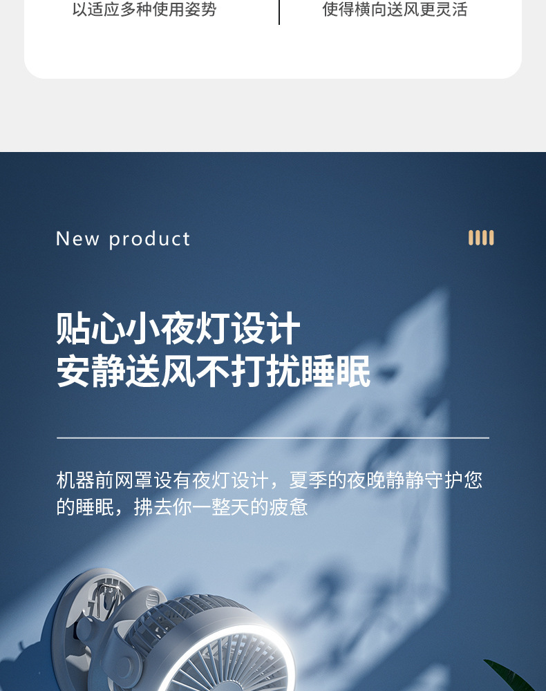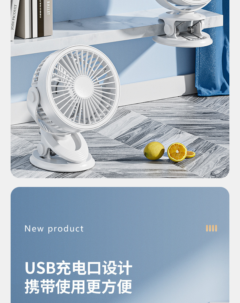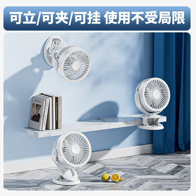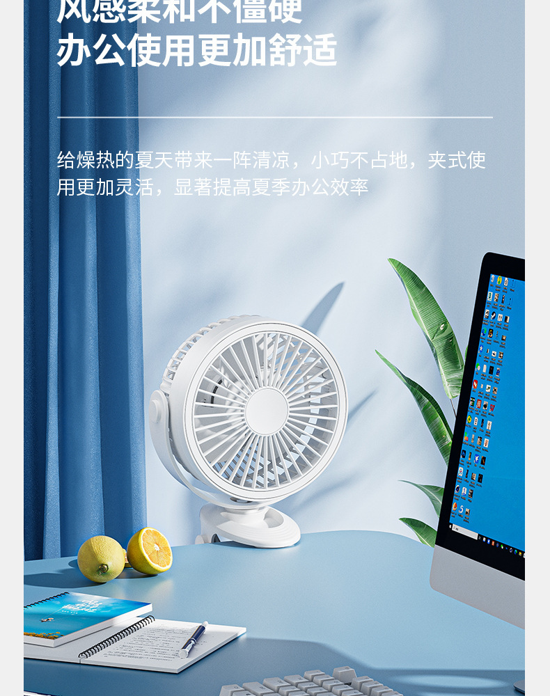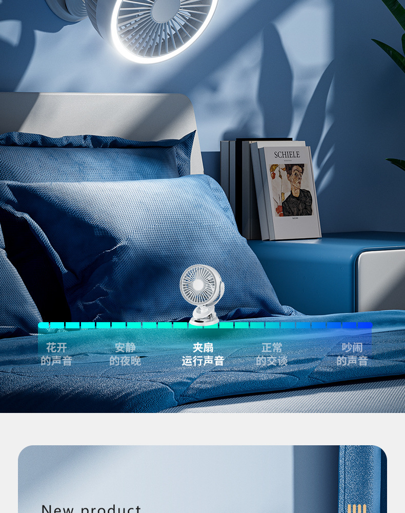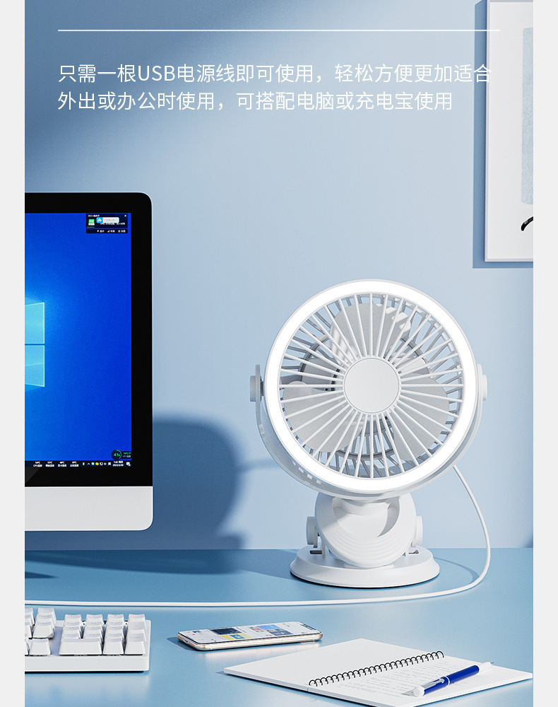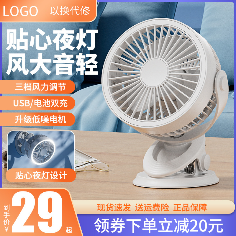 严选带夜灯大风力USB充电夹子台式电风扇户外露营桌面静音小风扇