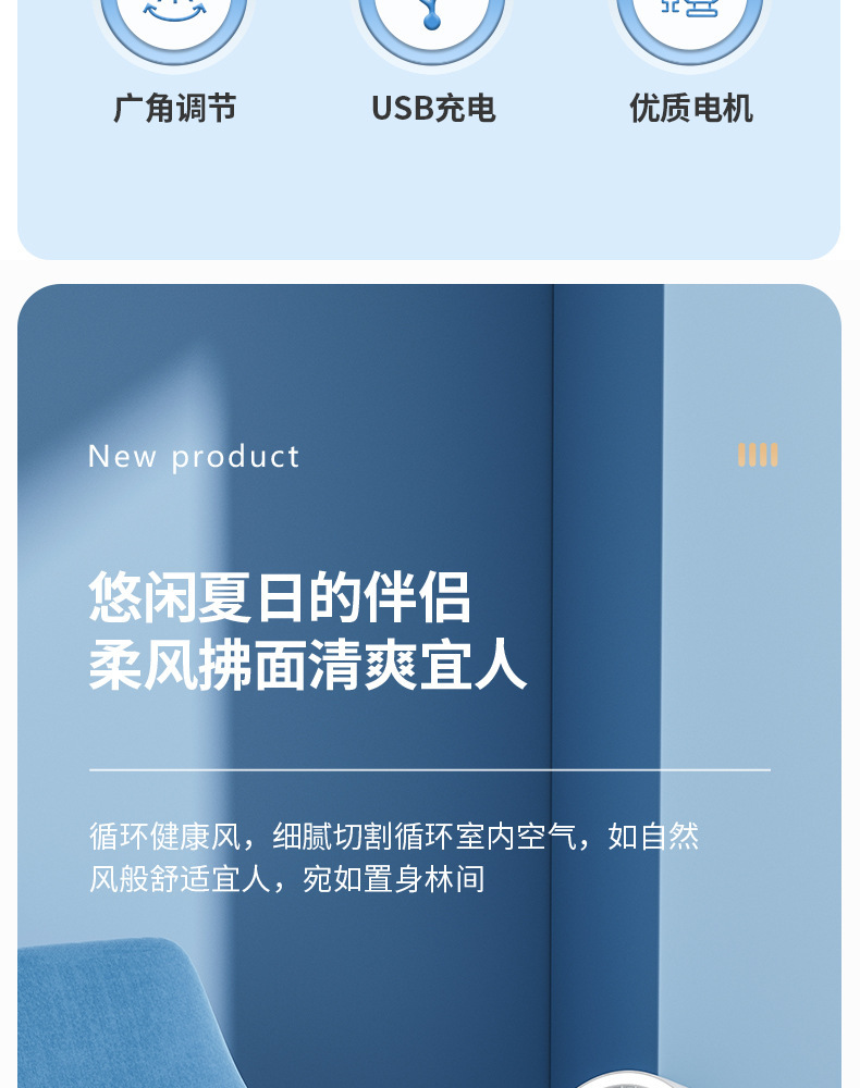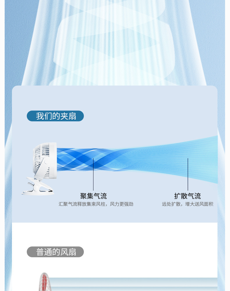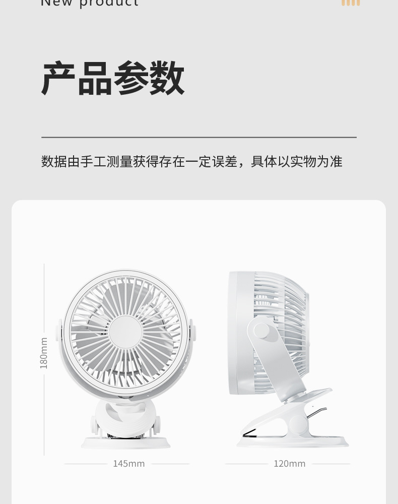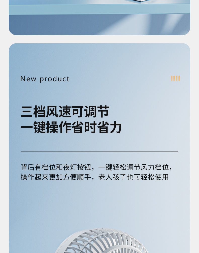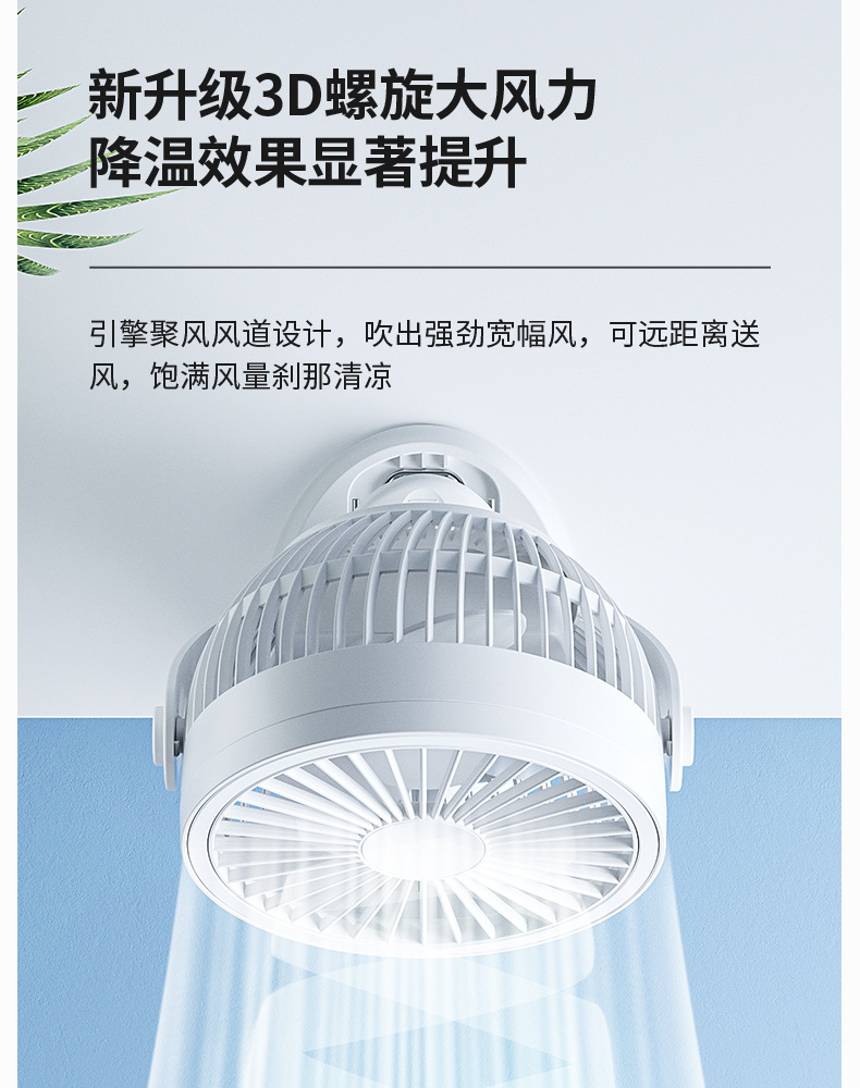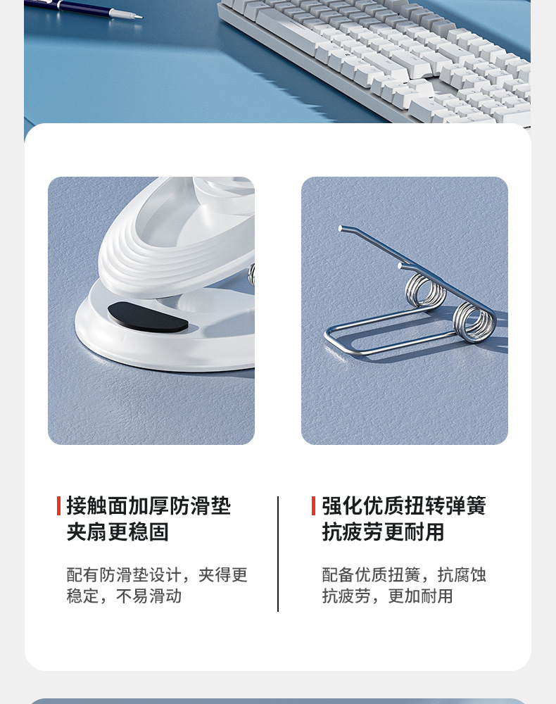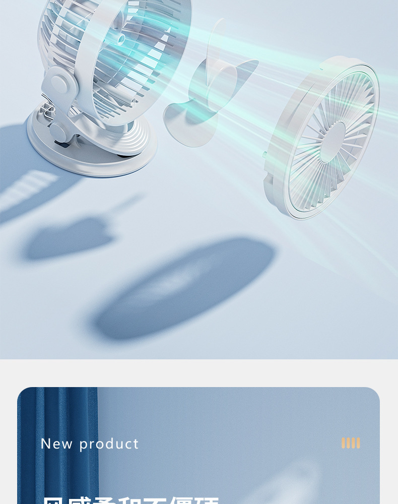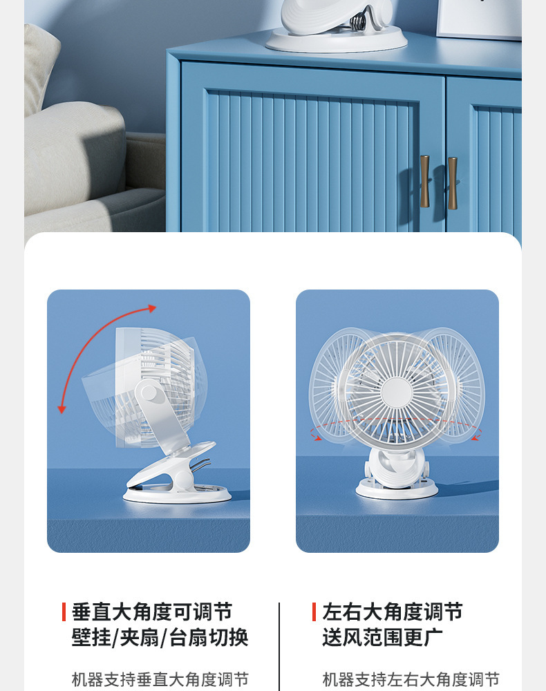 严选带夜灯大风力USB充电夹子台式电风扇户外露营桌面静音小风扇