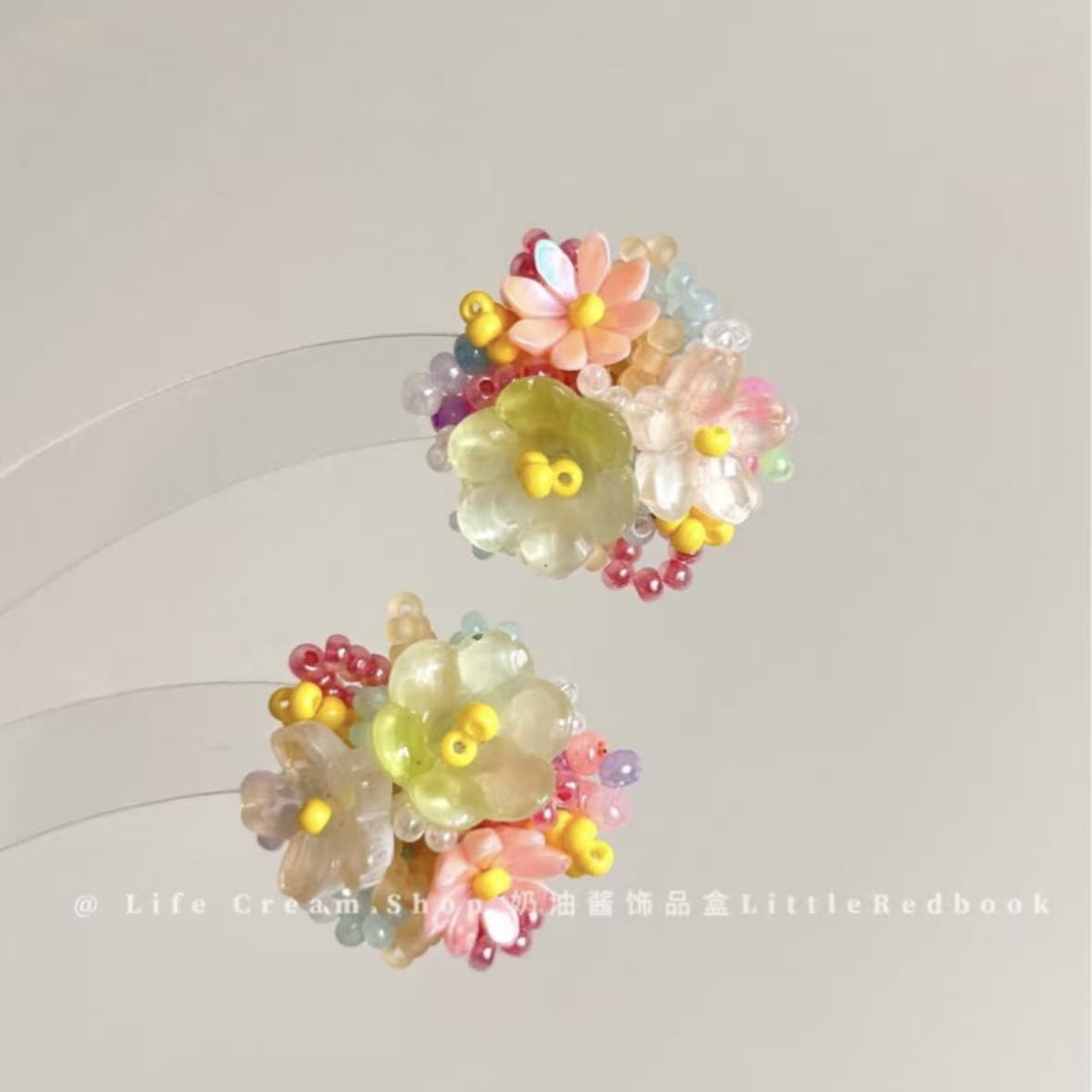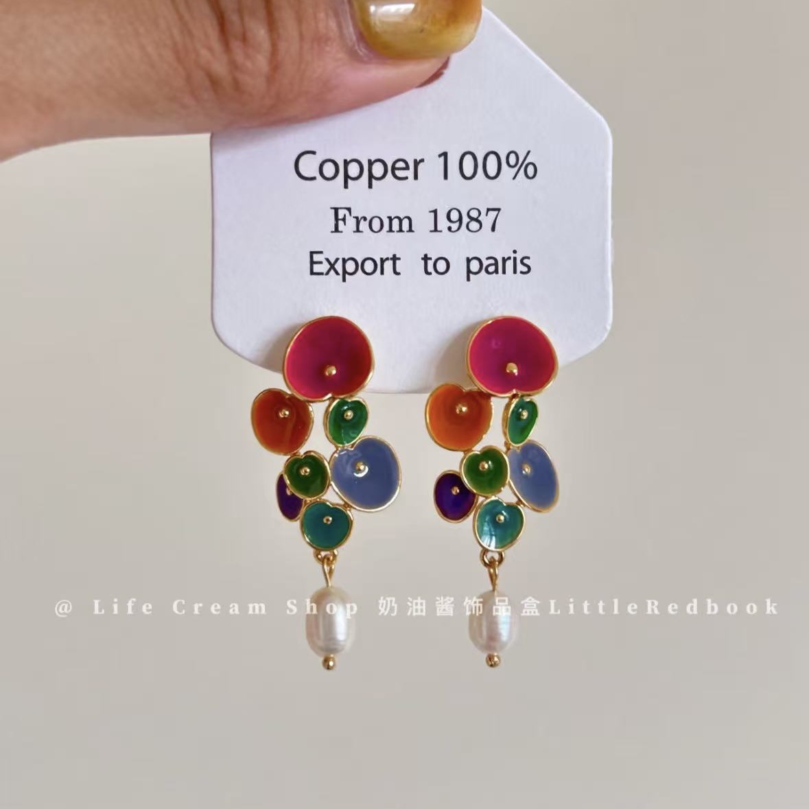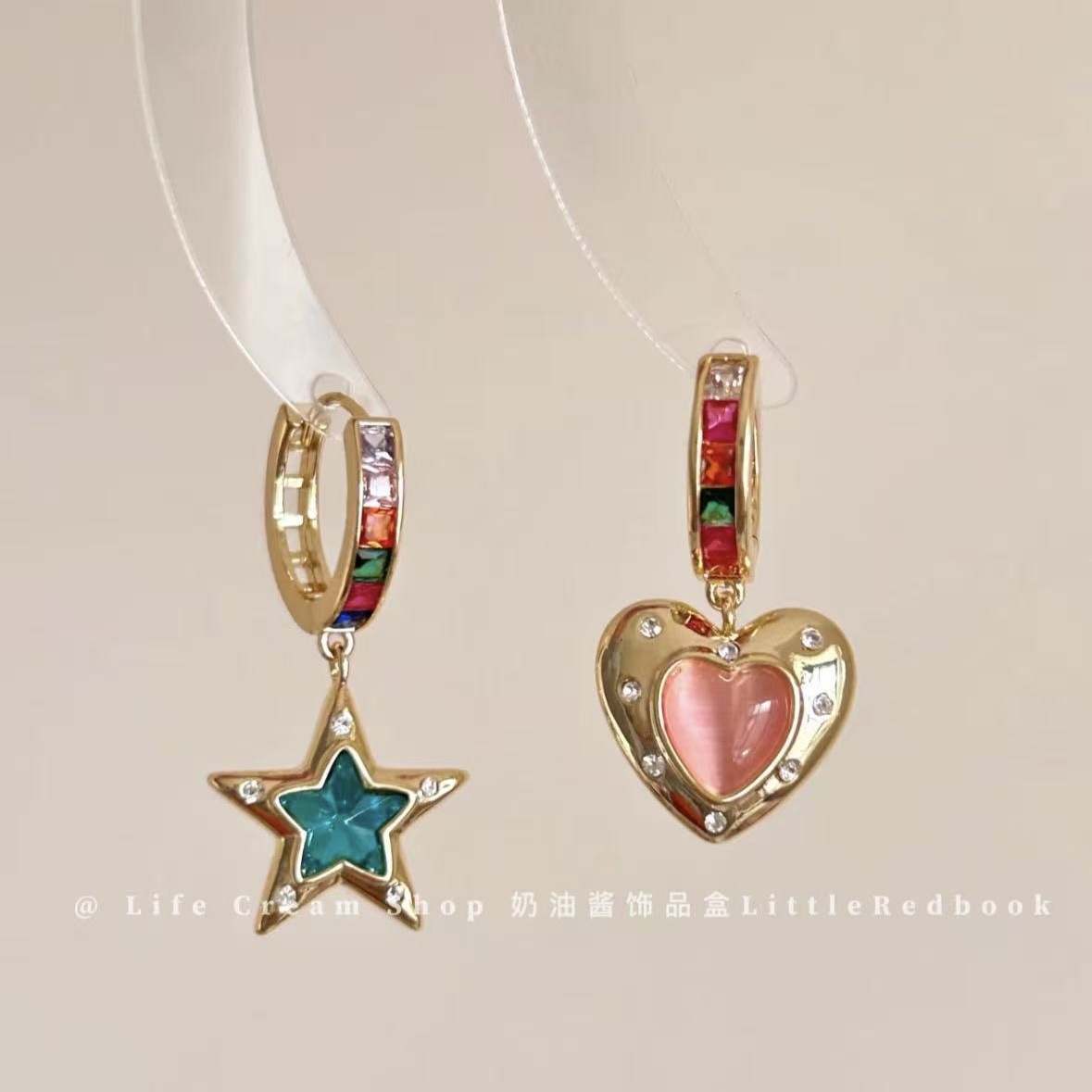 复古彩色花朵星星耳环小众设计感ins简约时尚不对称百搭气质耳环