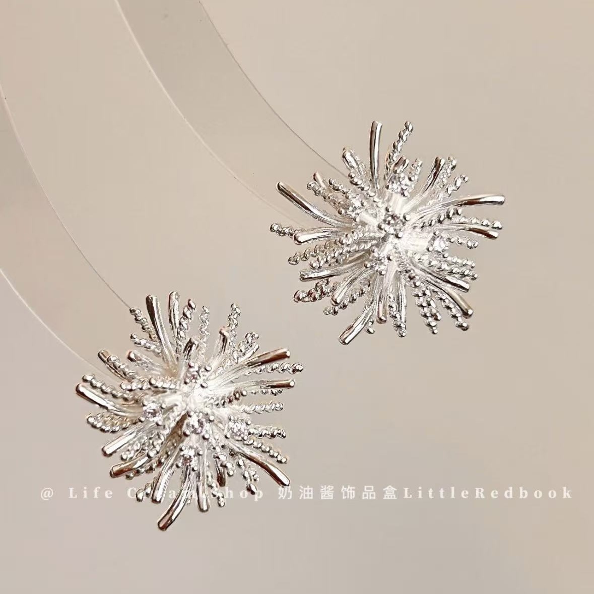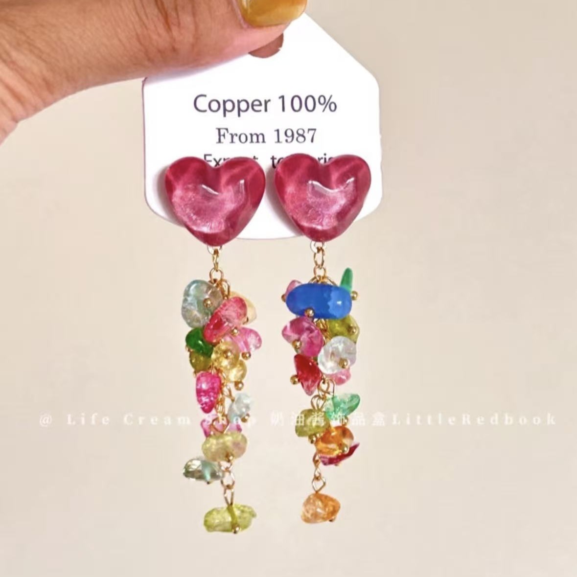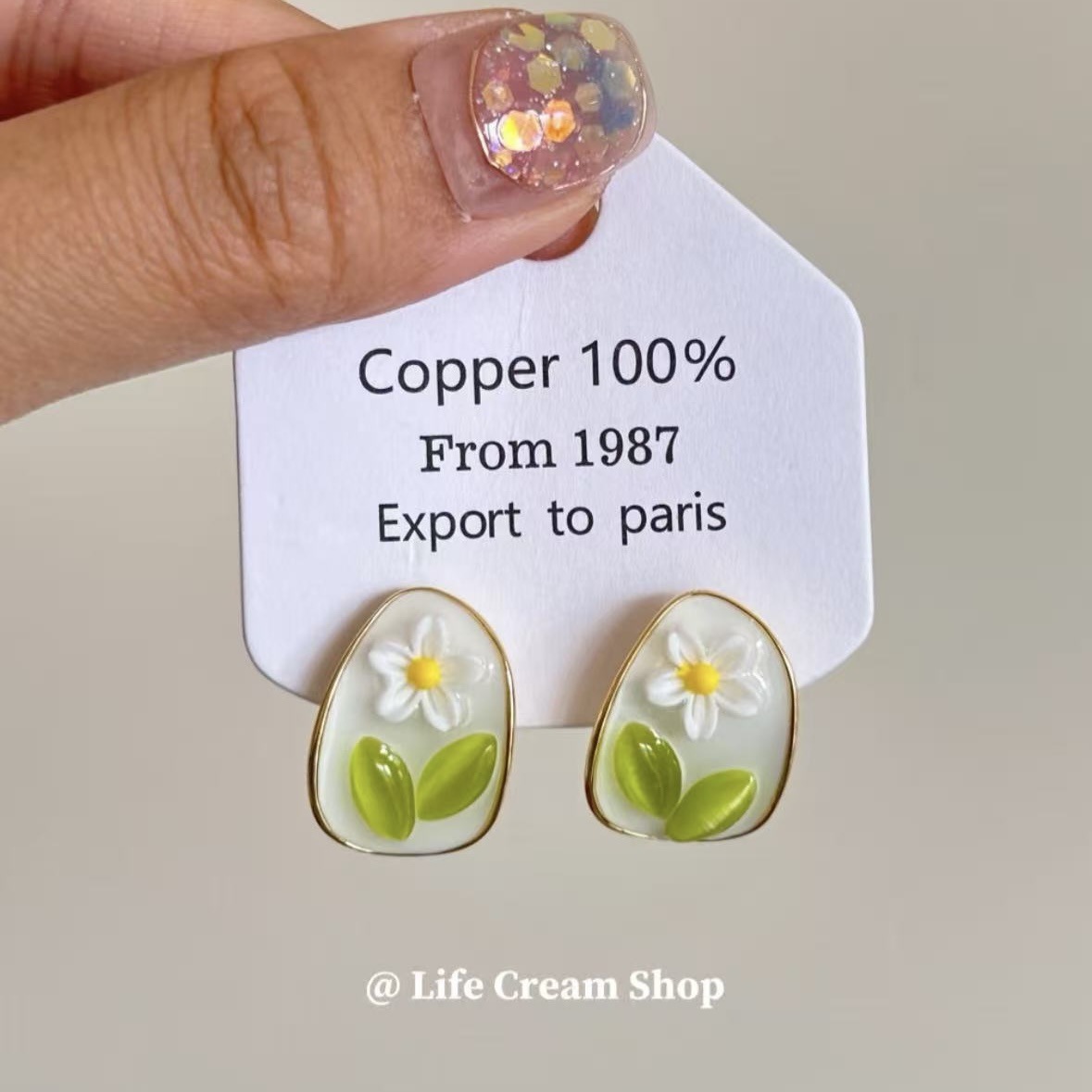 复古彩色花朵星星耳环小众设计感ins简约时尚不对称百搭气质耳环
