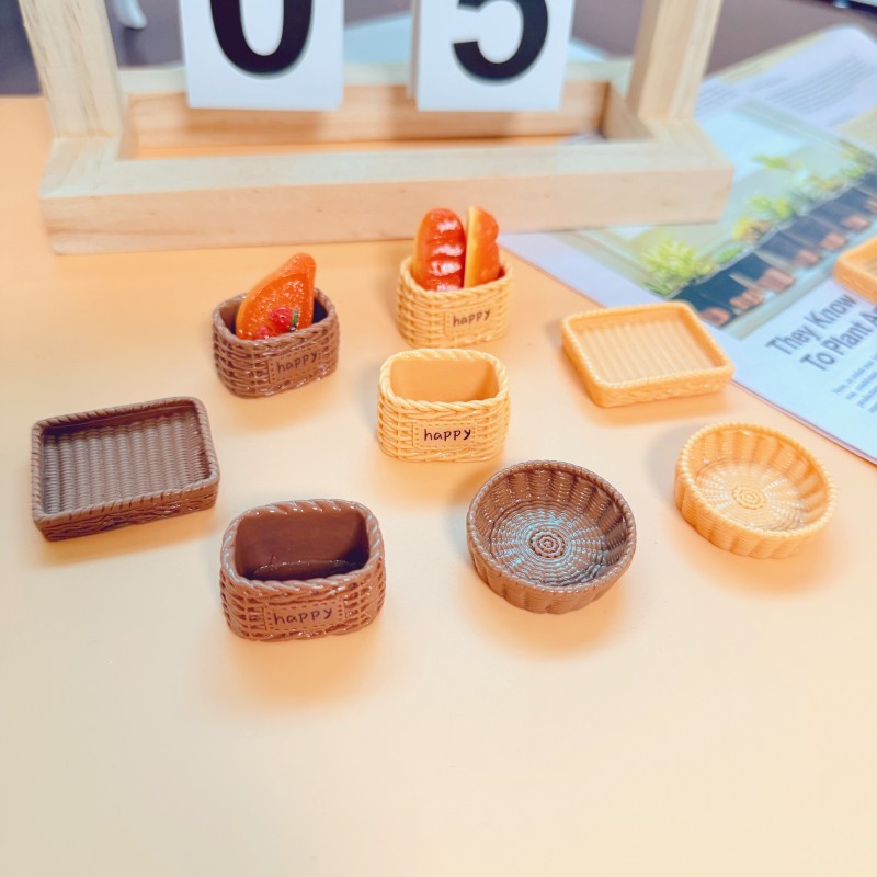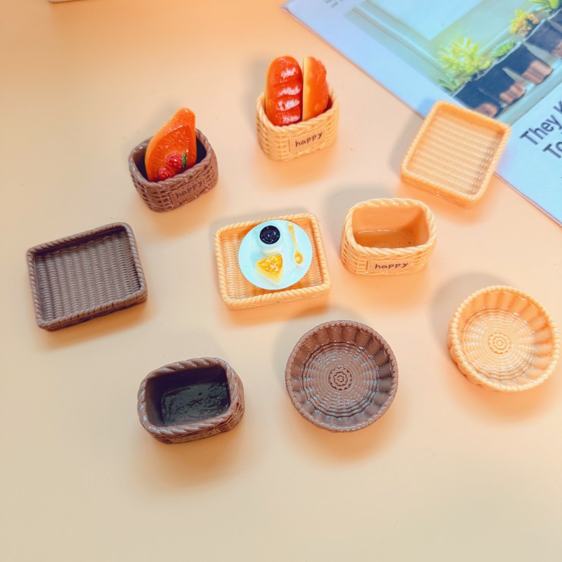 立体仿真迷你面包筐小竹篮面包托盘树脂配件diy创意微缩食玩摆件
