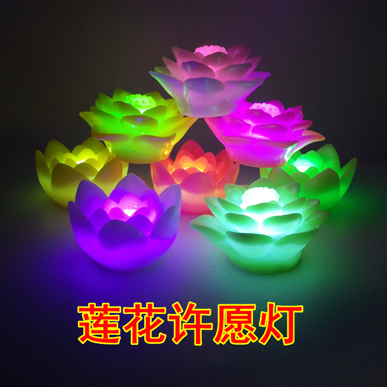 七彩许愿电子莲花灯 led荷花灯传灯供灯用品