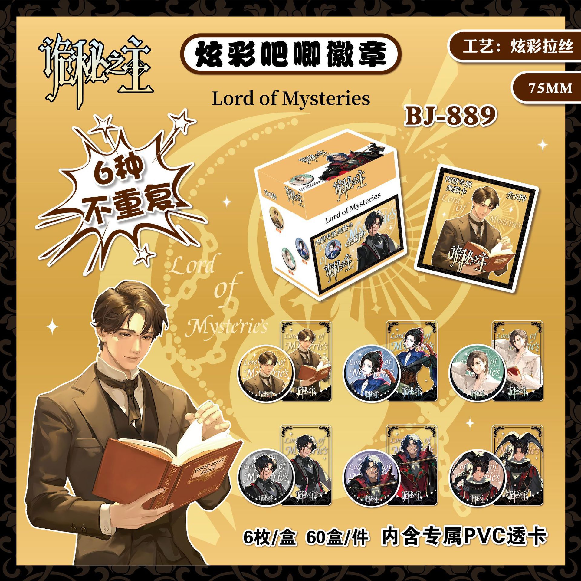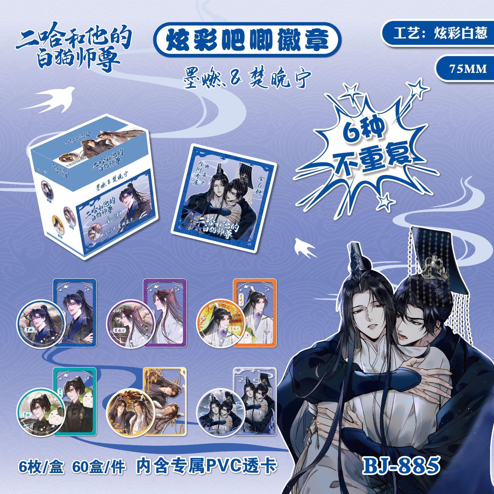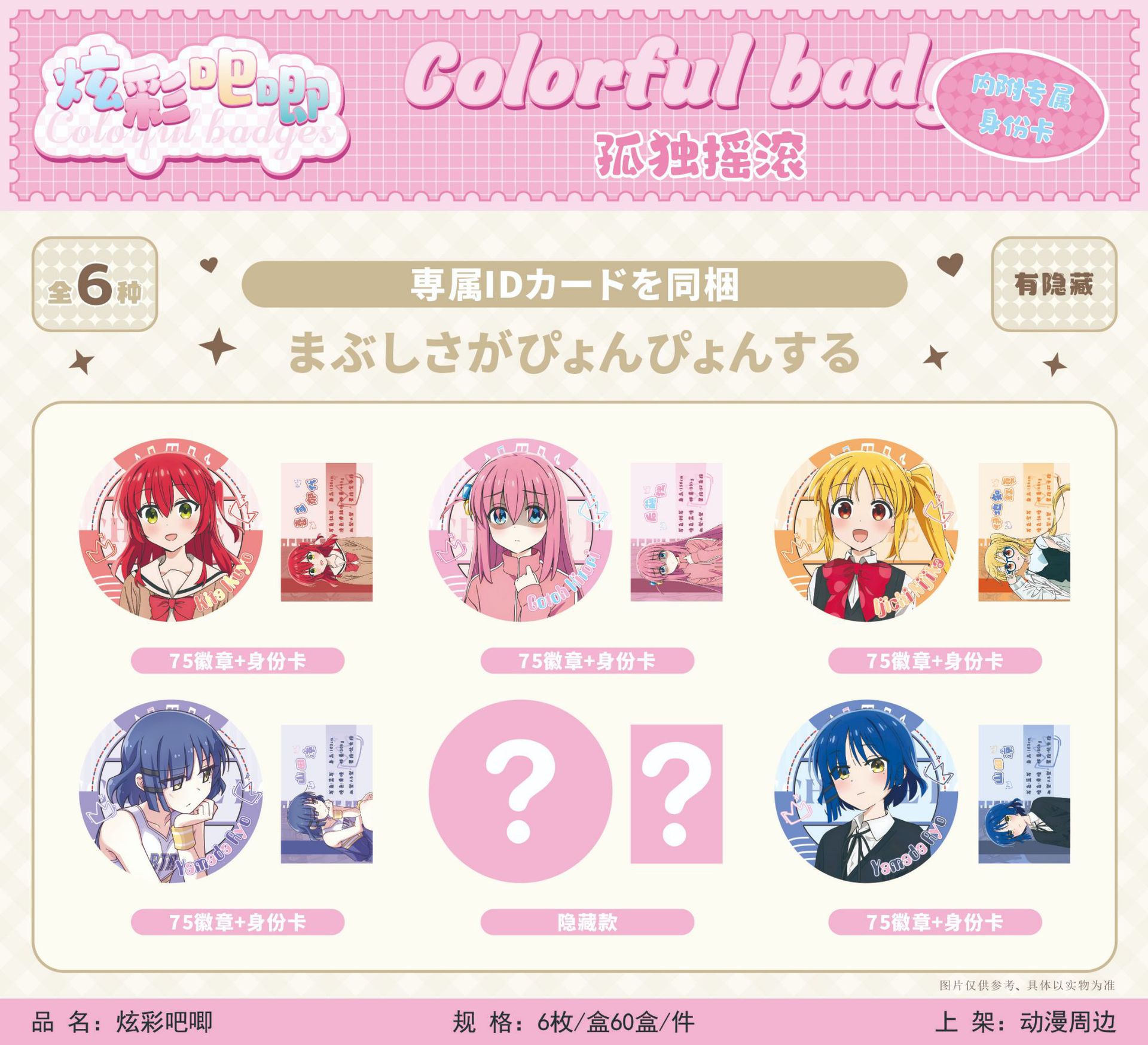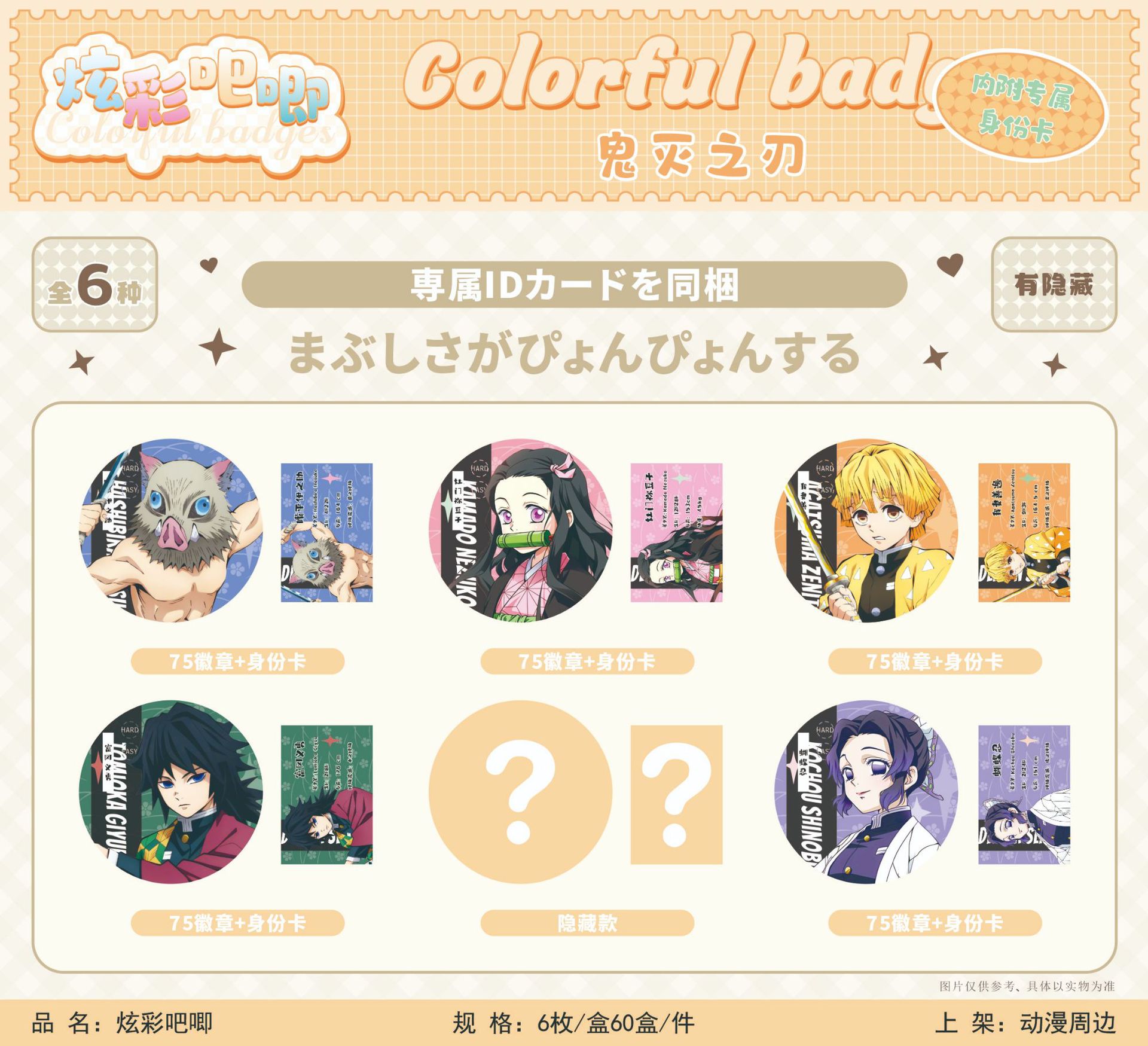 新款二次元吧唧徽章盲袋75mm6个入吧唧徽章含卡片谷子周边吧唧