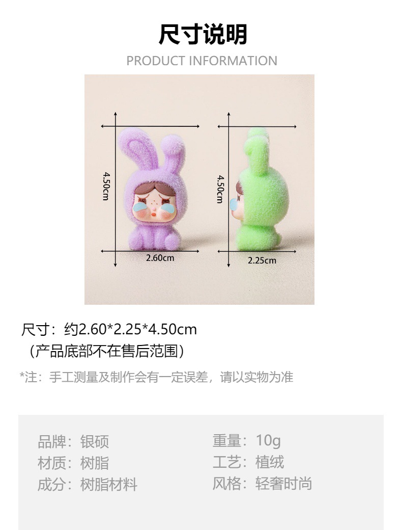 植绒兔子哭娃 diy装饰品树脂钥匙扣萌粒挂件潮玩公仔玩具桌面摆件