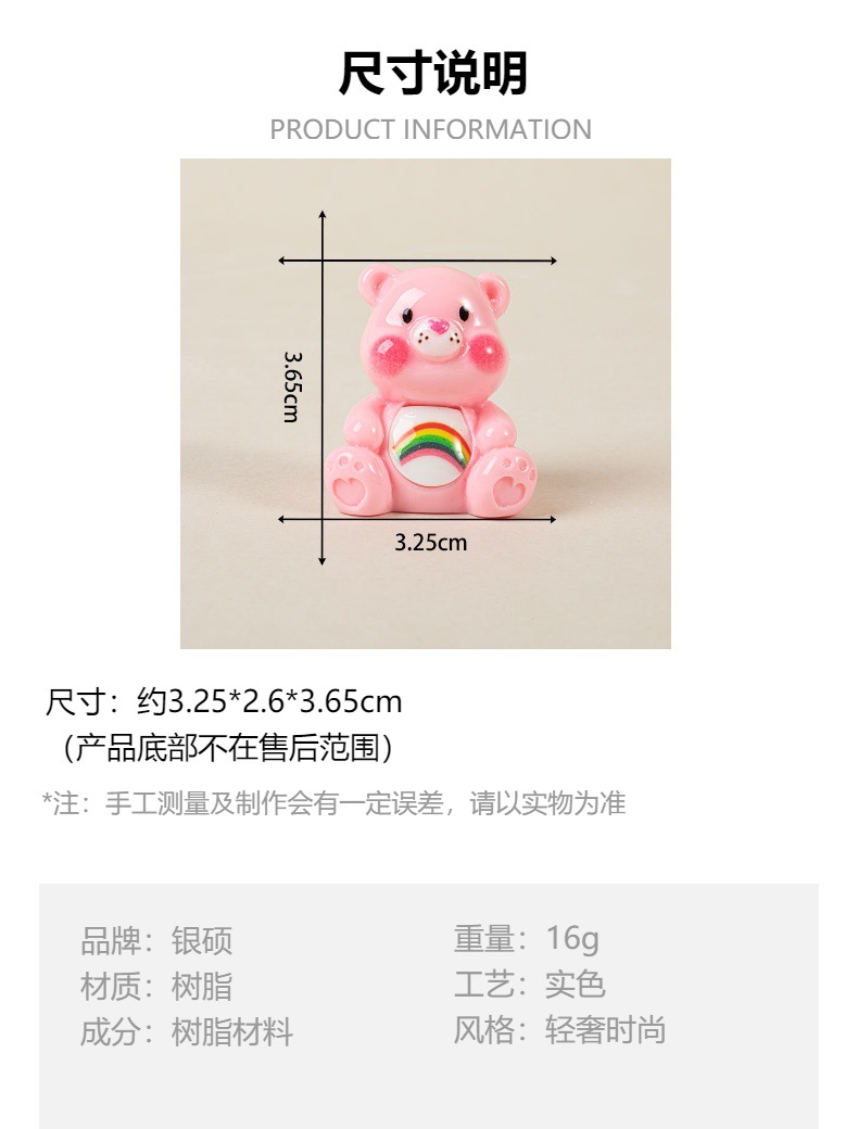 立体卡通实色彩虹小熊 diy树脂手工配件钥匙扣车载小摆件包挂批发