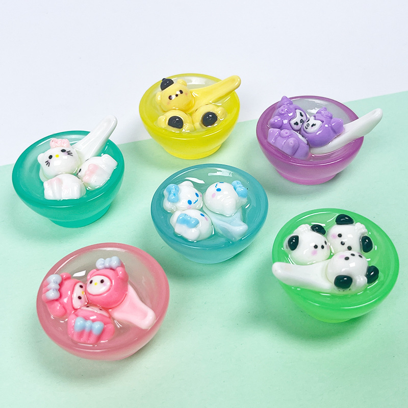 卡通夜光汤圆碗 diy饰品奶油胶可爱钥匙扣挂件过家家玩具摆件批发
