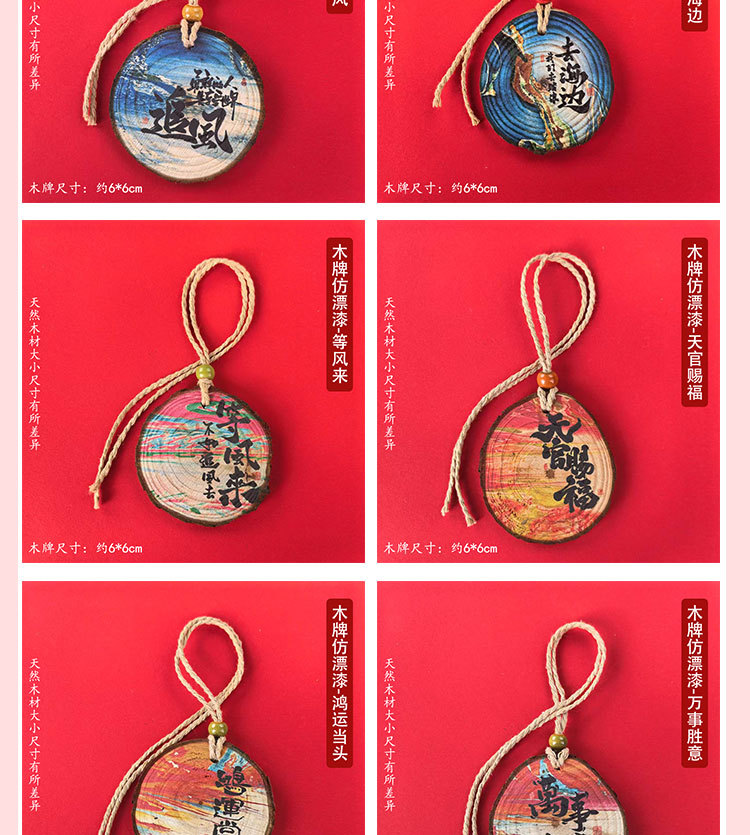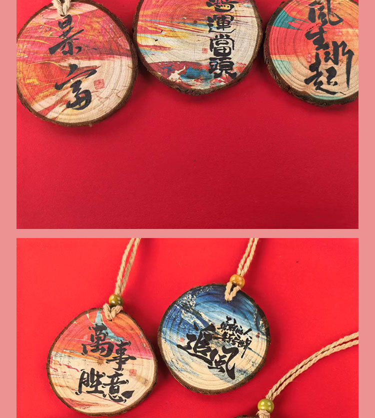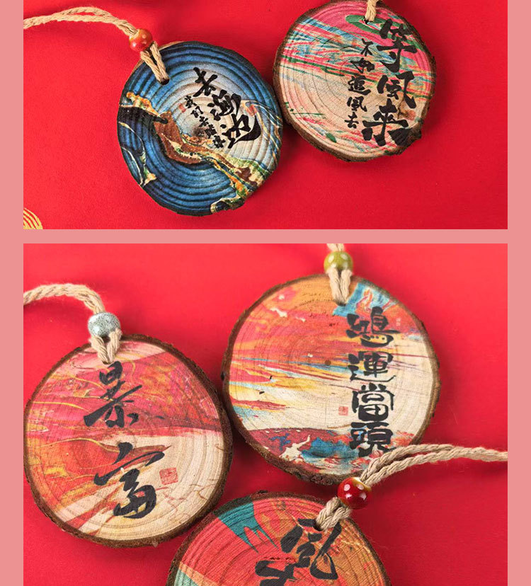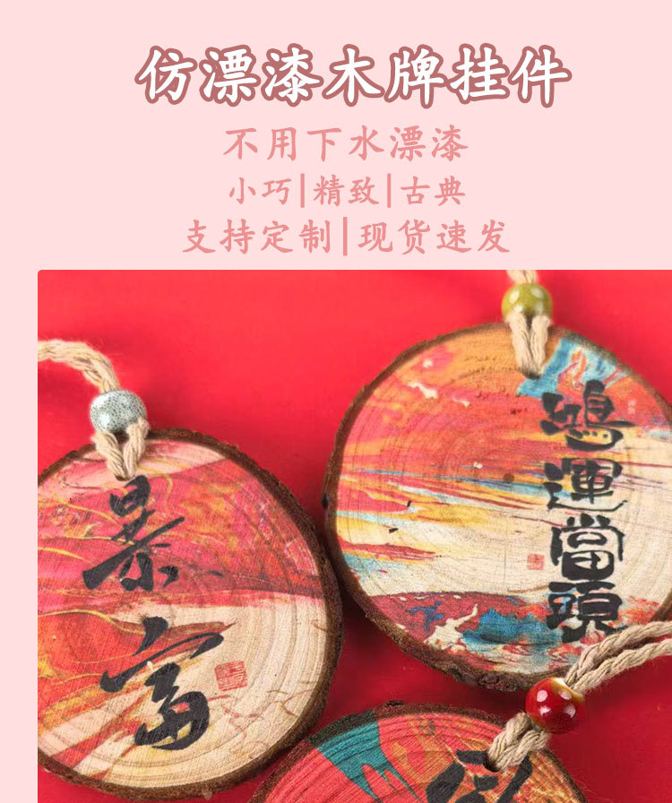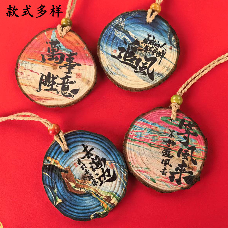 仿漂漆书法年轮木牌挂件景区寺庙祈福挂牌各种活动送人小礼品挂饰