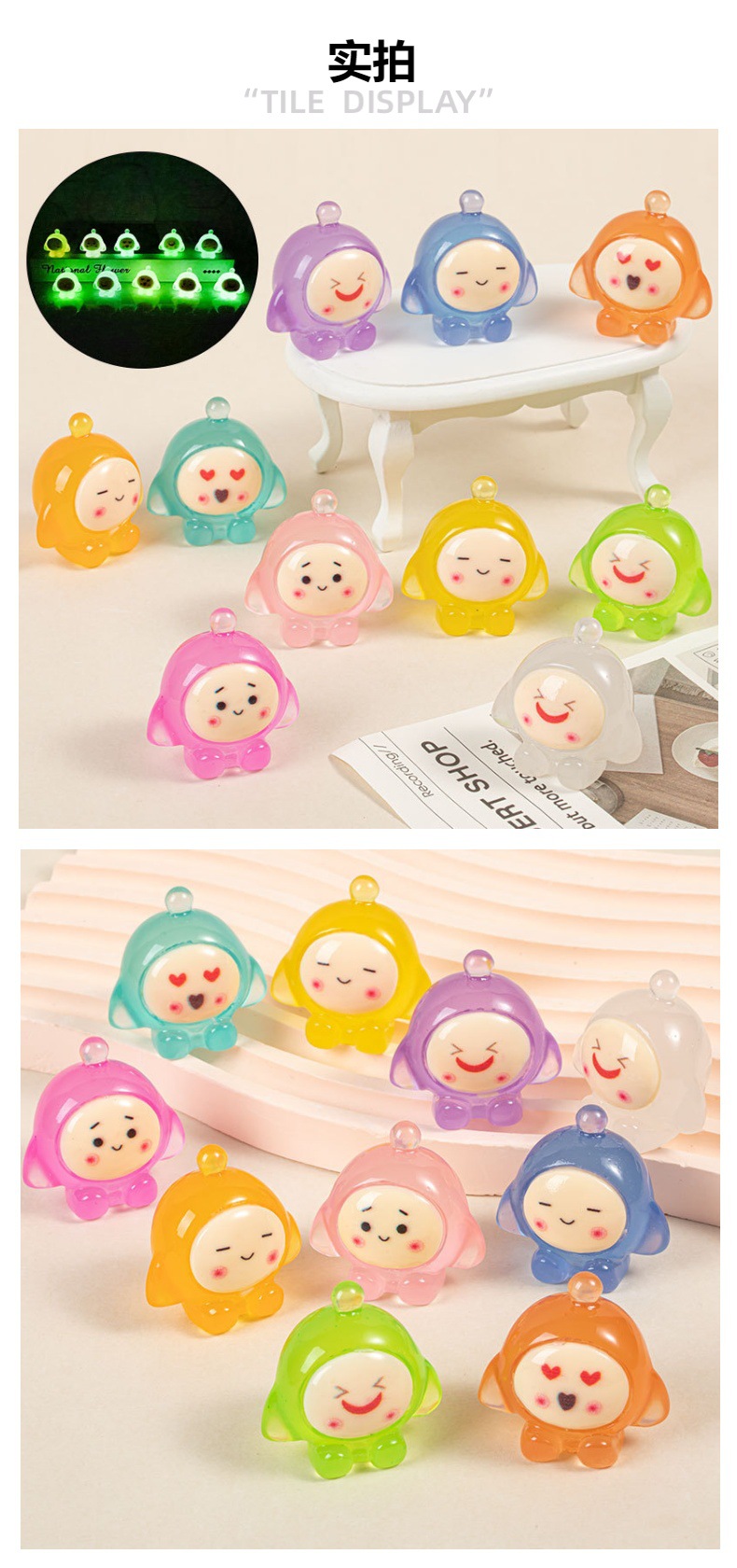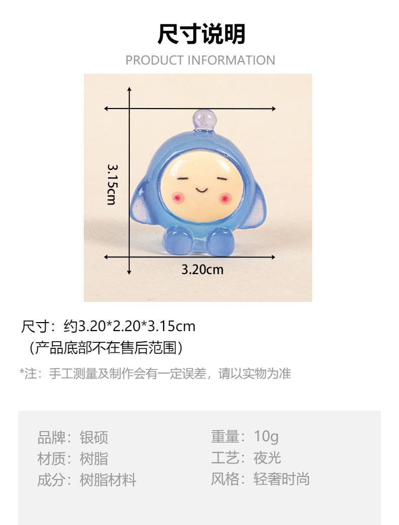 夜光卡通表情蛋仔派对 diy饰品配件奶油胶树脂钥匙扣挂件车载摆件