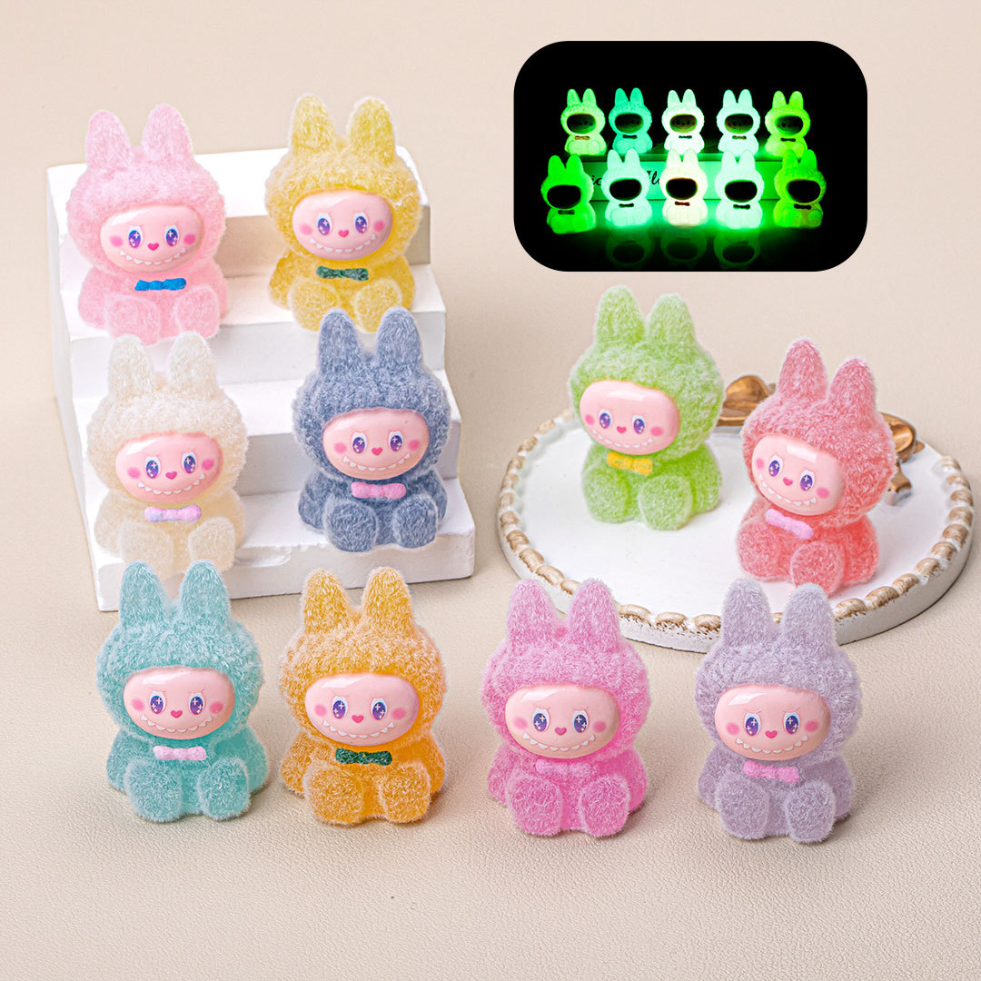 夜光植绒布布 diy装饰品兔子可爱萌粒树脂挂件桌面小摆件盲盒盲袋