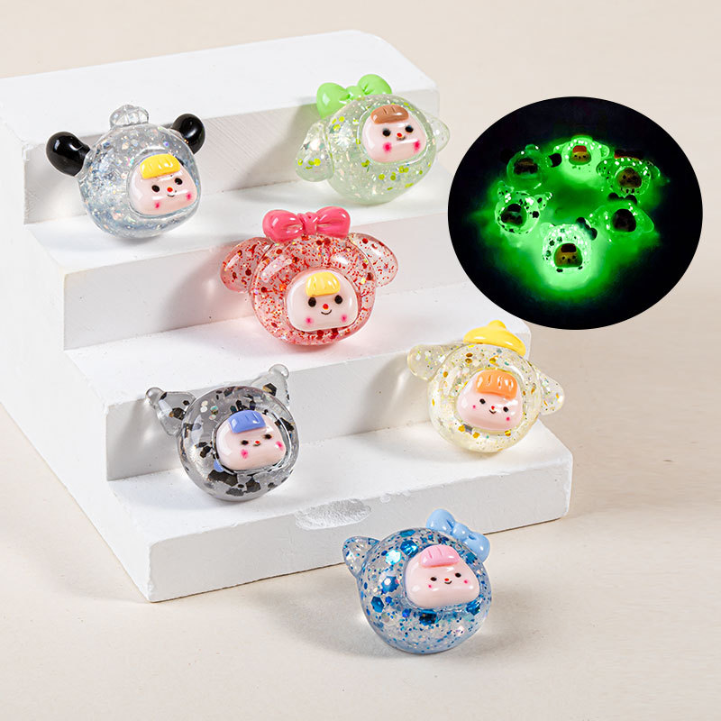 夜光亮片圆滚滚多妹 diy饰品树脂配件车摆挂件桌面钥匙扣盲盒批发