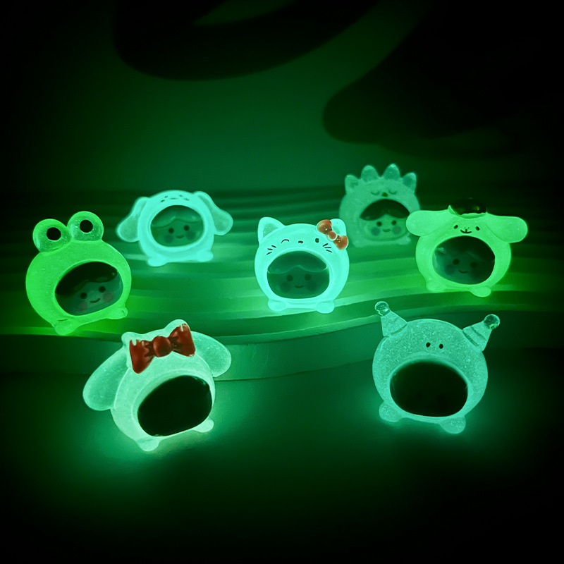 夜光卡通可爱圆滚滚 diy饰品树脂配件微缩摆件手办公仔钥匙扣挂件