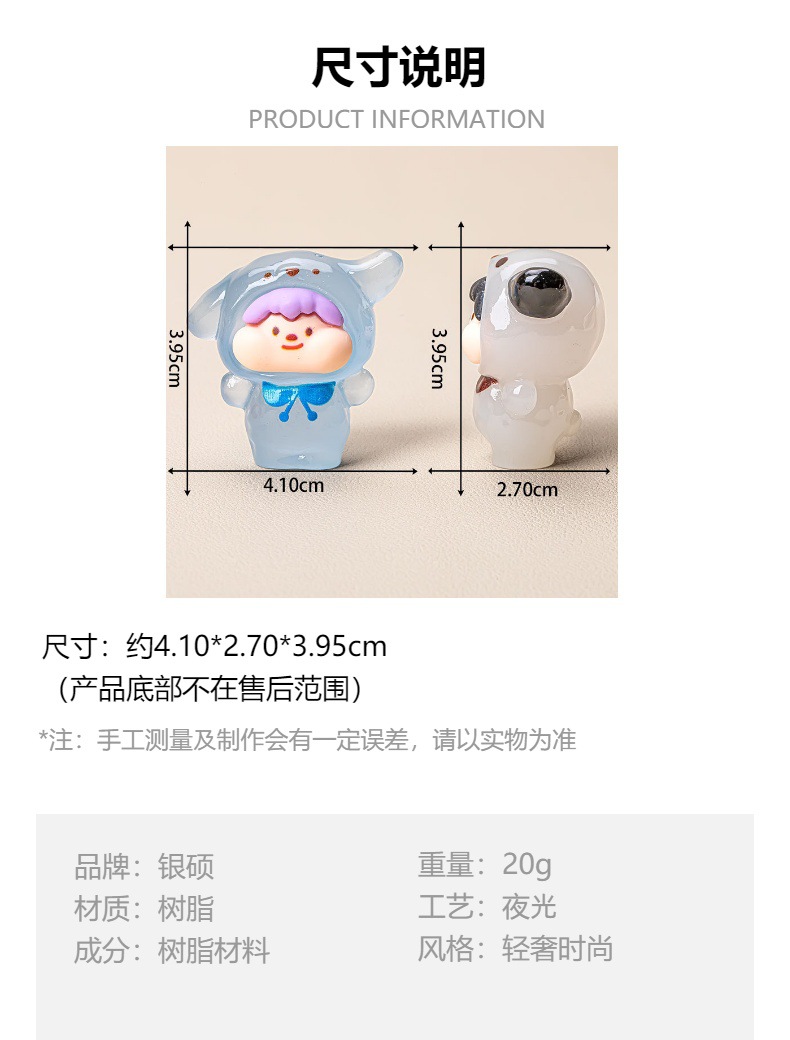 夜光棉花狗 萌粒diy饰品奶油胶树脂配件车载钥匙扣挂饰桌面小摆件
