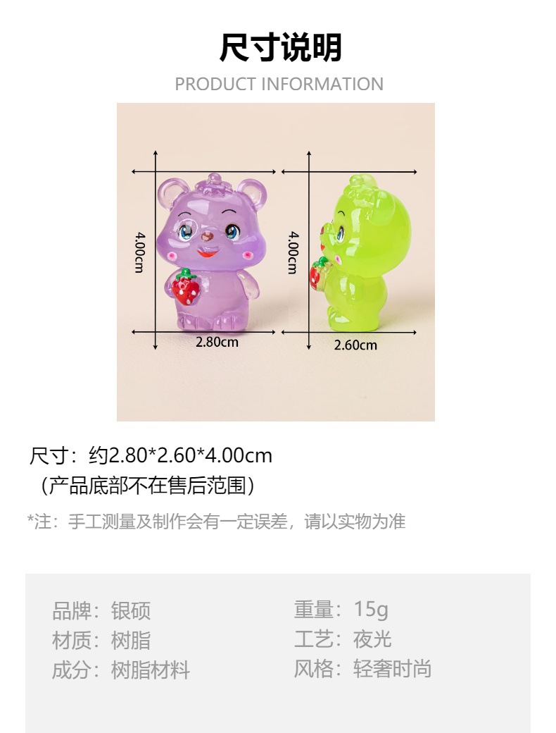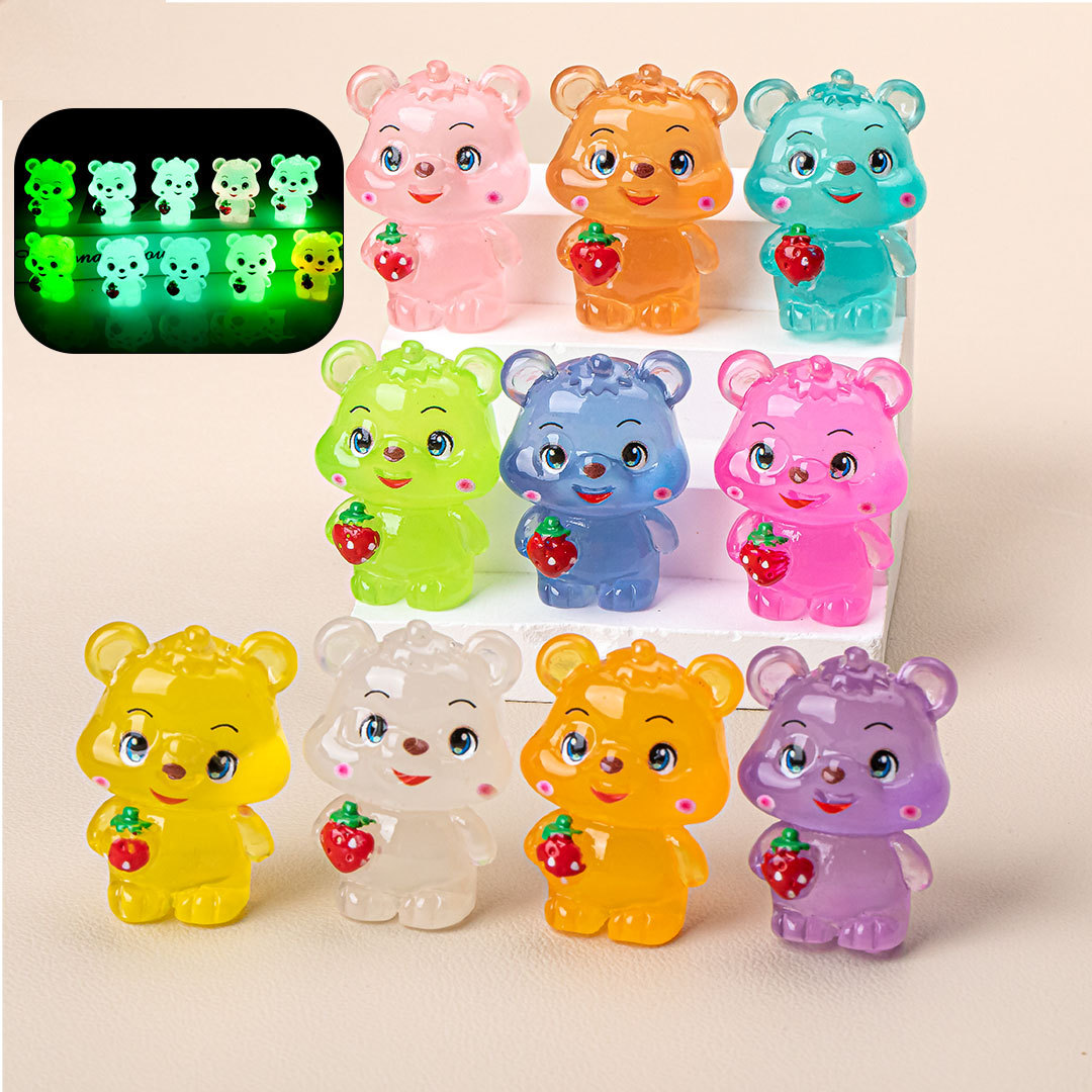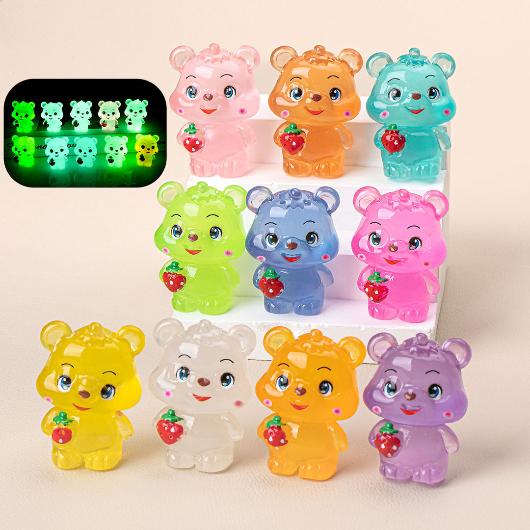 夜光草莓小熊 diy饰品创意萌粒盲袋树脂配饰钥匙扣挂件车载小摆件