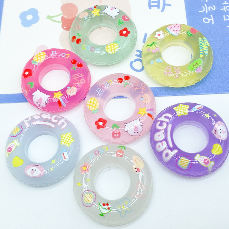 马卡龙色印花夜光泳圈儿 diy饰品奶油胶手机壳发夹创意钥匙扣挂件