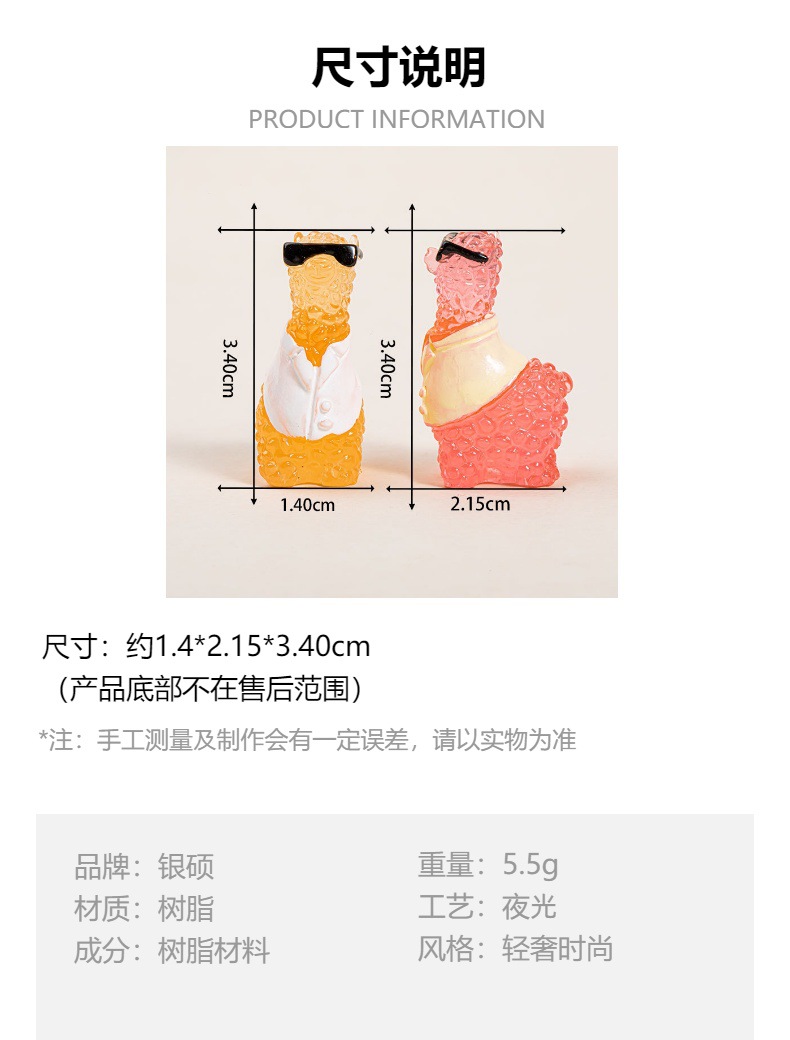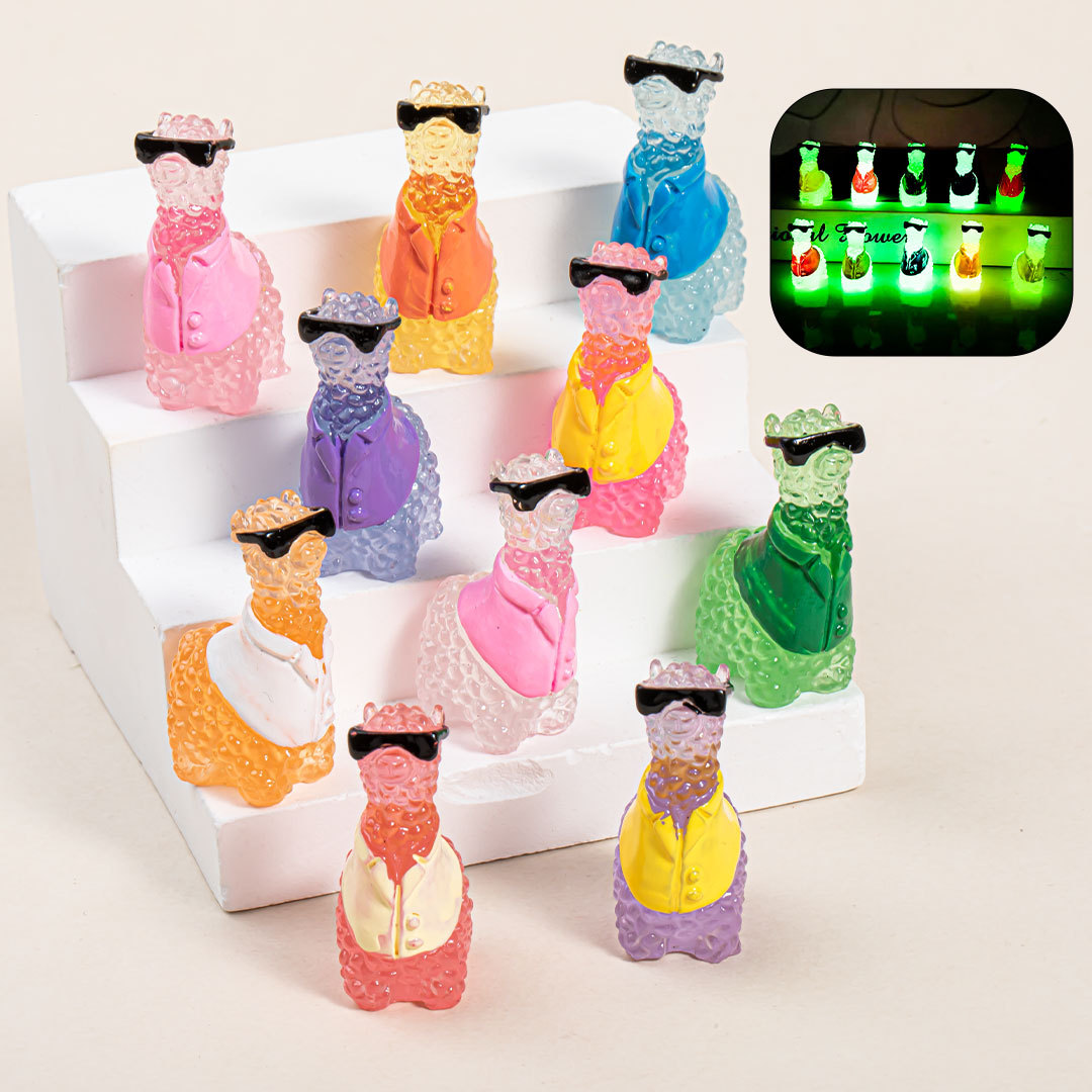 跨境夜光立体墨镜小羊驼 diy饰品奶油胶钥匙扣挂件车载小摆件批发