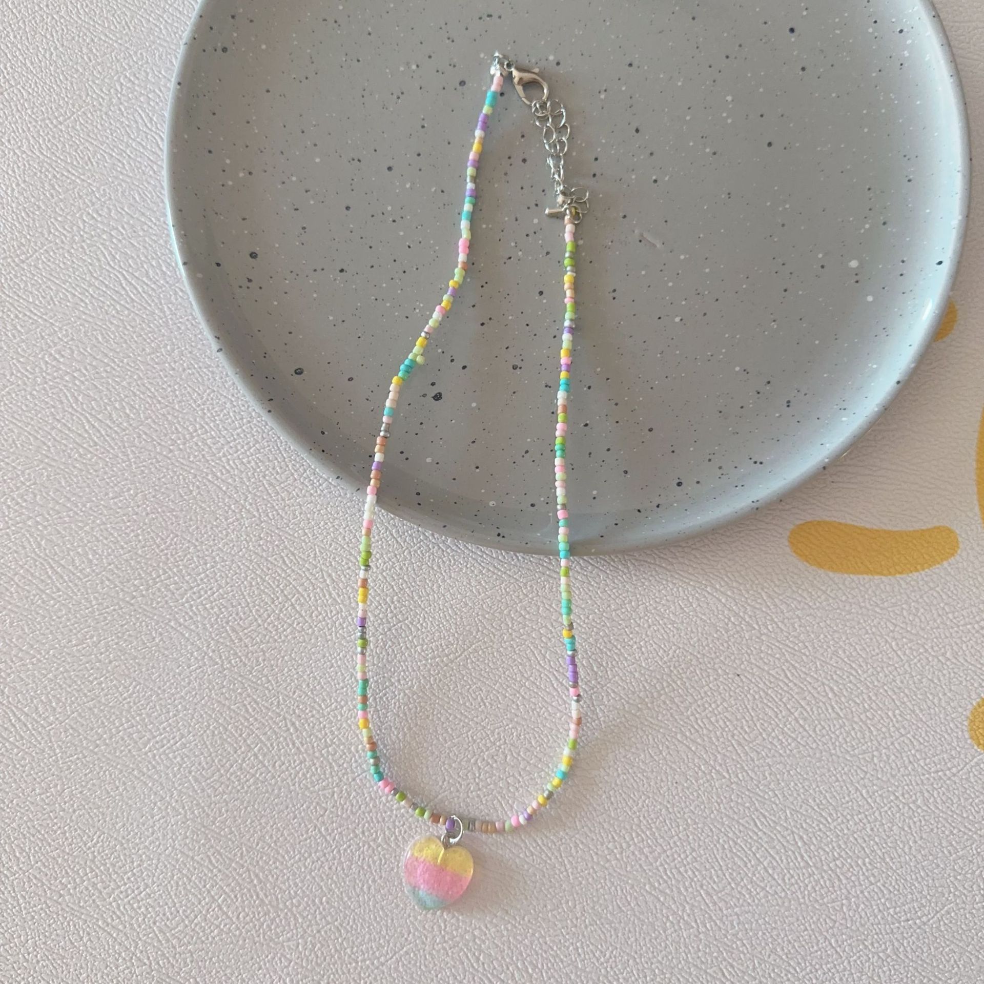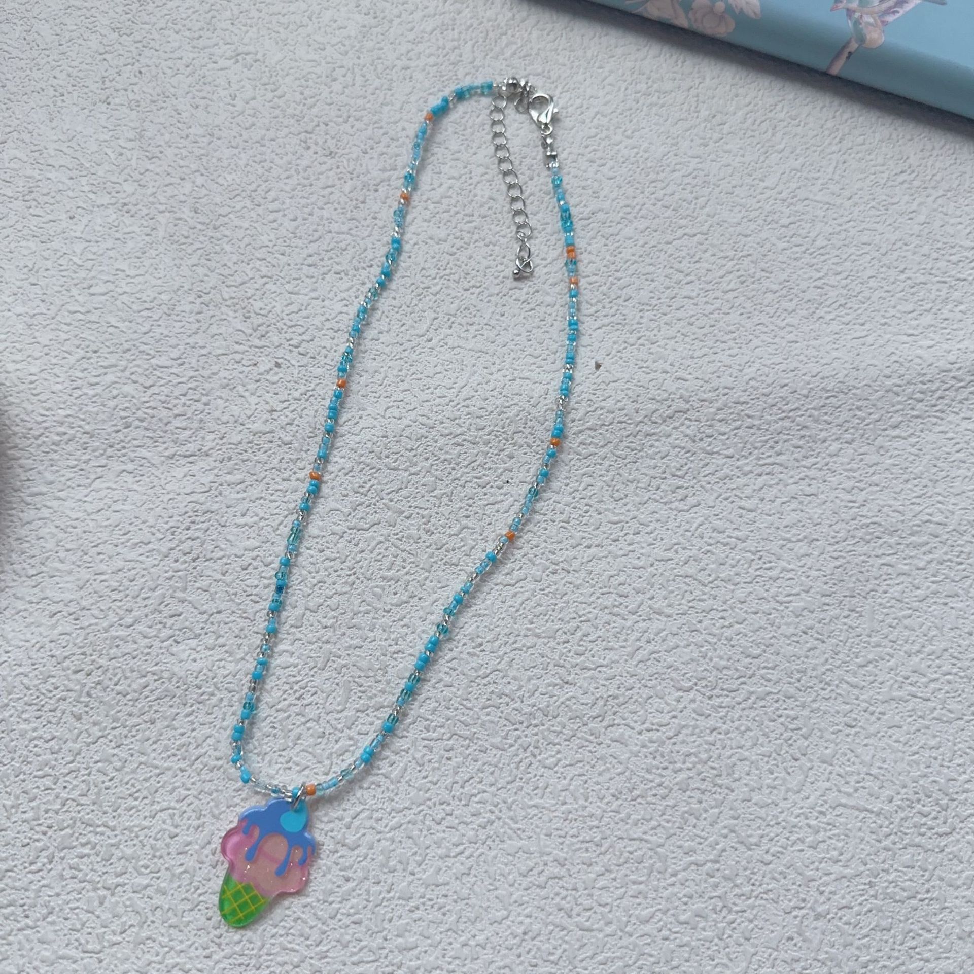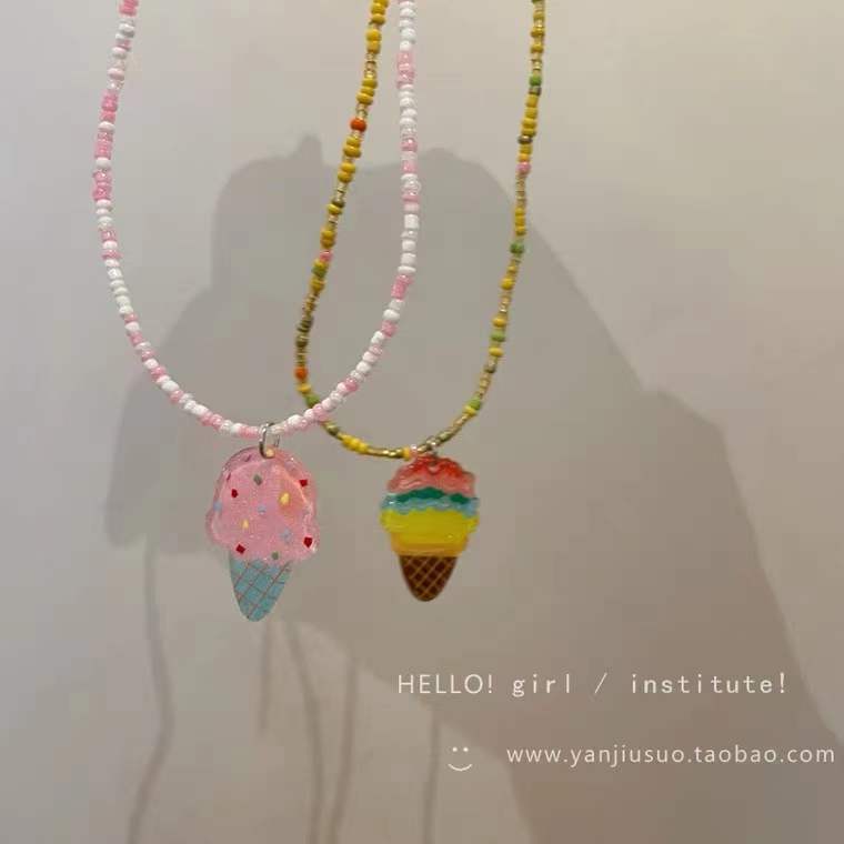 彩色串珠冰淇淋吊坠项链女网红甜美可爱气质百搭不掉色锁骨链配饰