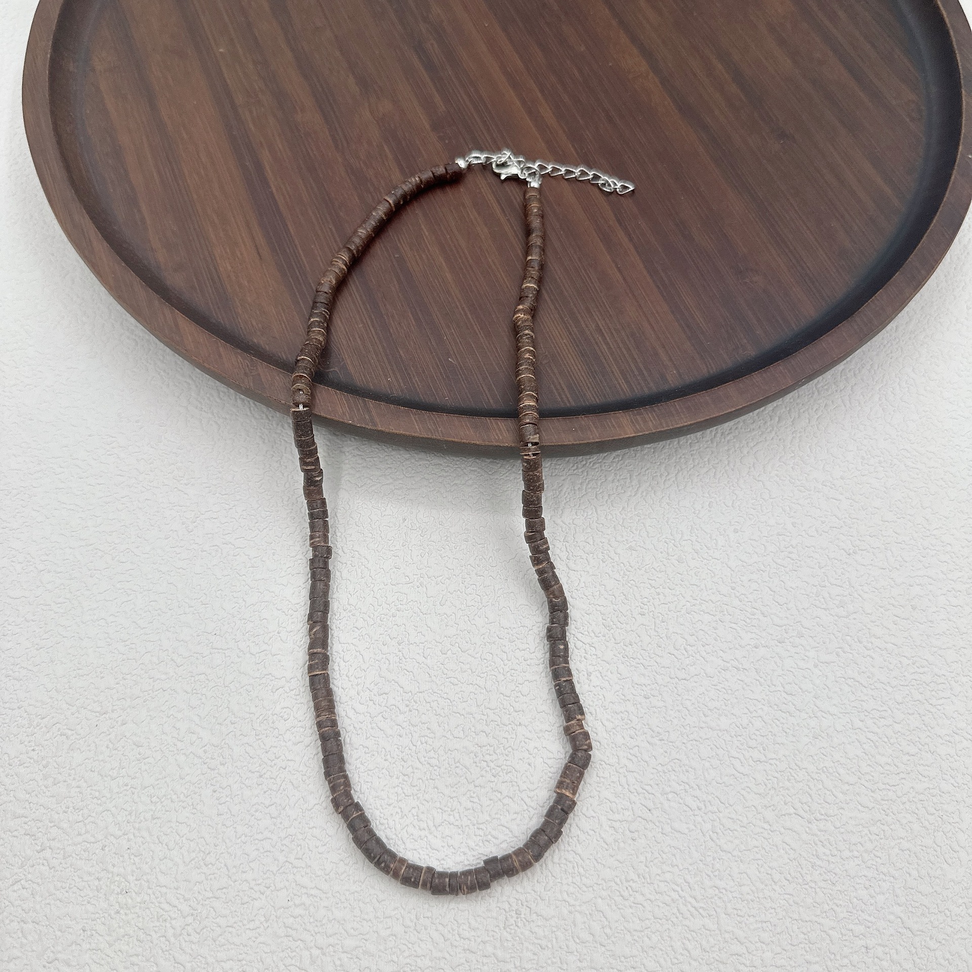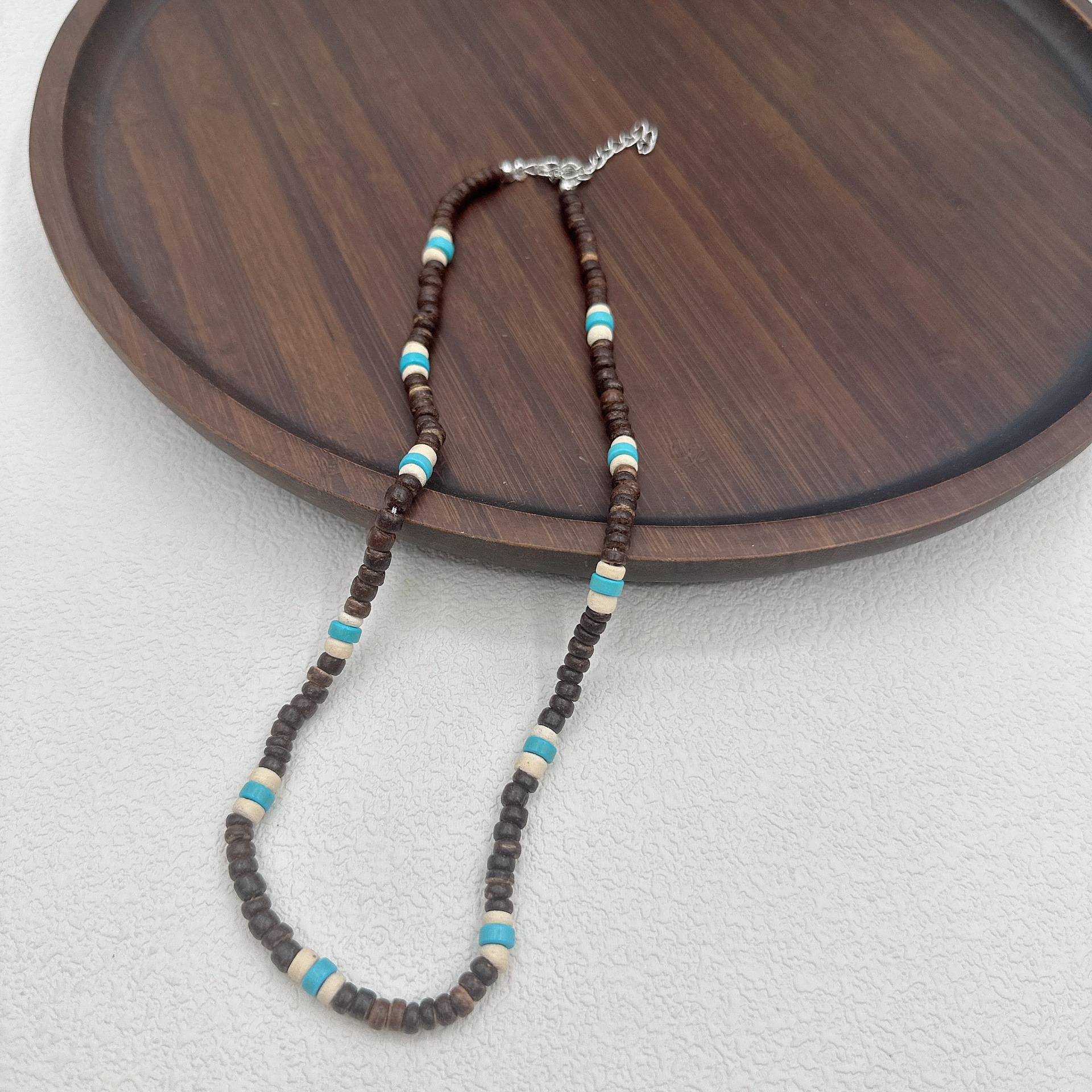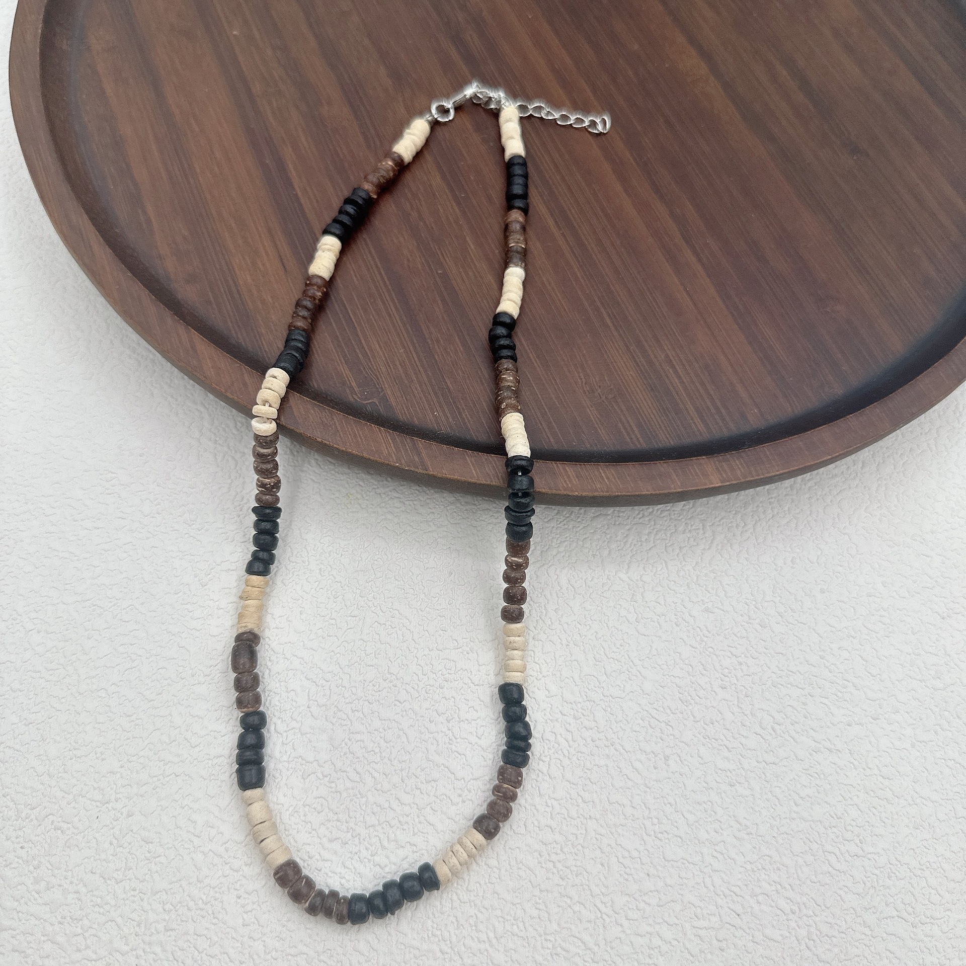 波西米亚风椰壳木珠混色项链男生锁骨链时尚复古设计感男女同款链