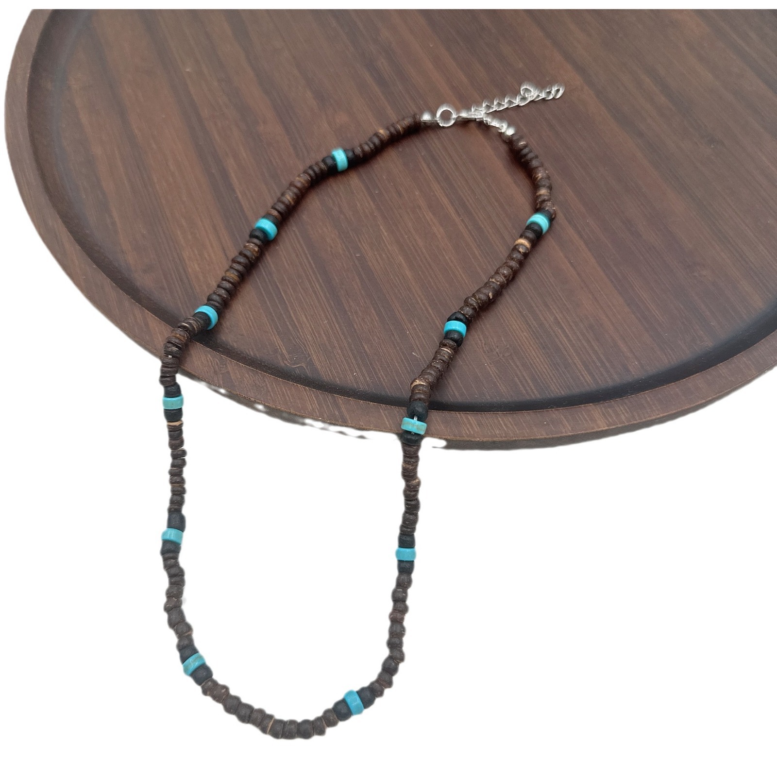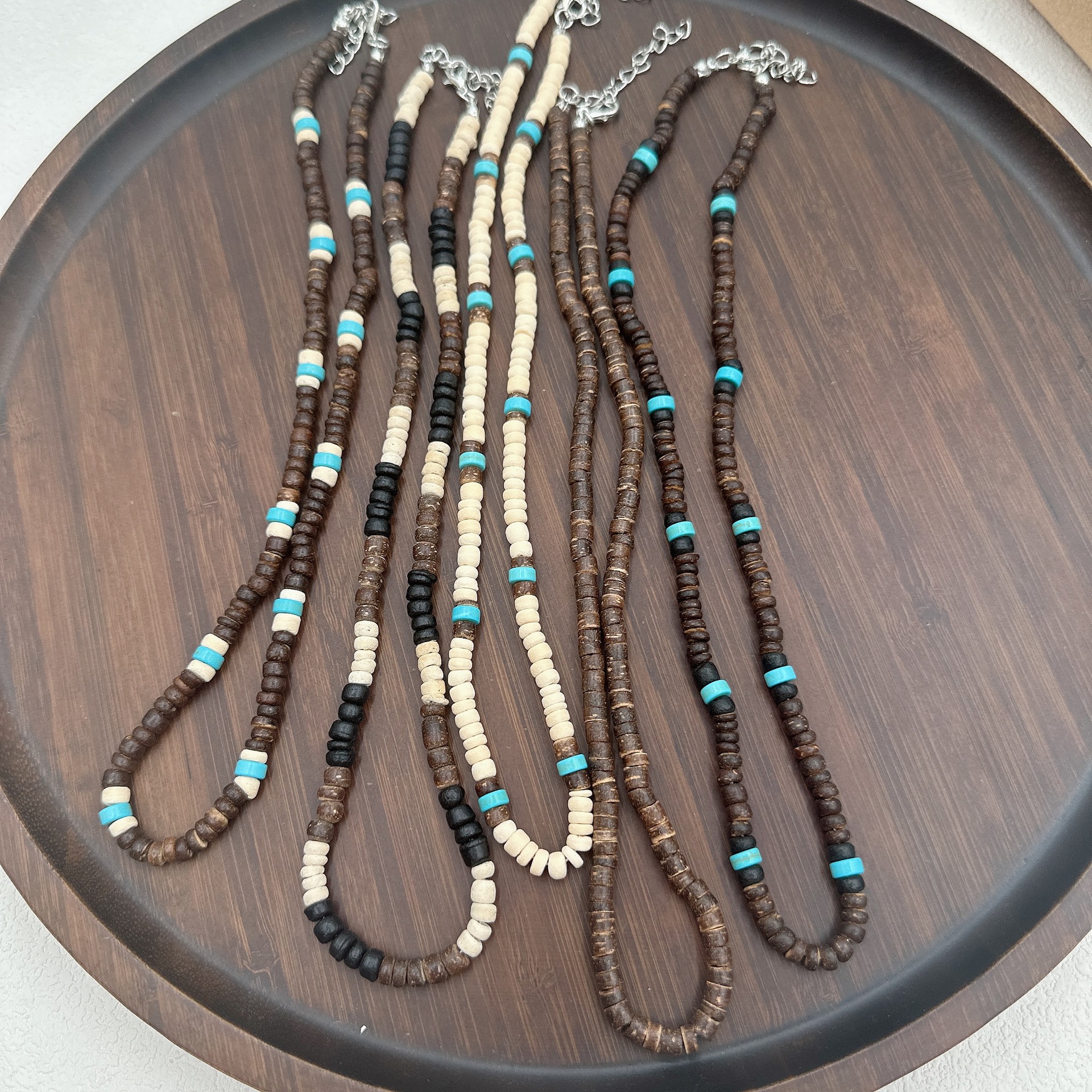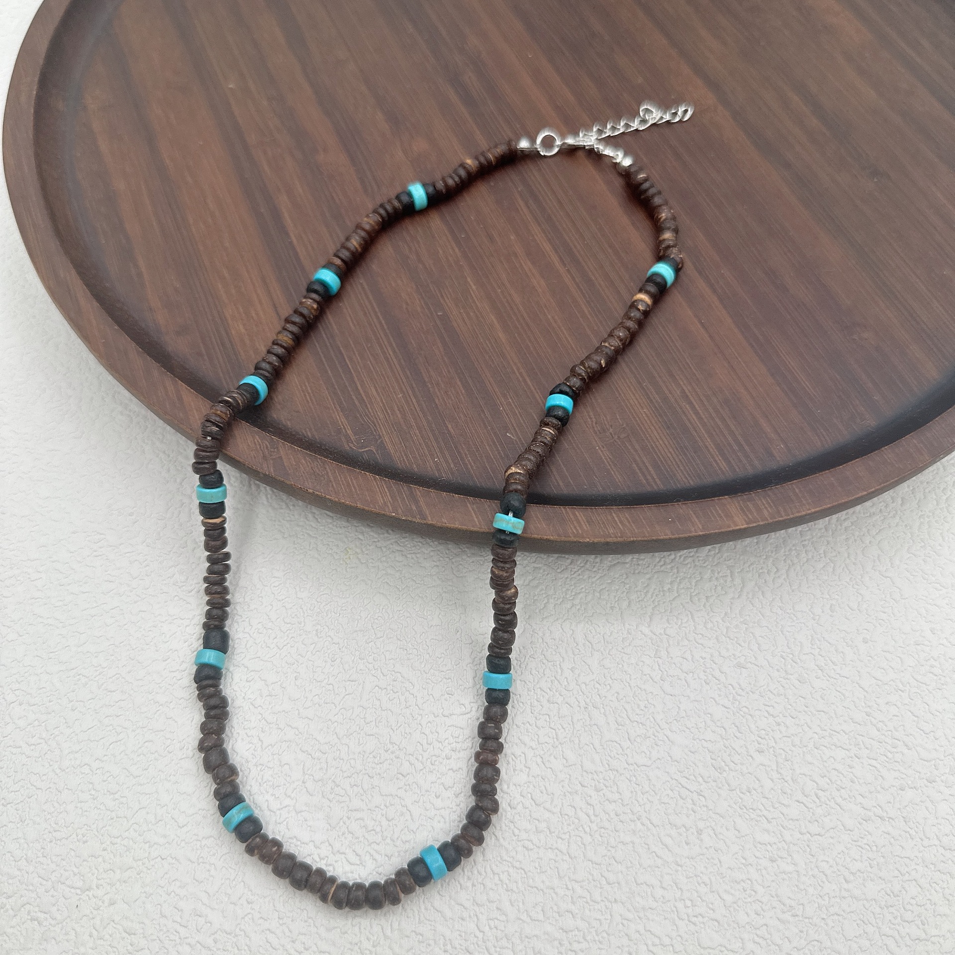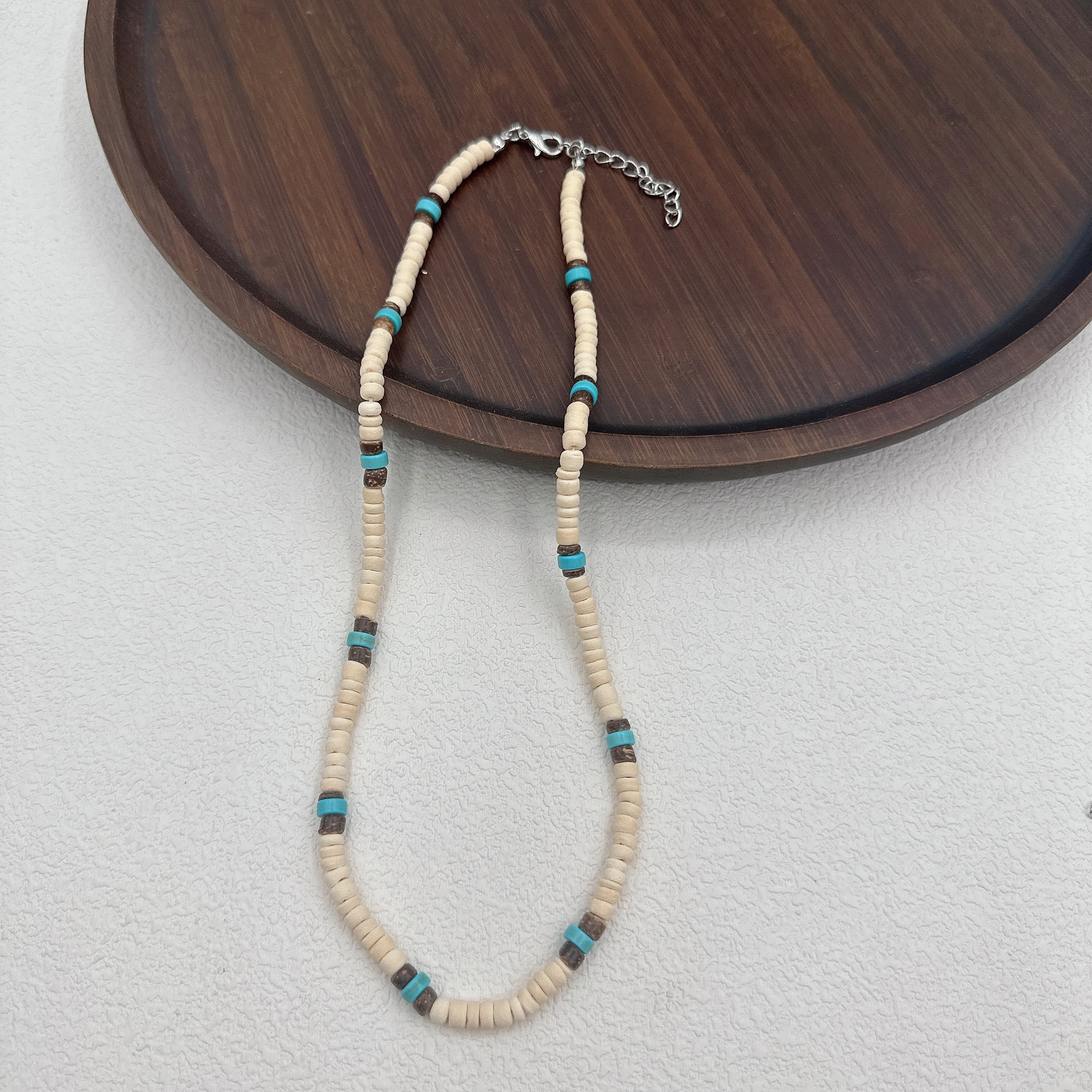波西米亚风椰壳木珠混色项链男生锁骨链时尚复古设计感男女同款链