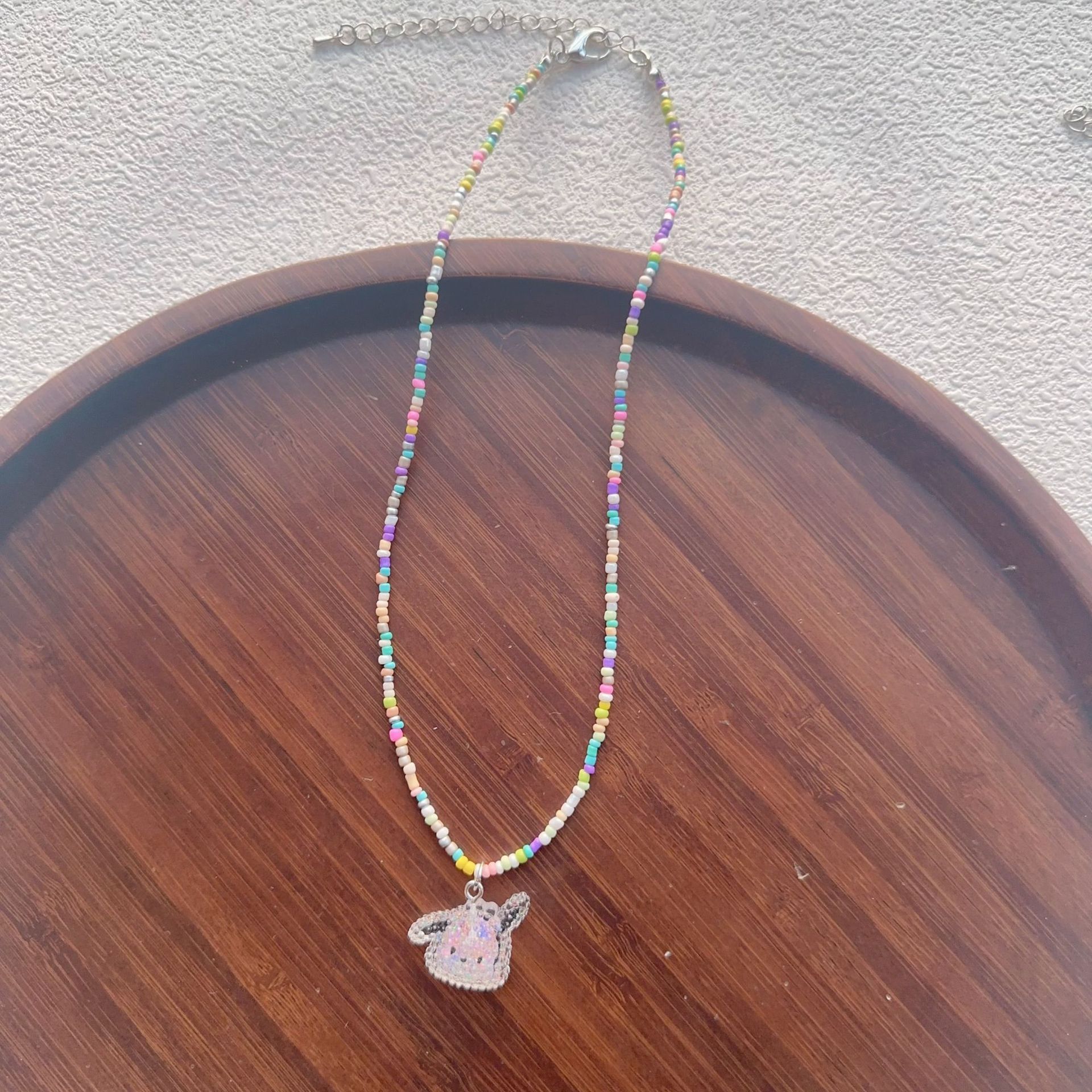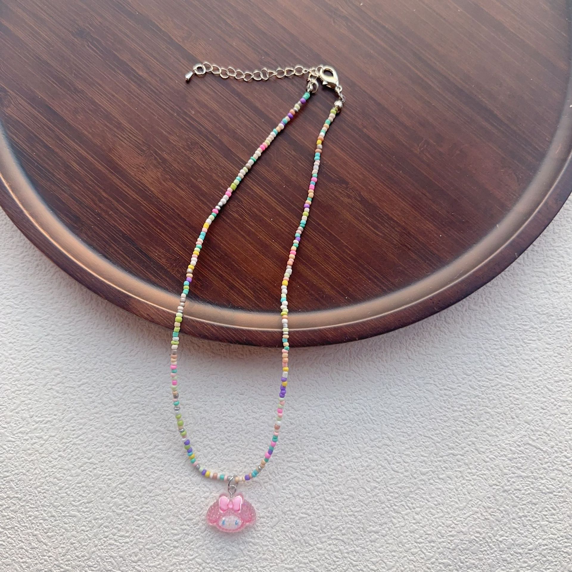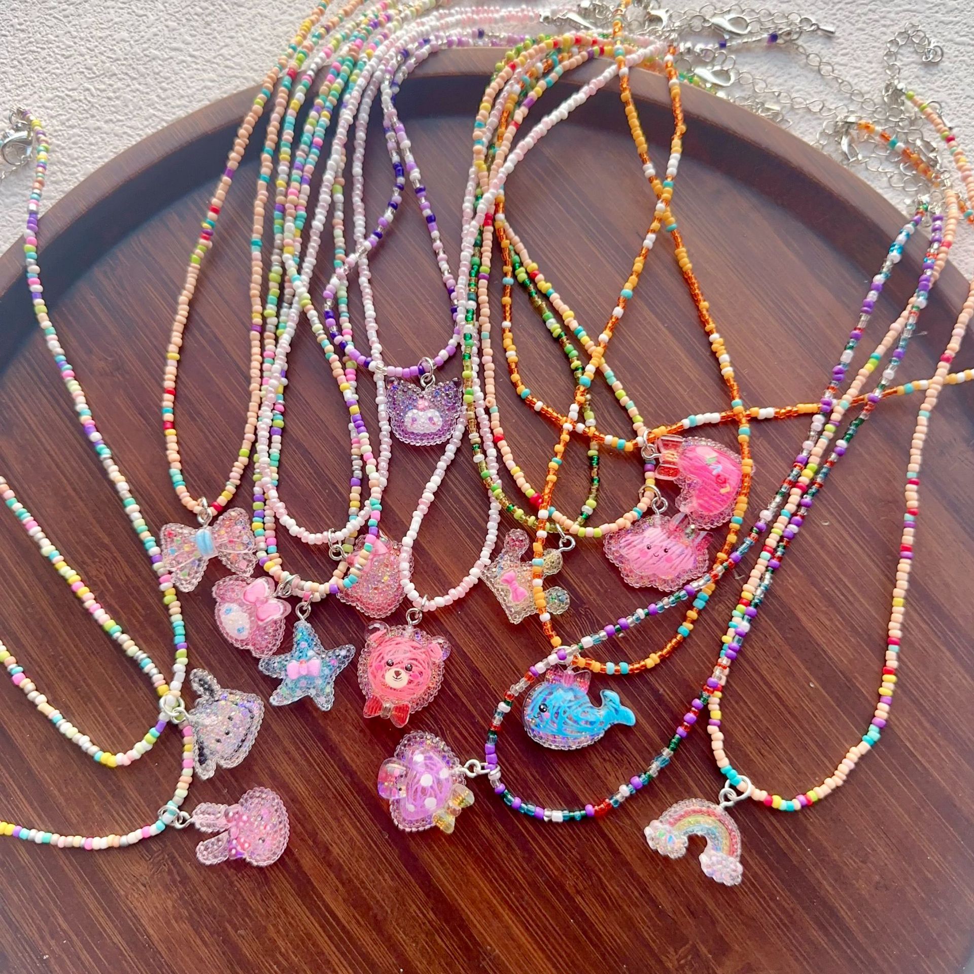 2025彩色串珠项链女生卡通可爱蝴蝶结锁骨链多巴胺少女饰品批发